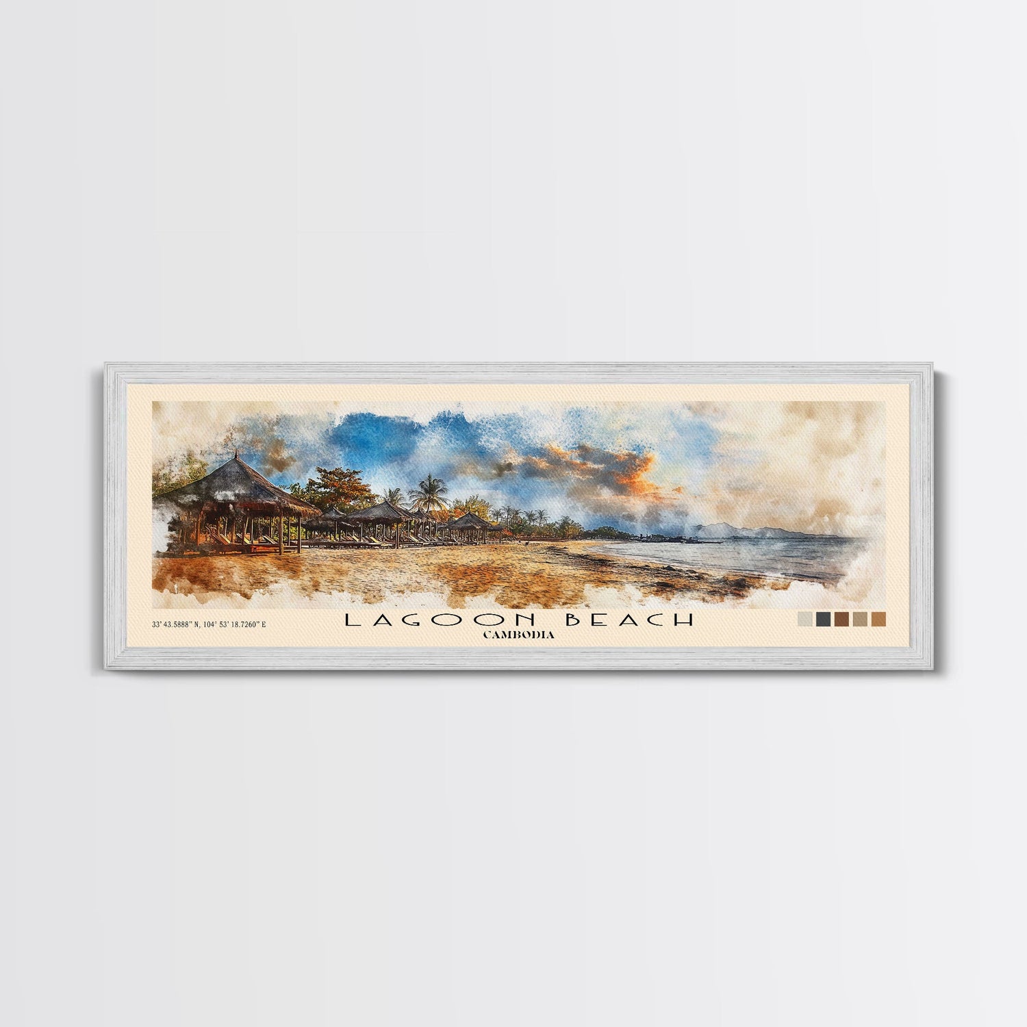 Lagoon Beach, Cambodia Watercolor Print, Vacation Gift, Cambodia Wall Art, Beach Painting, Beach Decor, Large Wall Art, Wood Frame Art - 10x30 Inches / Gallery Wrap Canvas - Ready To Hang is backordered and will ship as soon as it is back in stock.