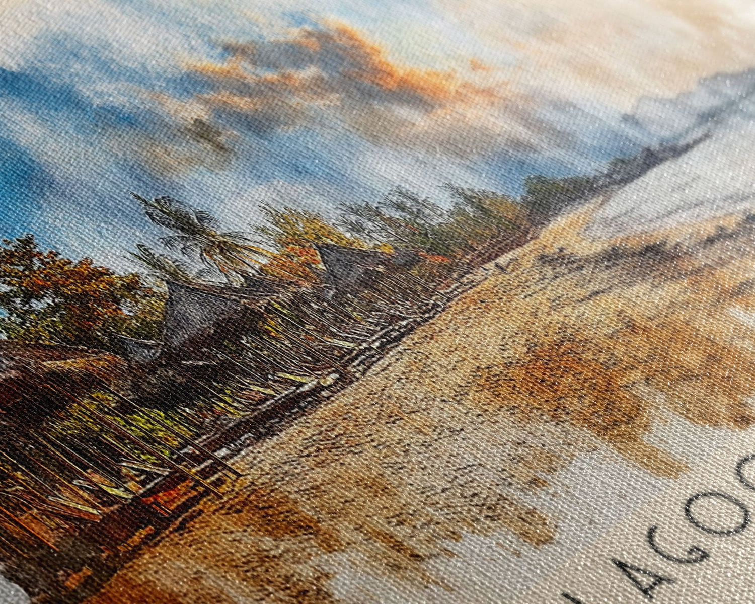 Most of our canvases are made in the USA, with the exception of canvases ordered with the light oak unstained frames, and any large canvases (24x48, 30x60, 16x48 and 20x60) ordered WITH a frame. These are temporarily made in and shipped from Europe, while we try to find a more consistent supplier in the USA.