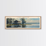 Lake Griffin Florida Framed Canvas Print, Lake House Decor, Panoramic Wall Art, Travel Poster, Beautiful Lake Painting, Nature Art