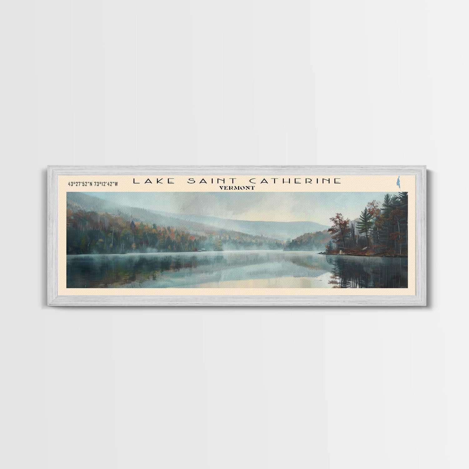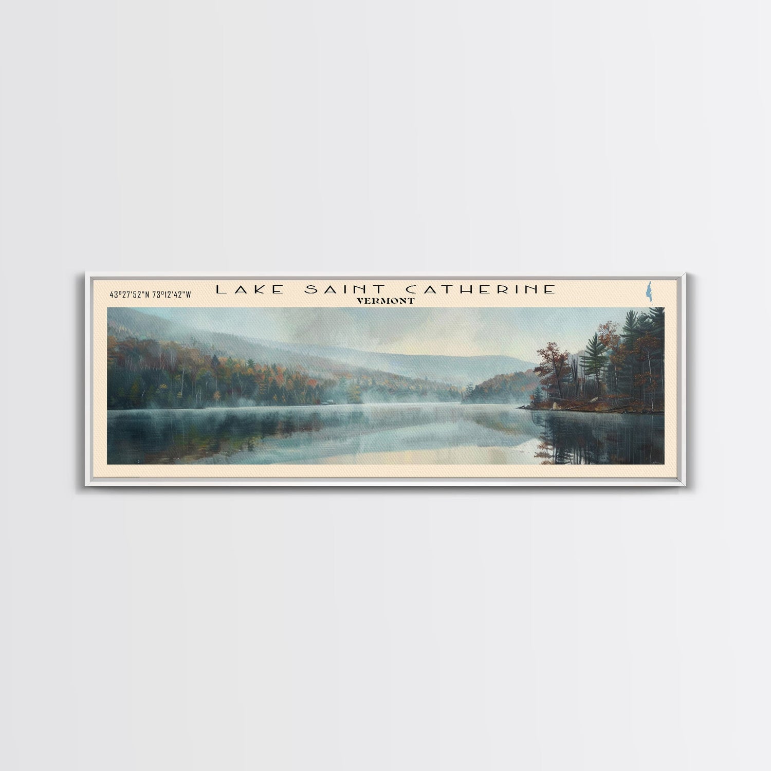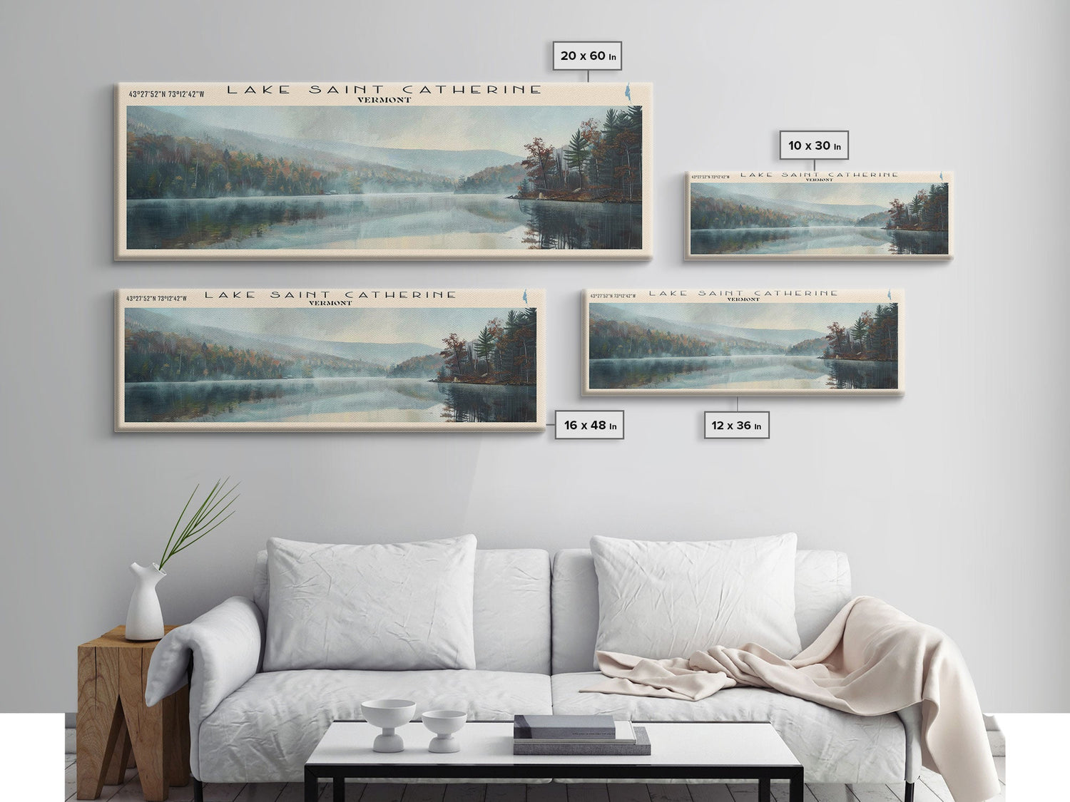 Lake Saint Catherine, Boho Art, Scenic Landscape, Travel Poster Art, Wall Art, Home Decor, Nature Scene, Lake Painting, Minimalist Art, Living Room Decor, Travel Print, Framed Canvas Print, Lake House Decor, Panoramic Print