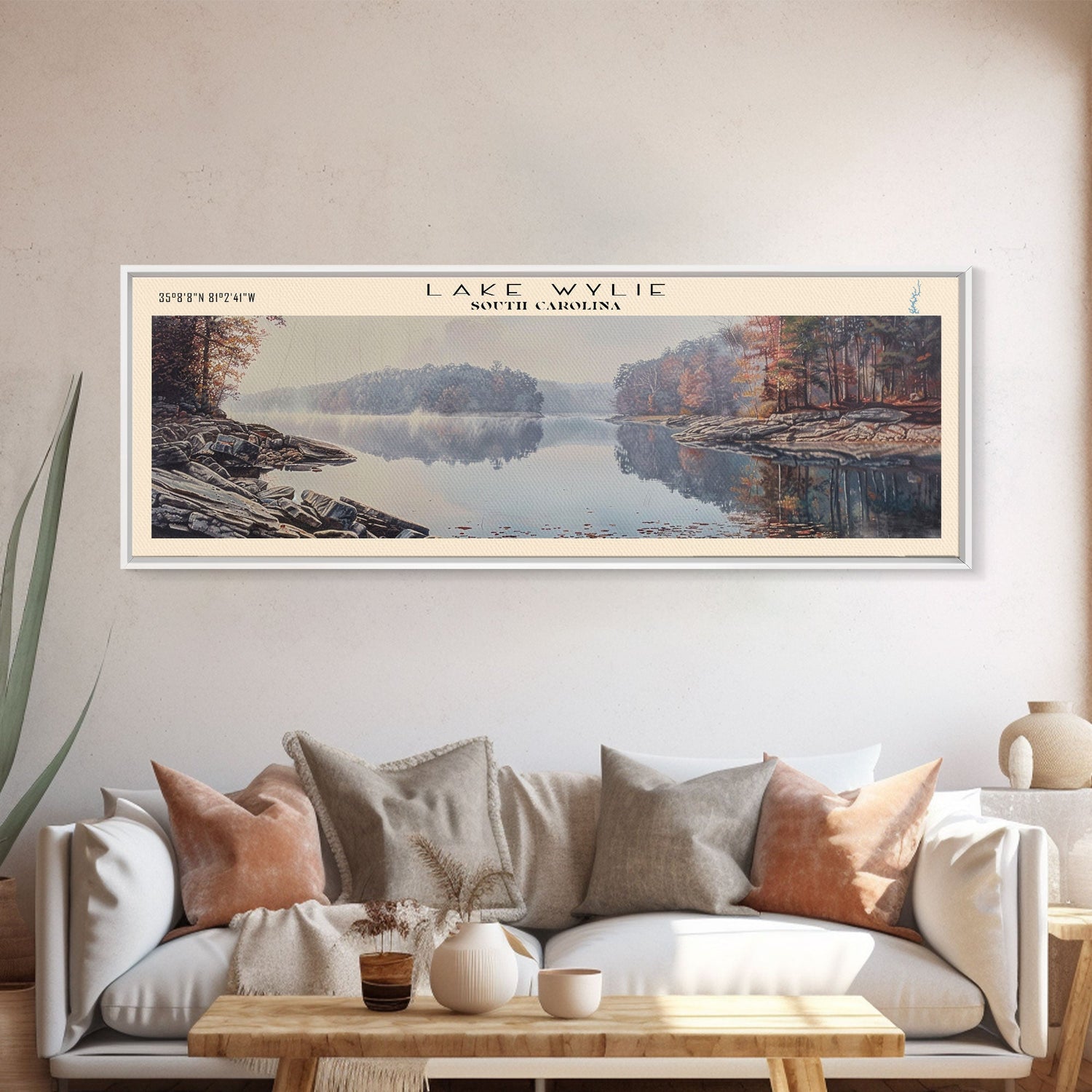 Lake Wylie South Carolina Framed Canvas Print, Lake House Decor, Panoramic Wall Art, Travel Poster, Beautiful Landscape Painting, Rustic Art