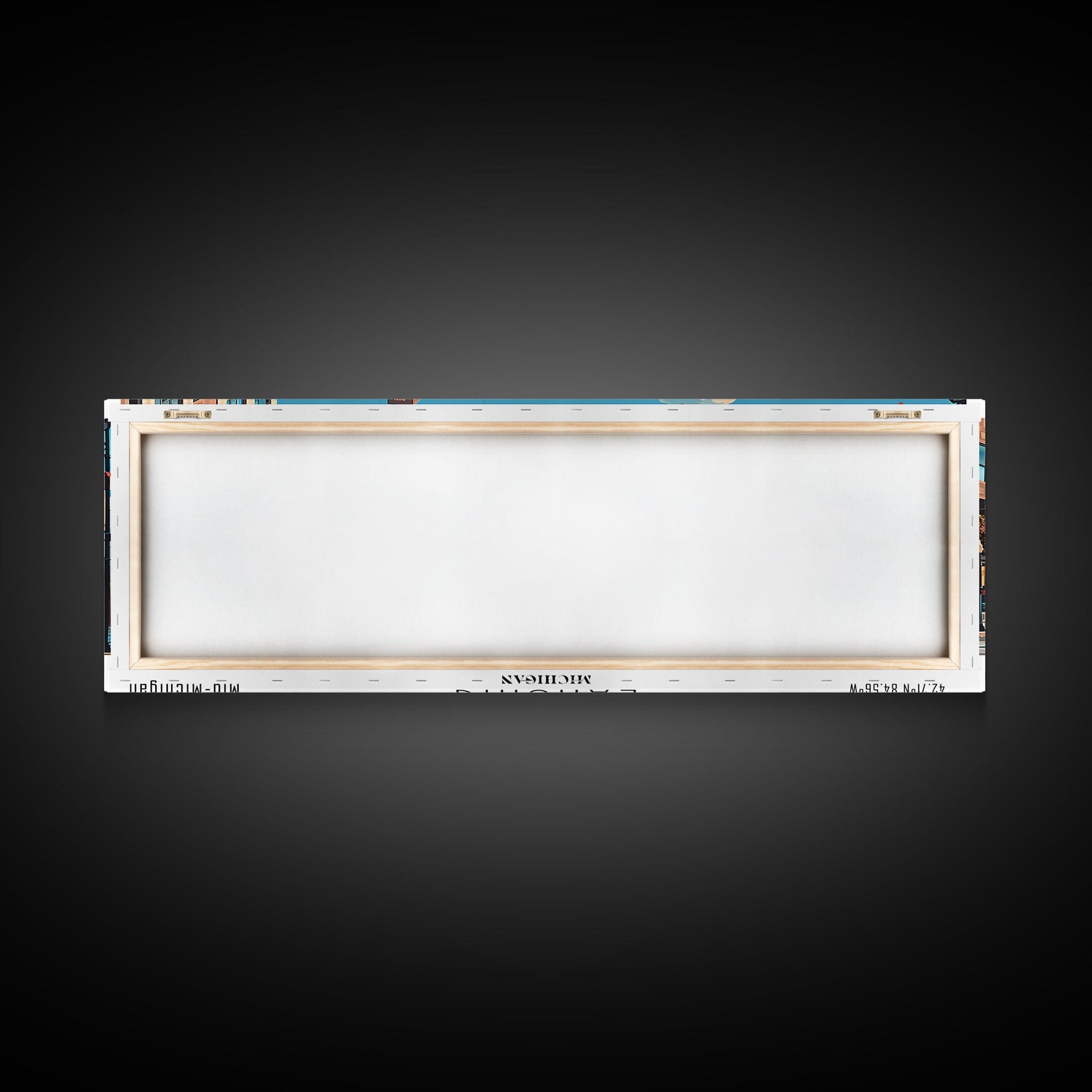 Lansing Michigan Panoramic Wall Art, Mid Century Modern Framed Canvas Print, Retro Pop Art Travel Poster, Living Room Decor - 10x30 Inches / No Frame - Stretched Canvas Only is backordered and will ship as soon as it is back in stock.