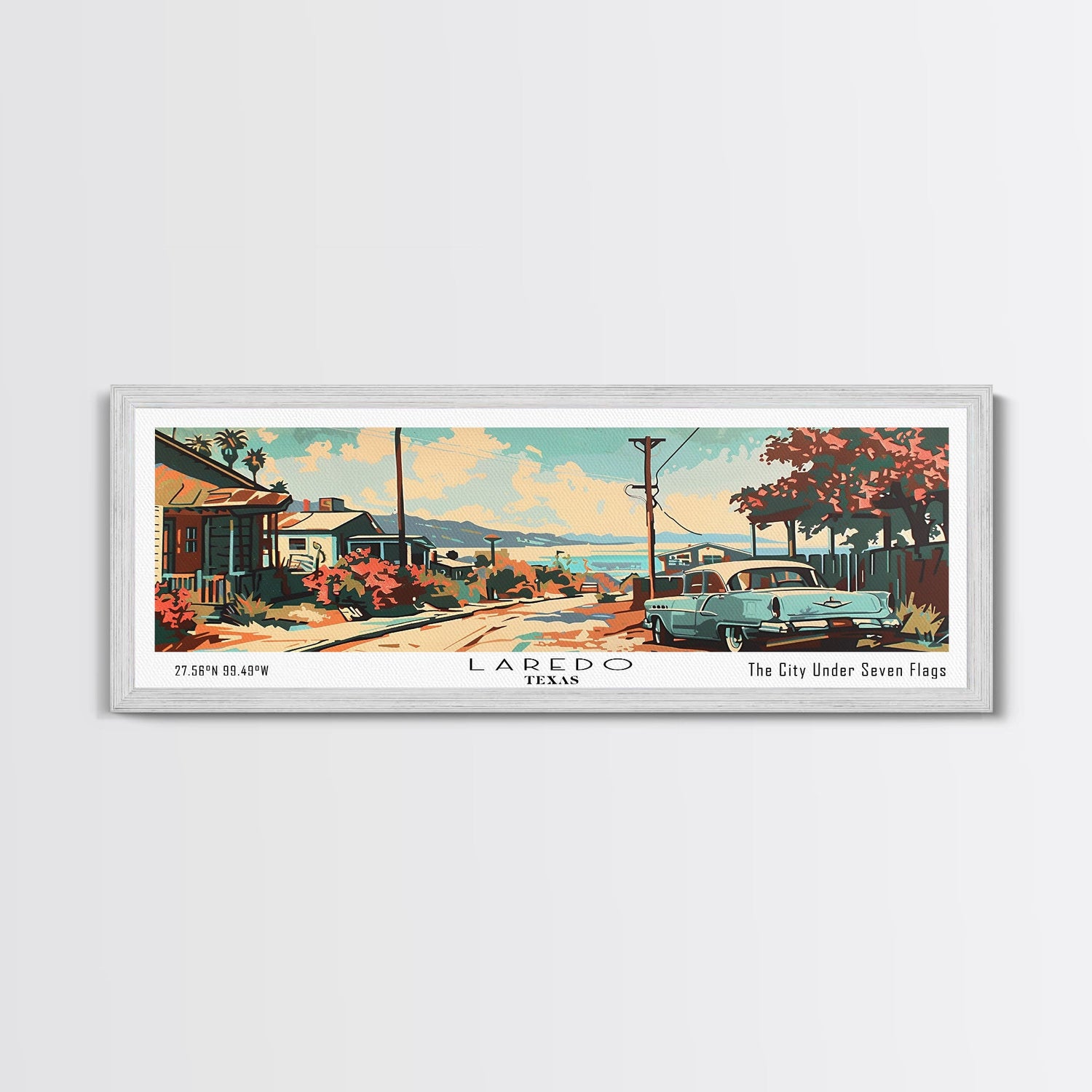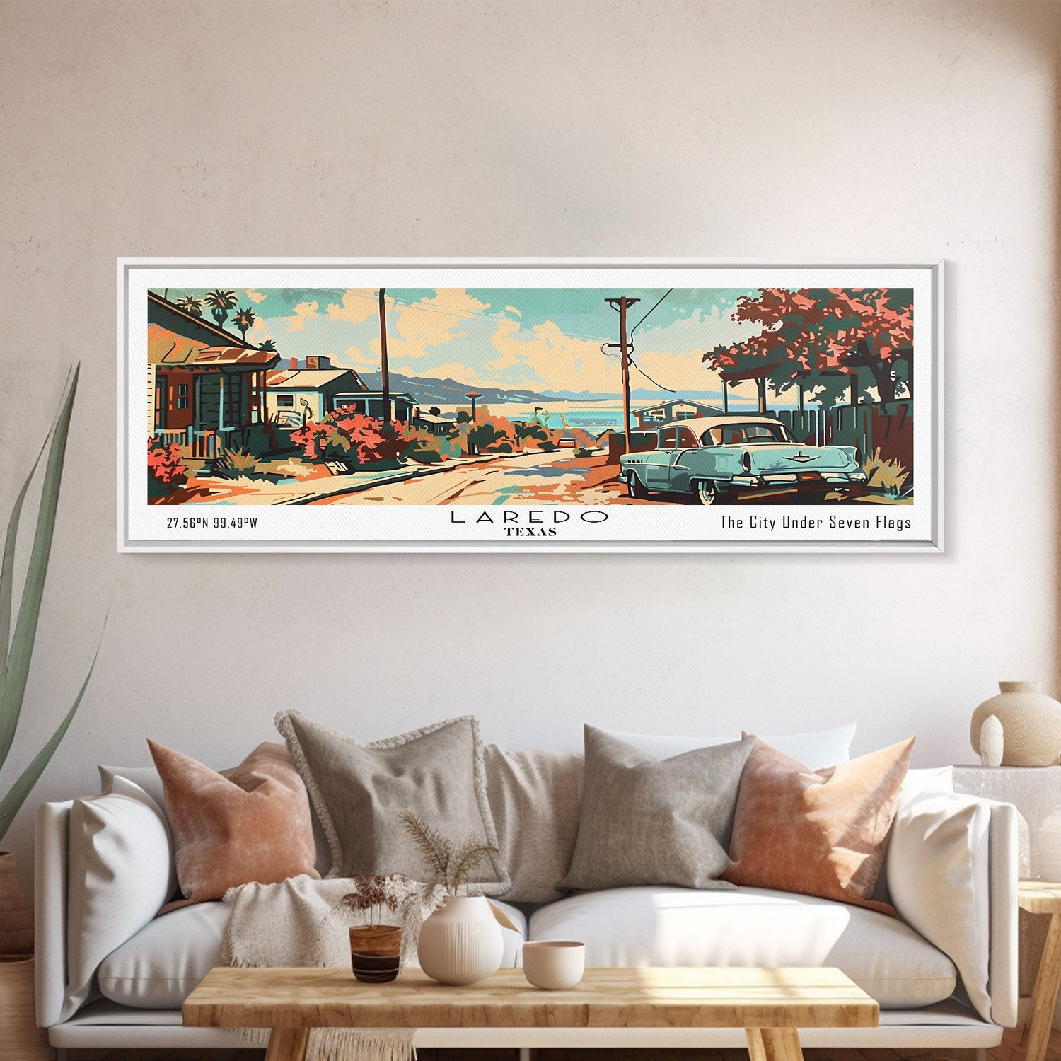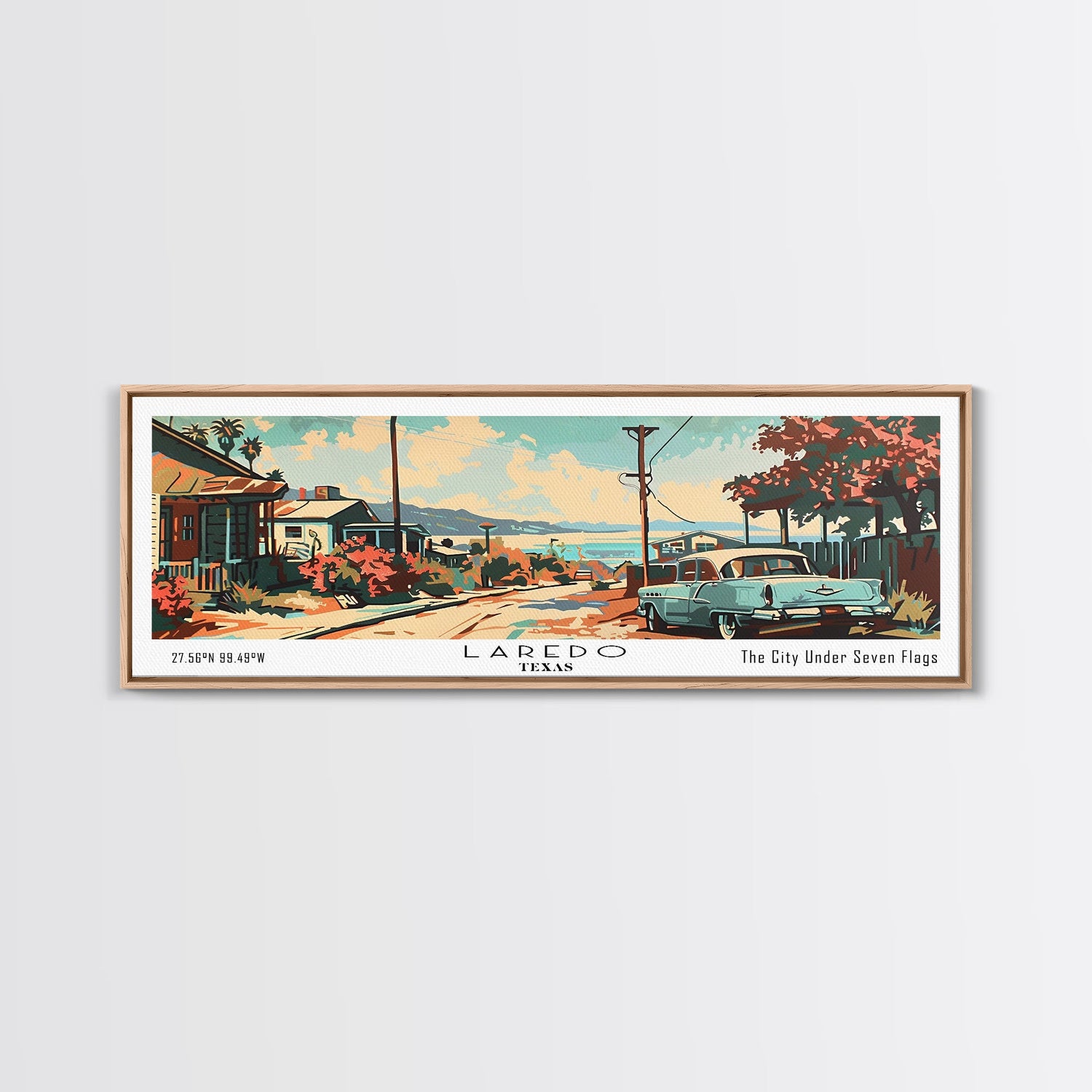 Laredo Texas Panoramic Painting, Mid Century Modern Framed Canvas Print, Retro Pop Art Travel Poster, Wall Art, Living Room Decor, Office Wall Art, Home Decor