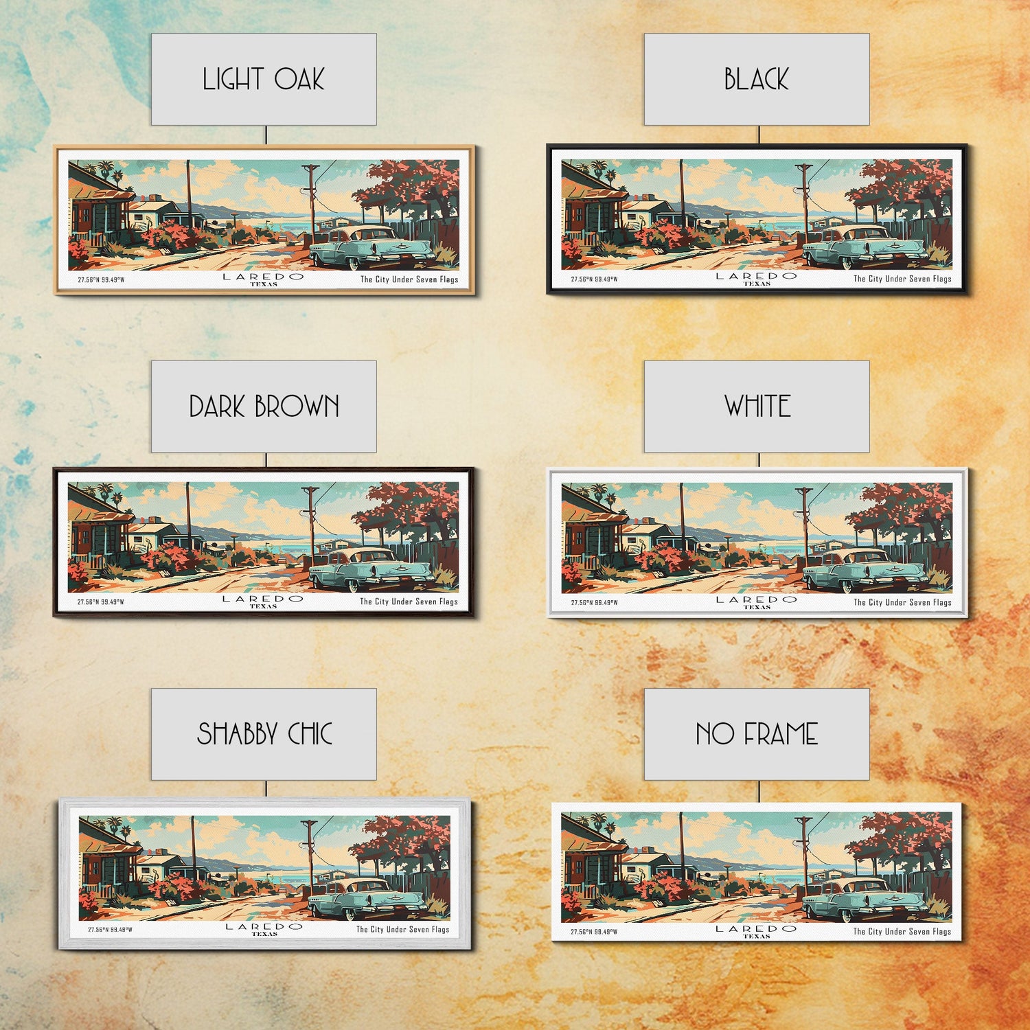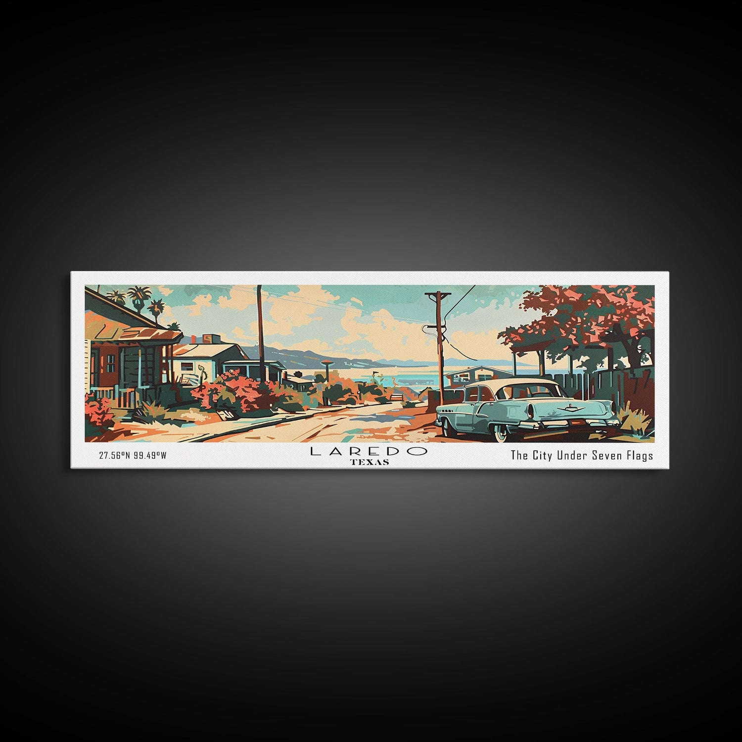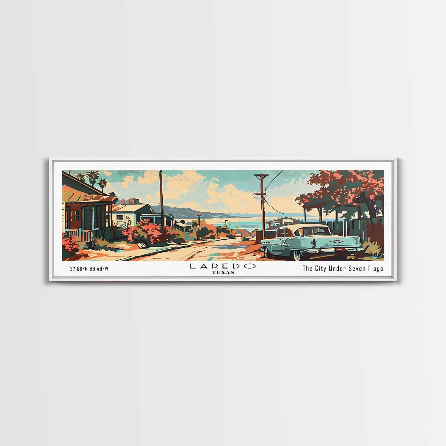 Laredo Texas Panoramic Painting, Mid Century Modern Framed Canvas Print, Retro Pop Art Travel Poster, Wall Art, Living Room Decor, Office Wall Art, Home Decor