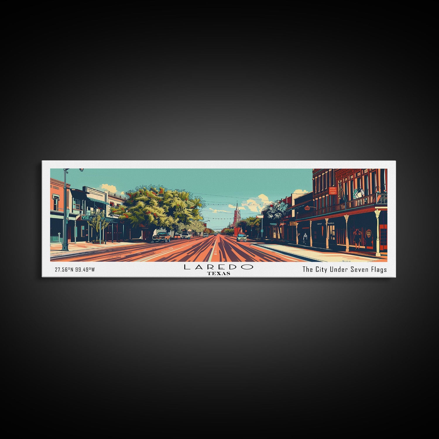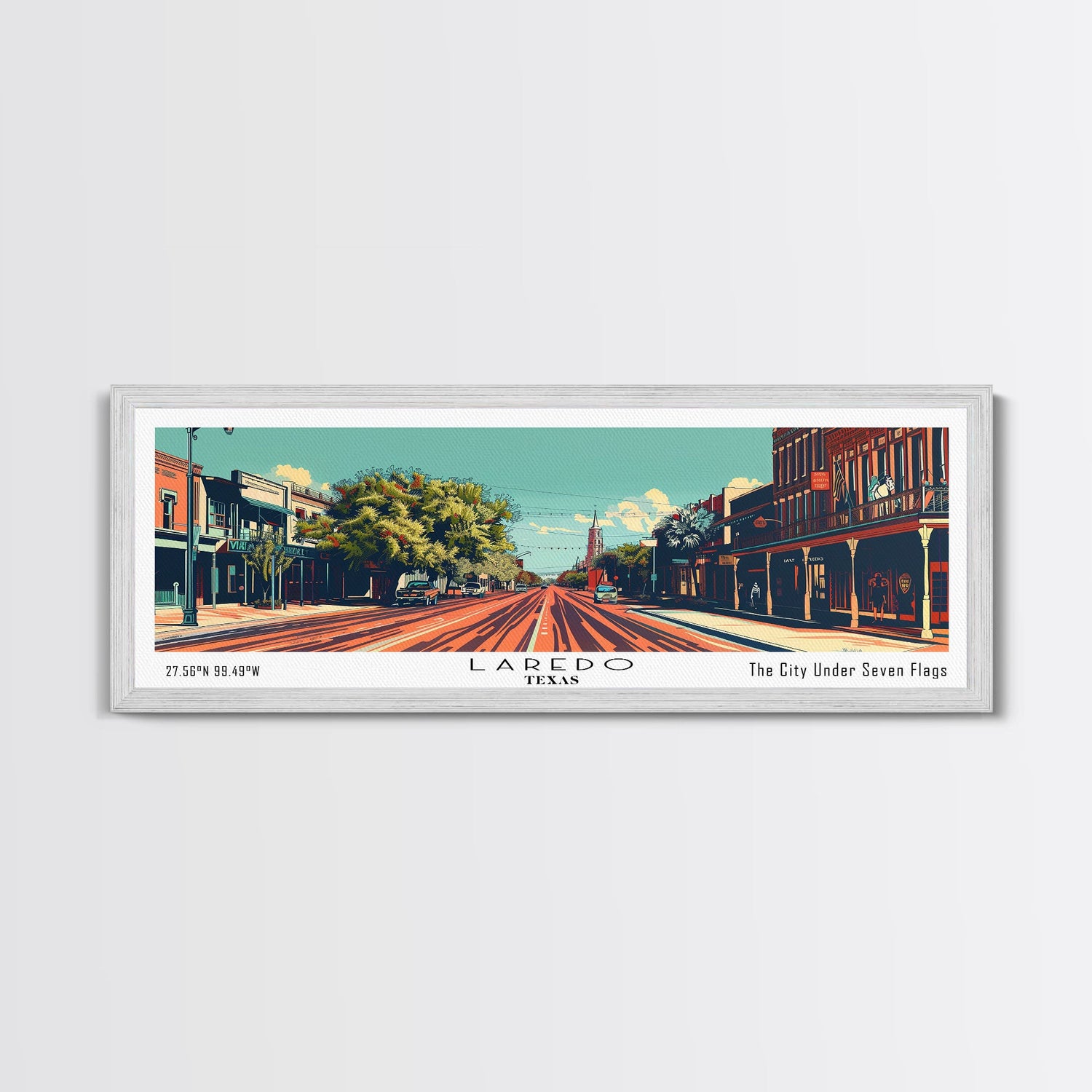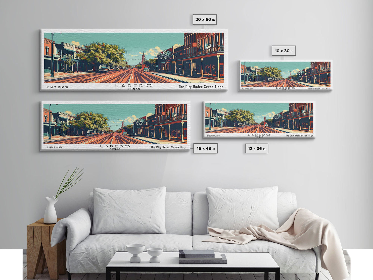 Laredo Texas Panoramic Wall Art, Mid Century Modern Framed Canvas Print, Retro Pop Art Travel Poster, Living Room Decor, Cityscape Art, Home Office Decor