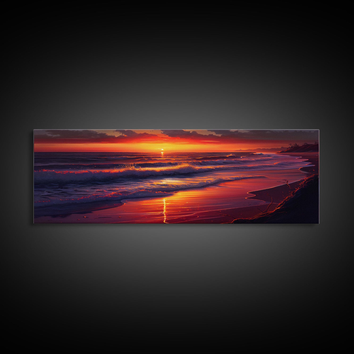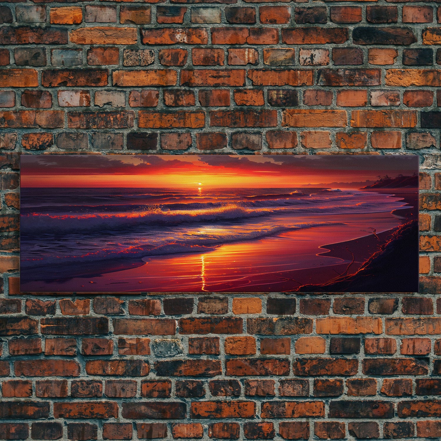 Large Art Sunset, Beach landscape, Coastal Art Print, Beach House, Coastal Decor, Beach Painting, Sunset Art, Framed/Unframed Canvas/Print - 10x30 Inches / No Frame - Stretched Canvas Only is backordered and will ship as soon as it is back in stock.