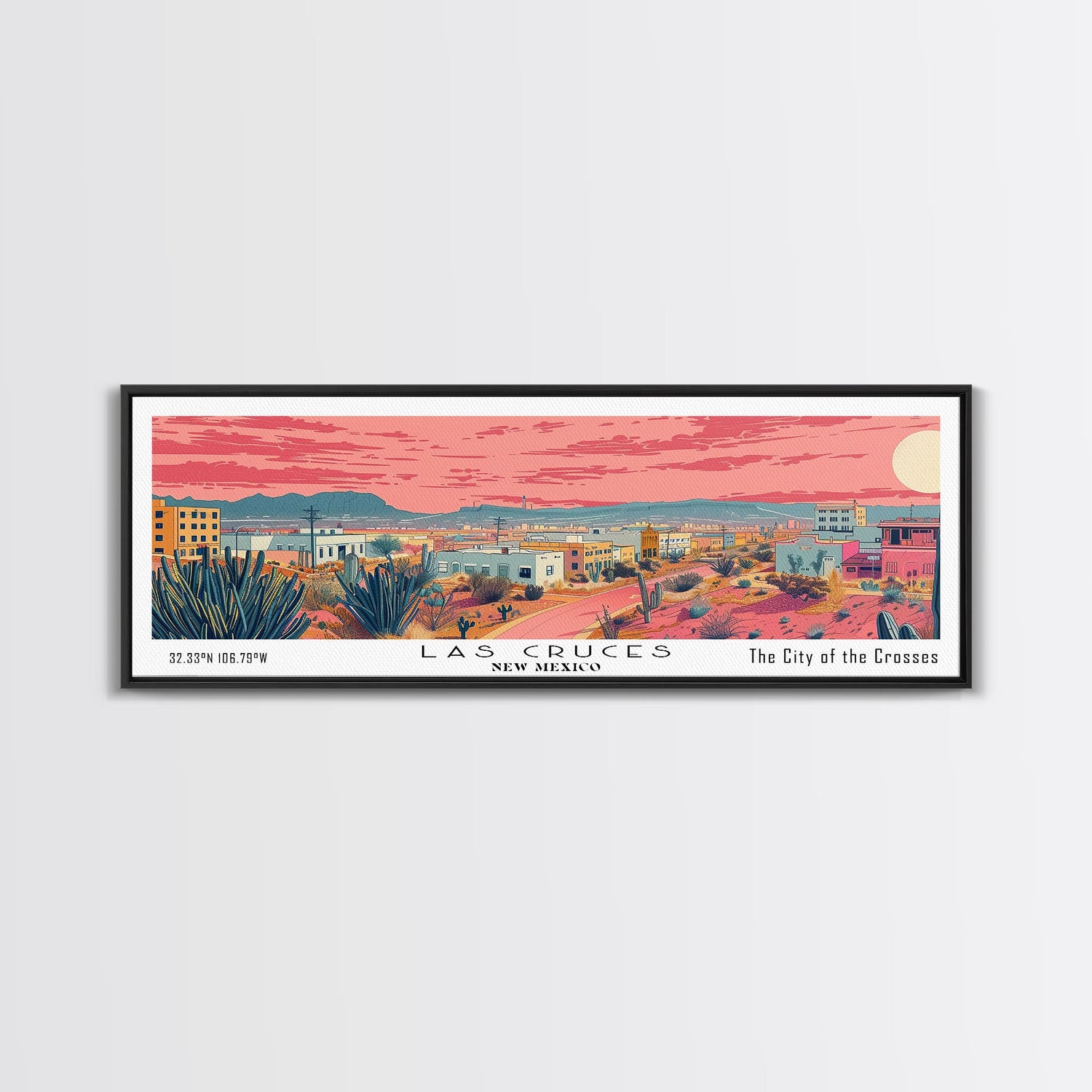 Las Cruces New Mexico Panoramic Wall Art, Mid Century Modern Framed Canvas Print, Retro Pop Art Travel Poster, Home Wall Art