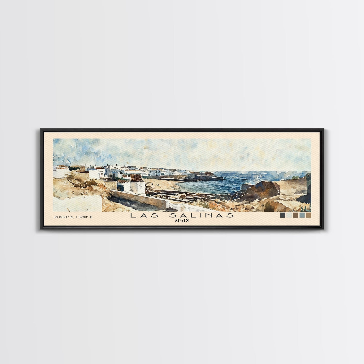 Las Salinas, Spain Watercolor Print, Vacation Gift, Spain Wall Art, Beach Painting, Beach Decor, Large Wall Art, Wood Frame Art - 10x30 Inches / No Frame - Stretched Canvas Only is backordered and will ship as soon as it is back in stock.
