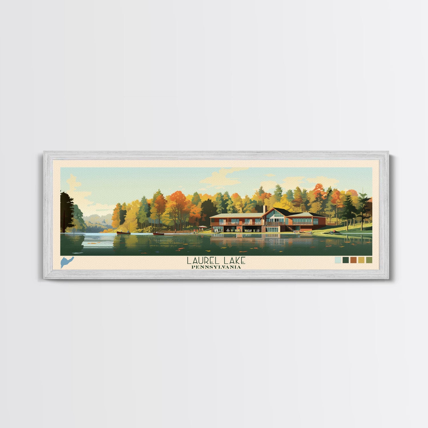 Laurel Lake, Pennsylvania Panoramic Wall Art Framed Canvas Print, Midcentury Modern, Pop Art, Home Decor, Travel Poster, Bedroom Art