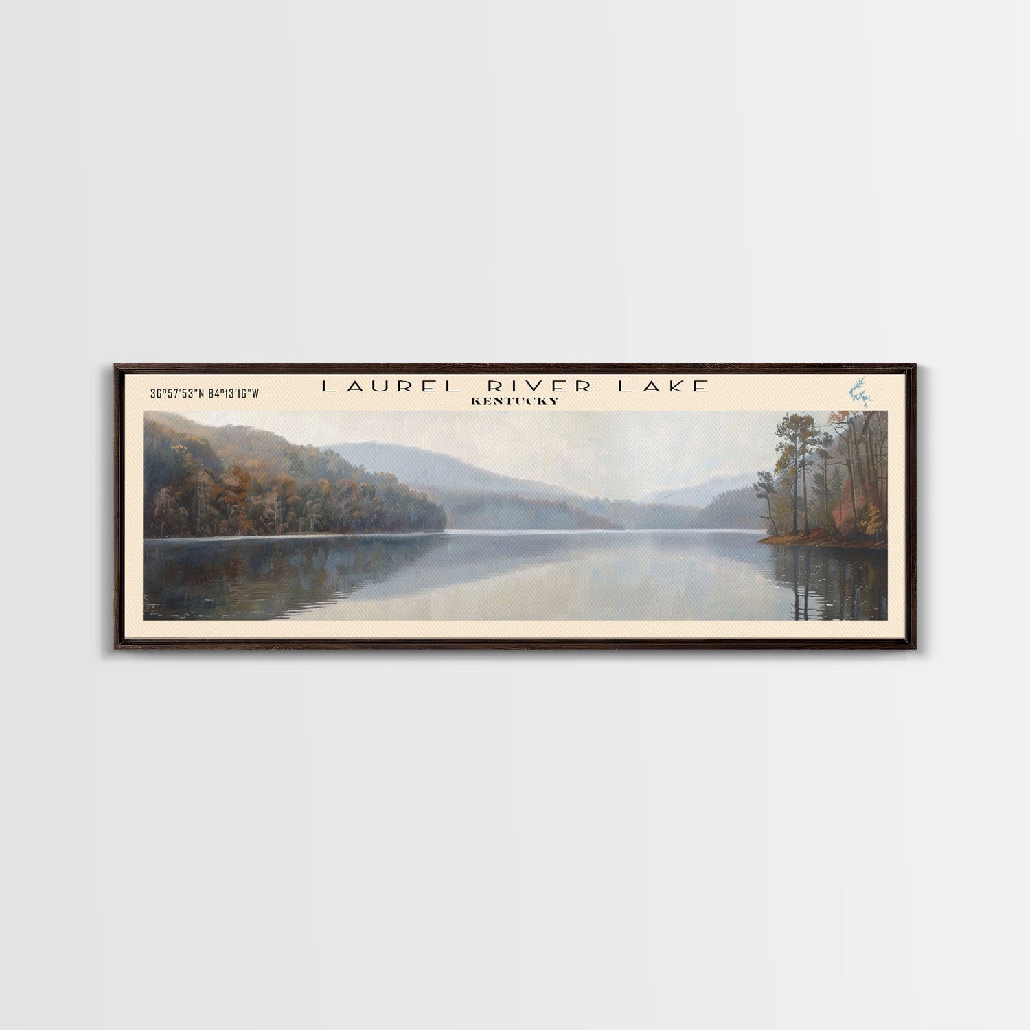 Laurel River Lake Kentucky Framed Canvas Print, Lake House Decor, Panoramic Wall Art, Travel Poster, Scenic Landscape Painting, Living Room Decor