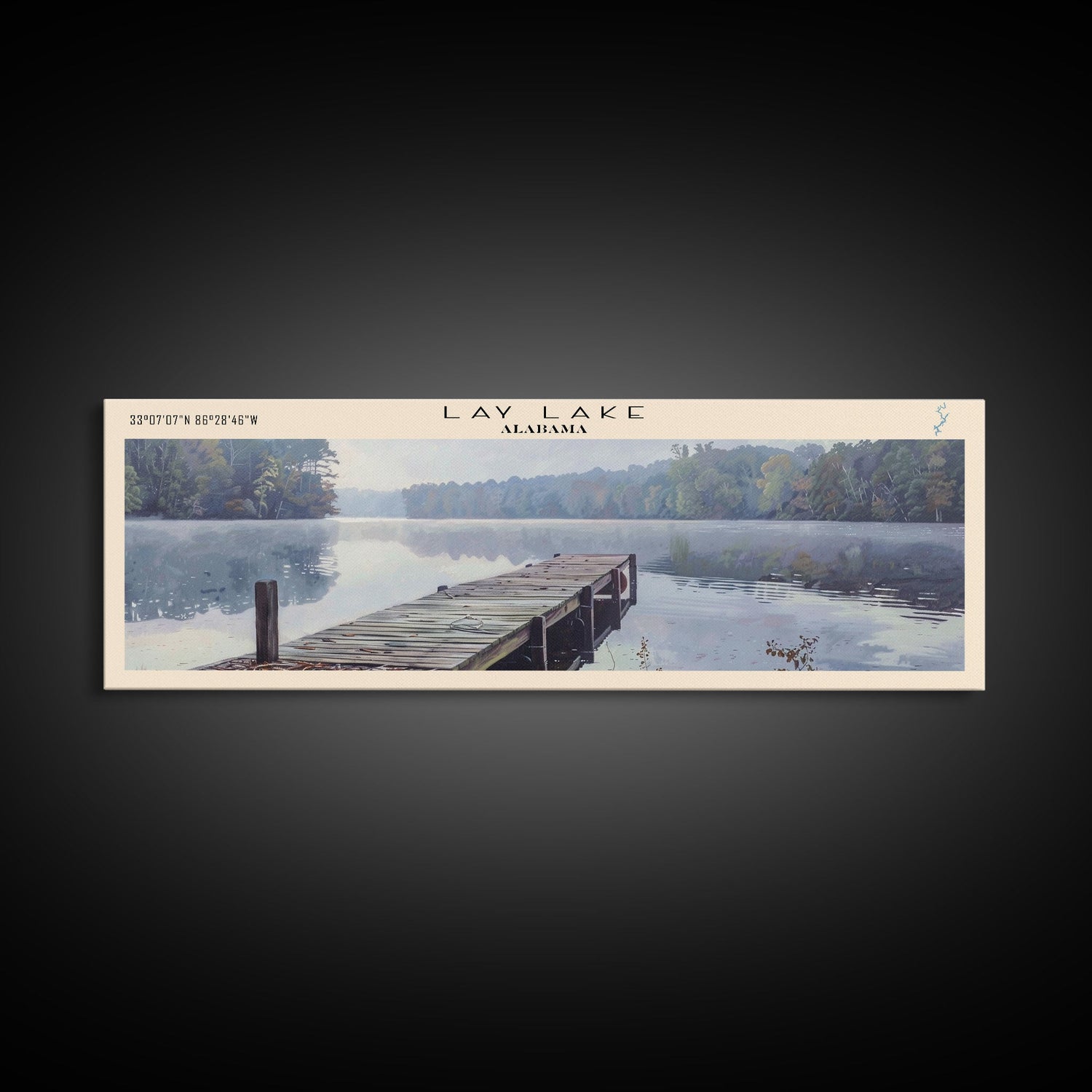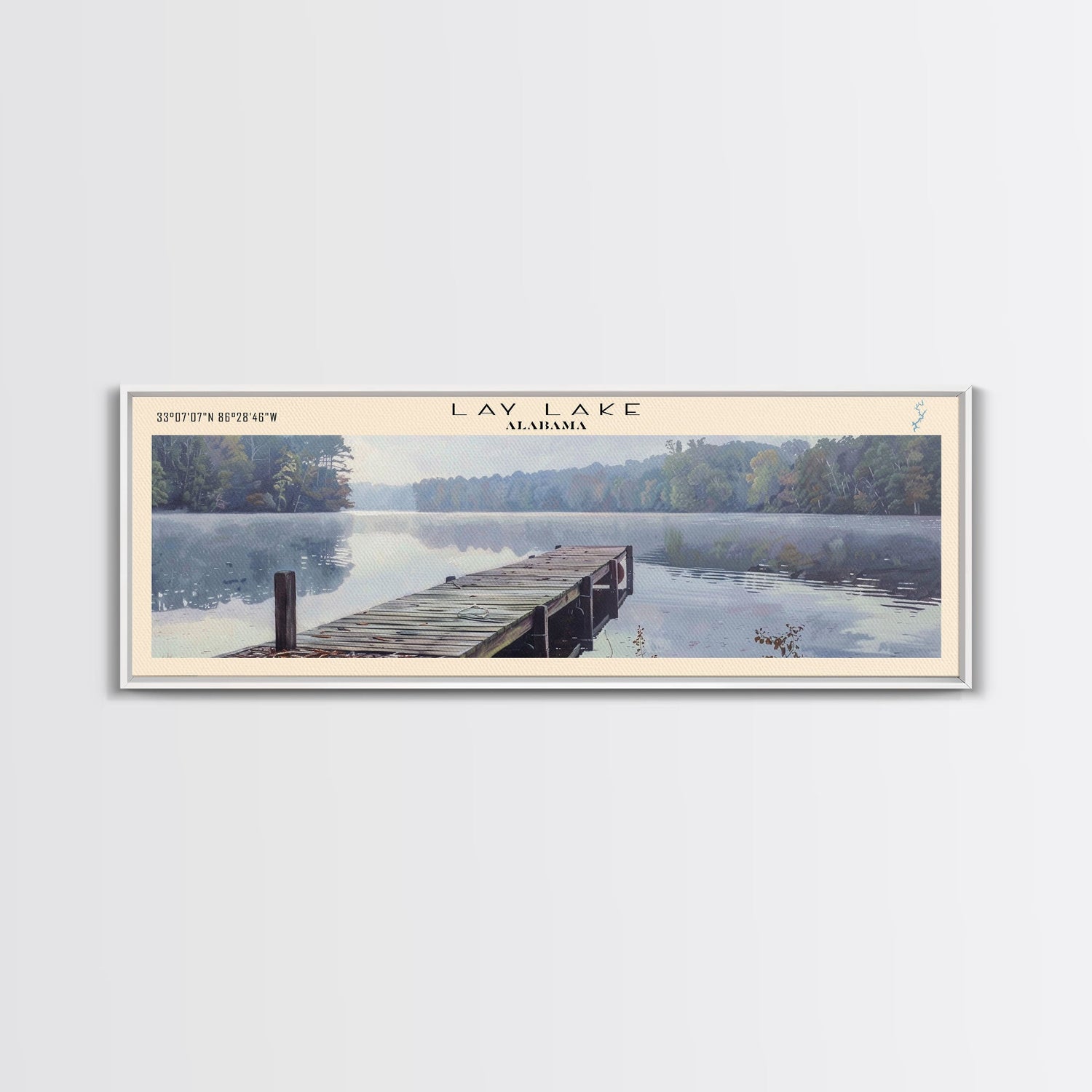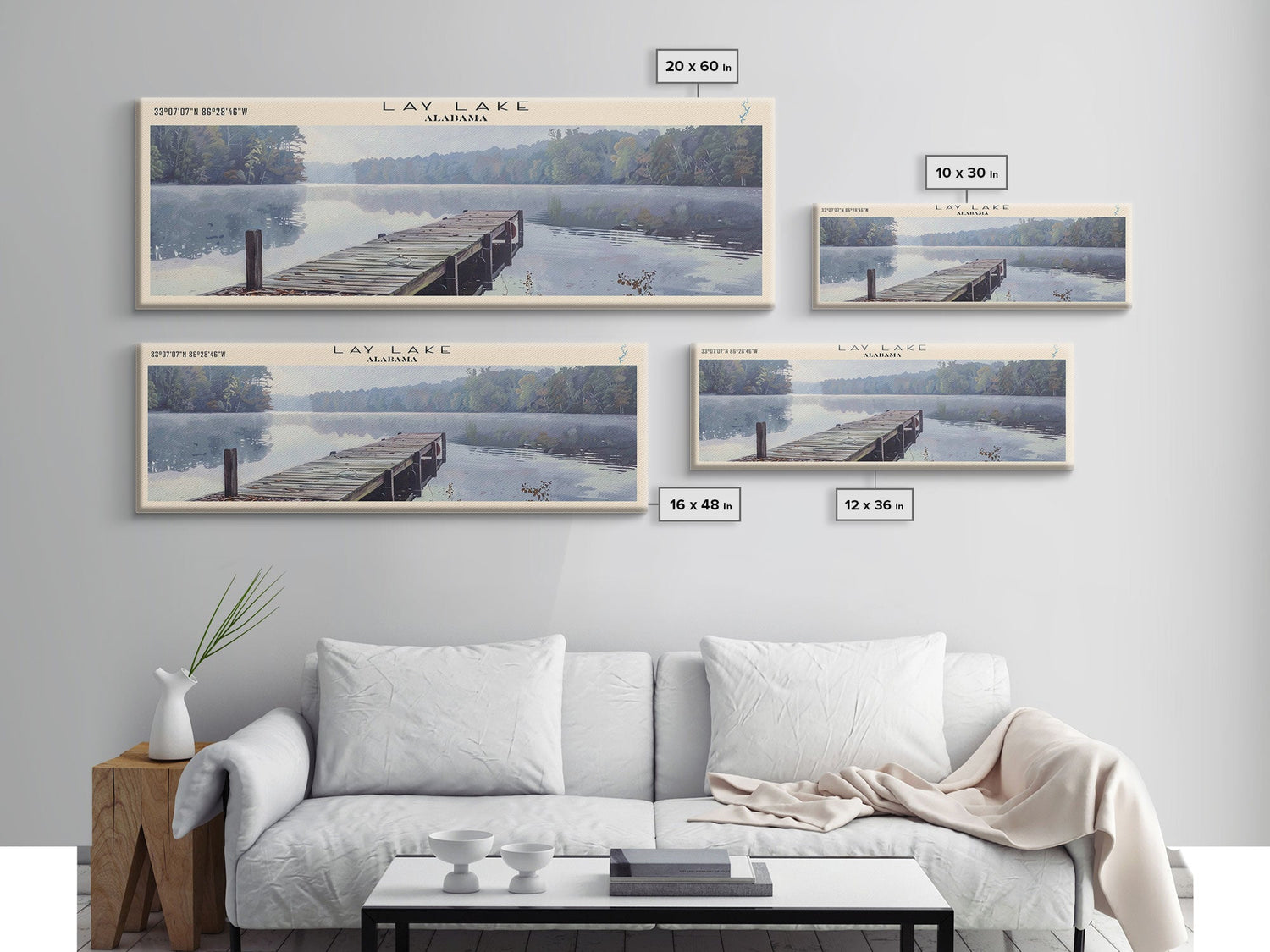 Lay Lake Alabama Framed Canvas Print, Lake House Decor, Panoramic Wall Art, Travel Poster, Beautiful Landscape Painting, Modern Art