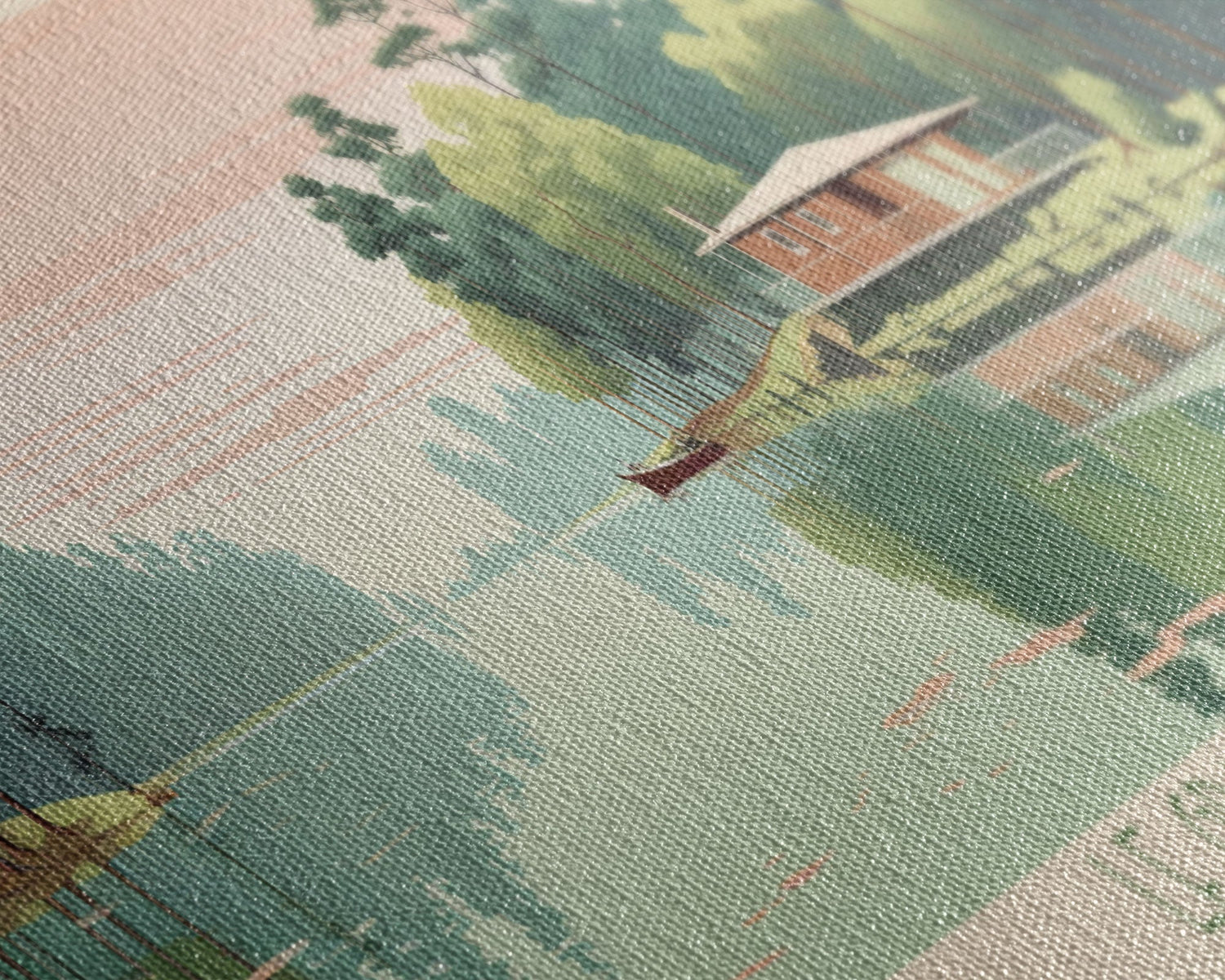 Lay Lake, Alabama Panoramic Wall Art Framed Canvas Print, Midcentury Modern, Pop Art, Home Decor, Travel Poster, Bedroom Art