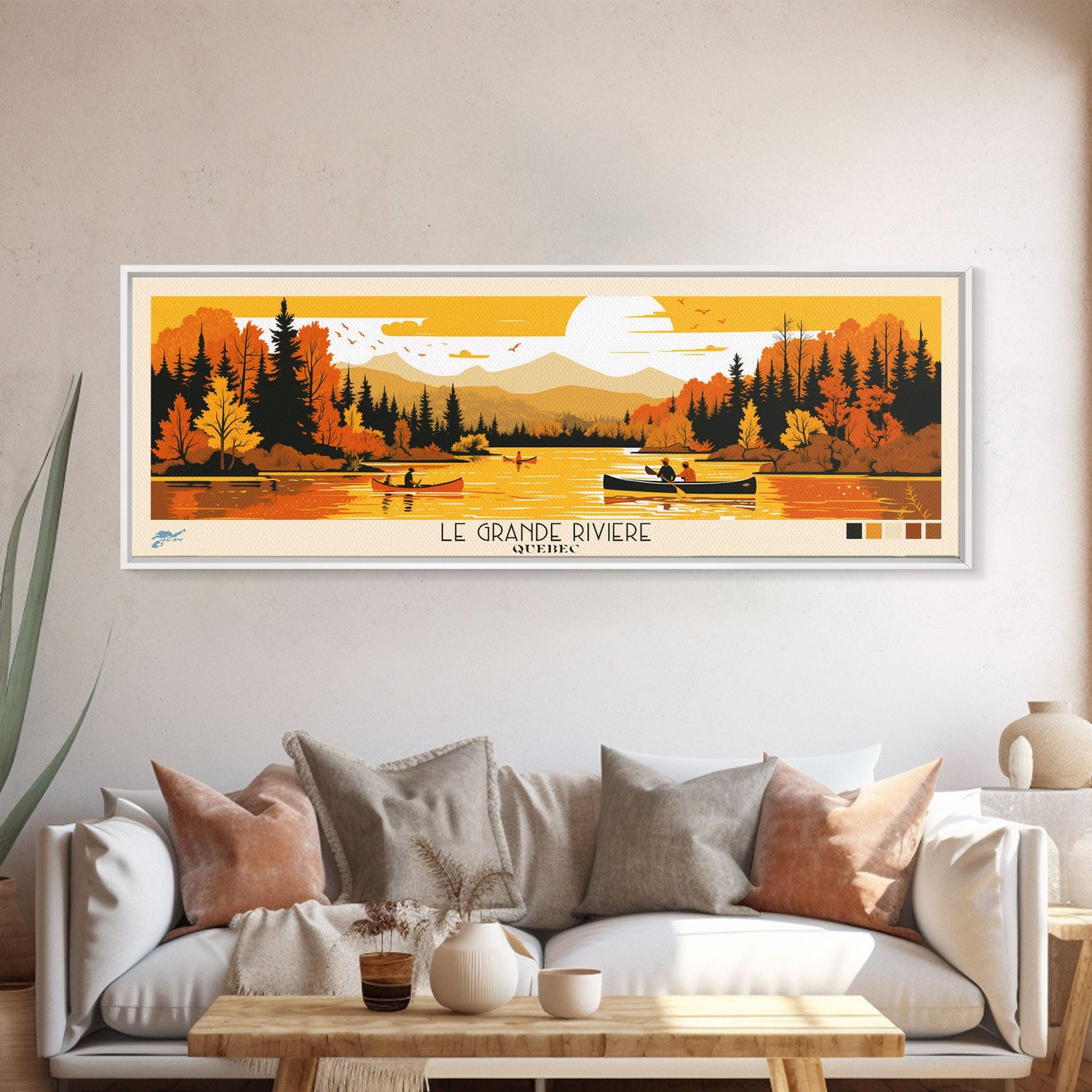 Le Grande Riviere, Quebec Panoramic Wall Art Framed Canvas Print, Midcentury Modern, Pop Art, Home Decor, Travel Poster, Living Room Art