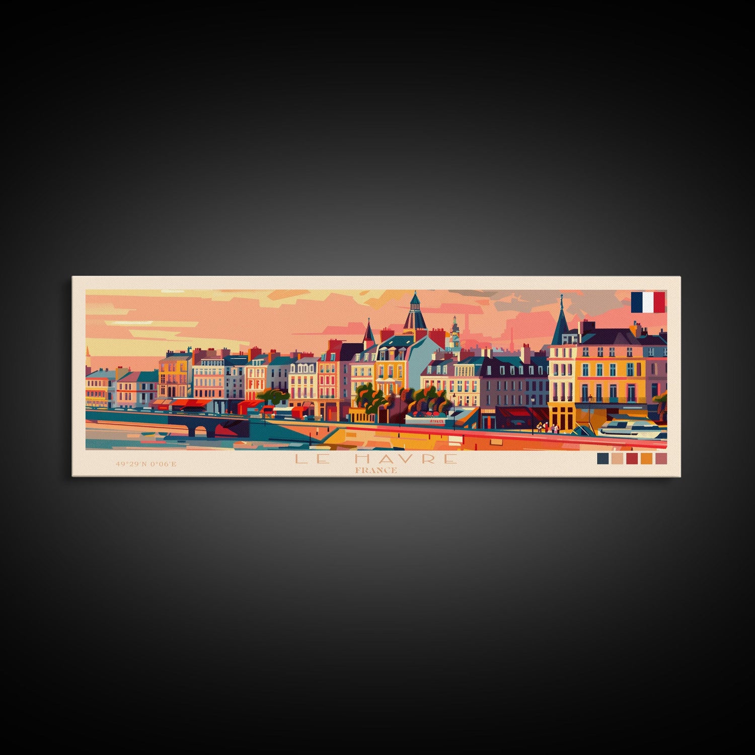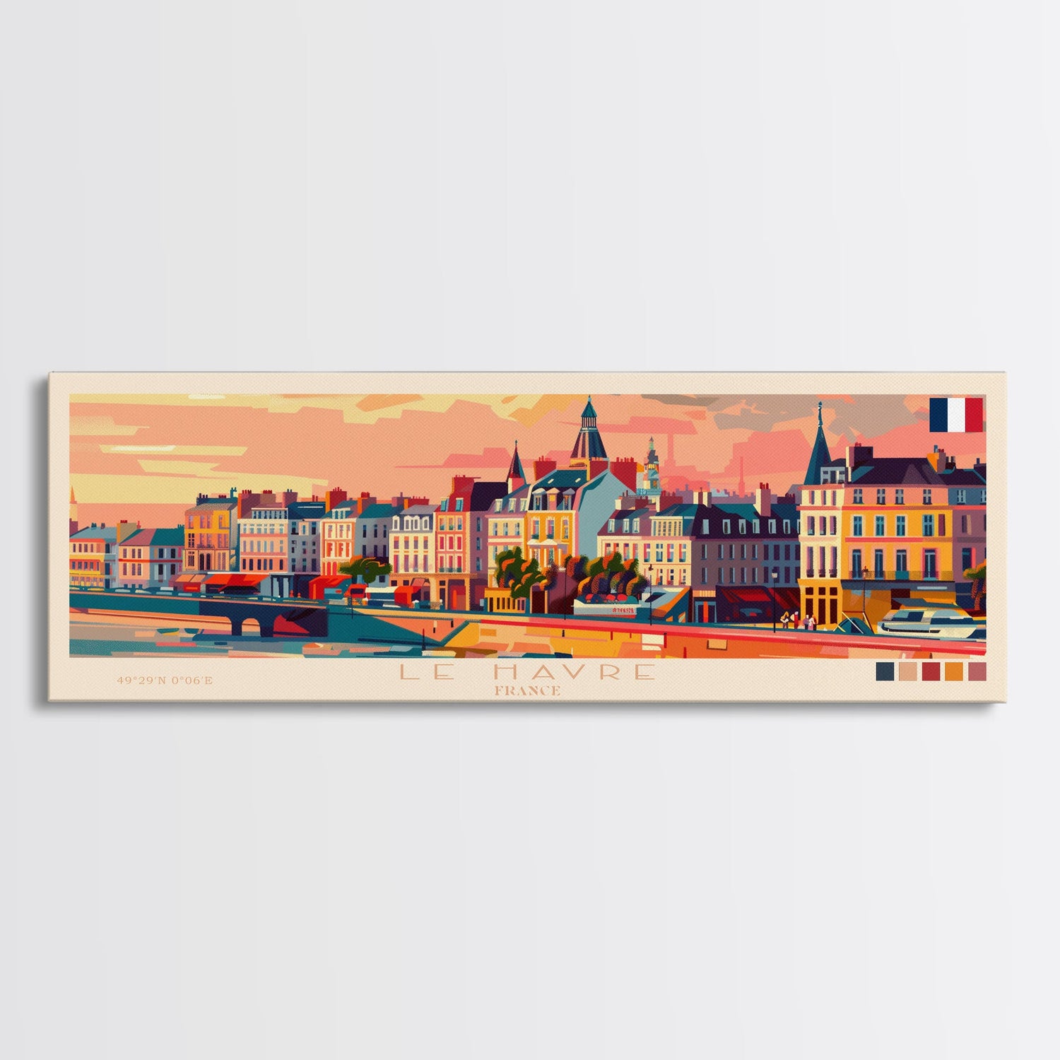 Le Havre France Panoramic Travel Poster, Framed Canvas Print or Metal Wall Art, Travel Art, Home Decor, Panoramic Painting, Midcentury Art