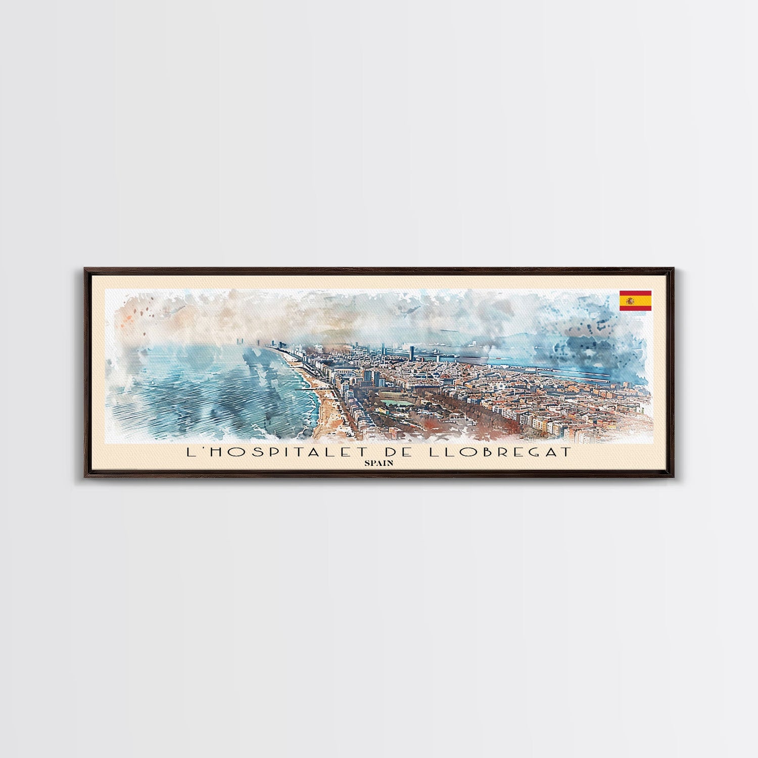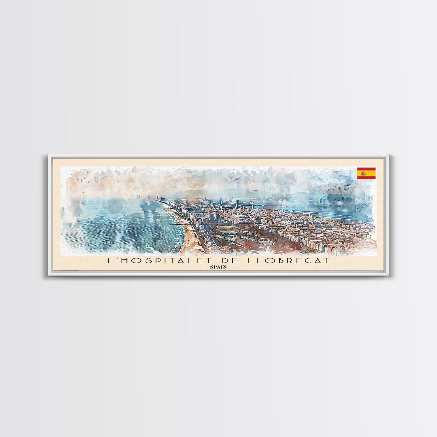 Le Hospitalet de Llobregat Spain Travel Print Wall Art, Panoramic City Art, Travel Art, Wall Decor, Vacation Gift, Framed Canvas Print Or Metal Art