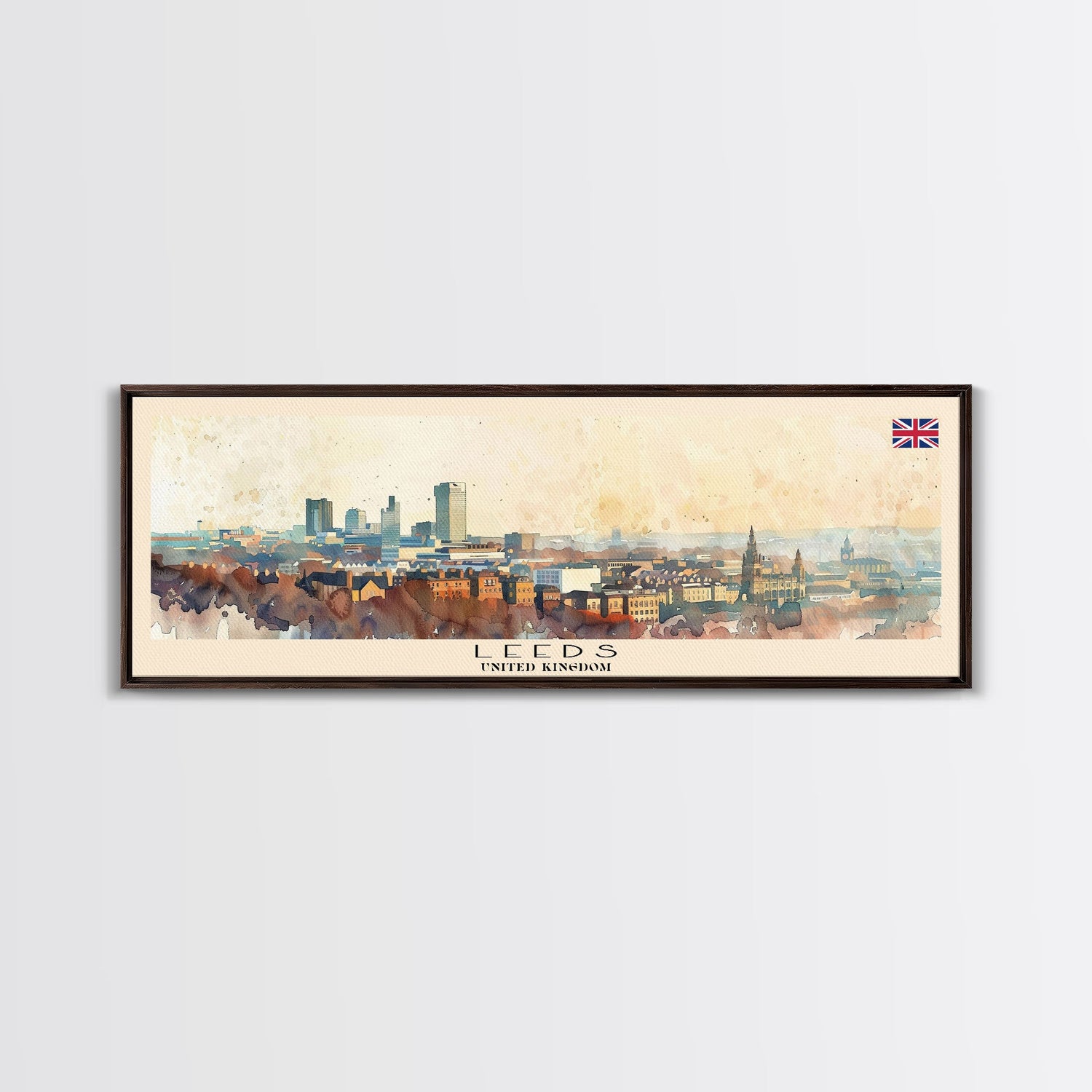 Leeds United Kingdom Panoramic Travel Poster, Framed Canvas Print or Metal Wall Art, Travel Art, Home Decor, Panoramic Painting, Midcentury Art