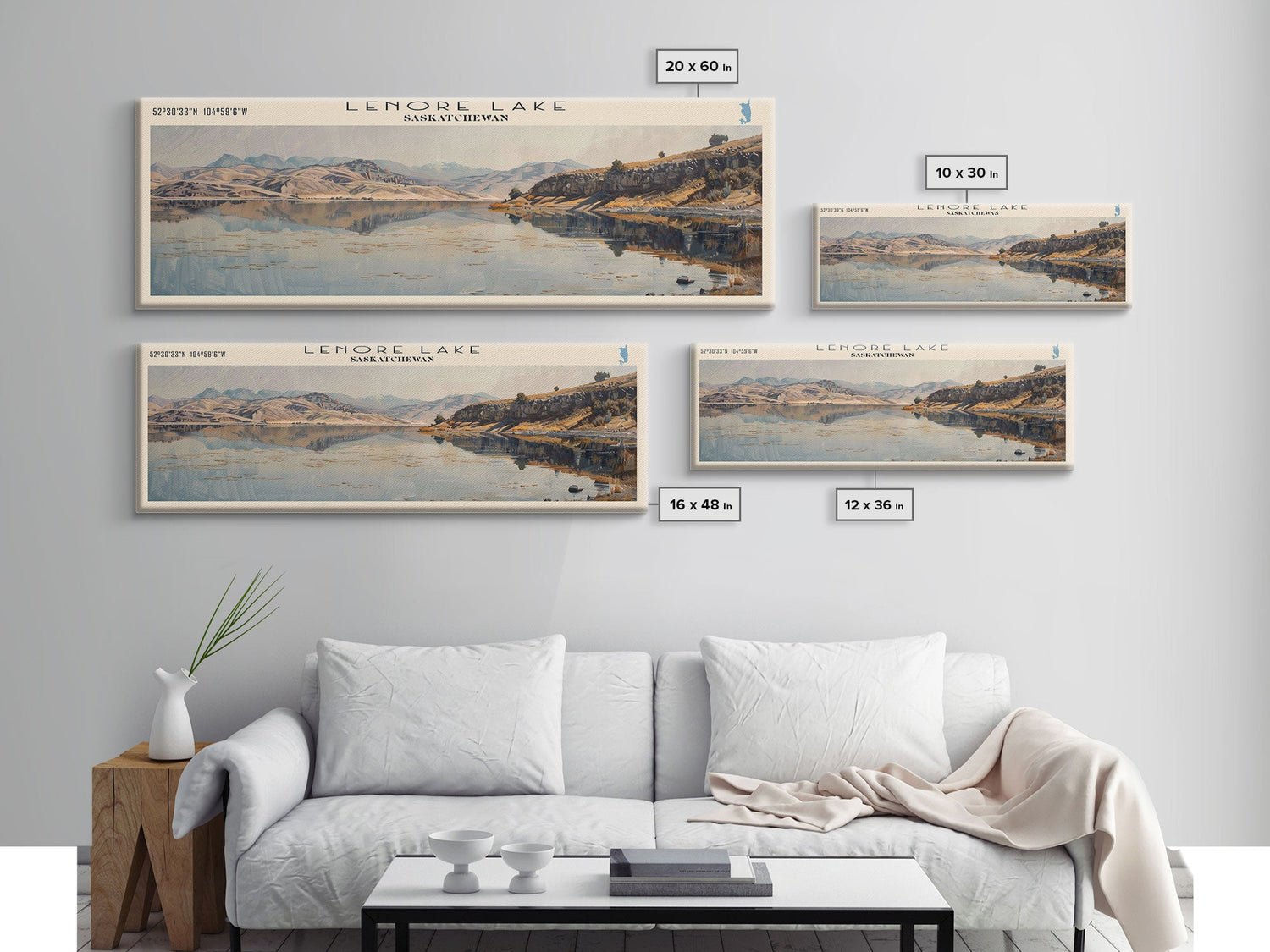 Lenore Lake Framed Canvas Print, Lake House Decor, Panoramic Wall Art, Travel Poster, Landscape Painting, Bedroom Decor