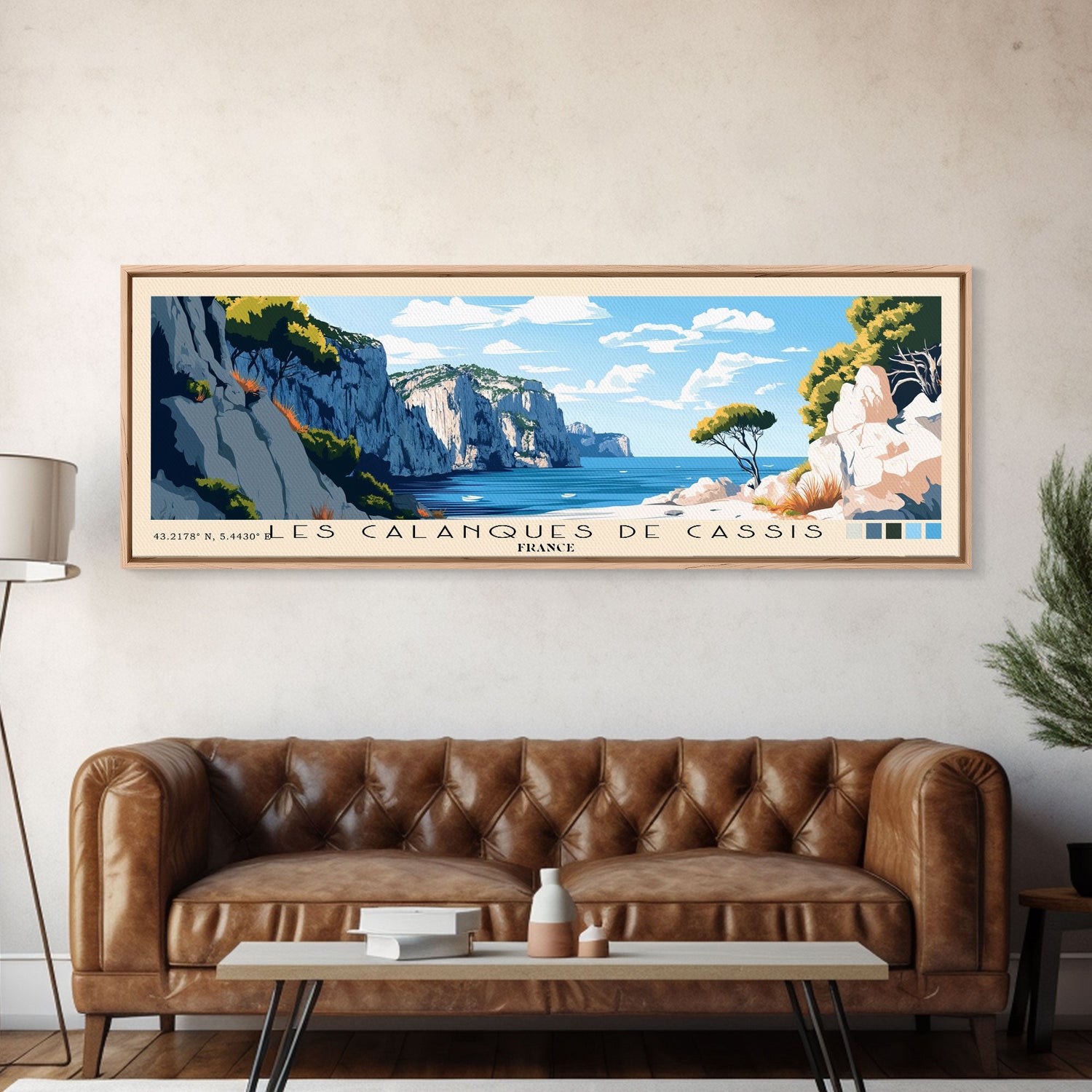 Les Calanques de Cassis, France Panoramic Print, Vacation Gift, France Wall Art, Beach Painting, Beach Decor, Large Wall Art, Wood Frame Art
