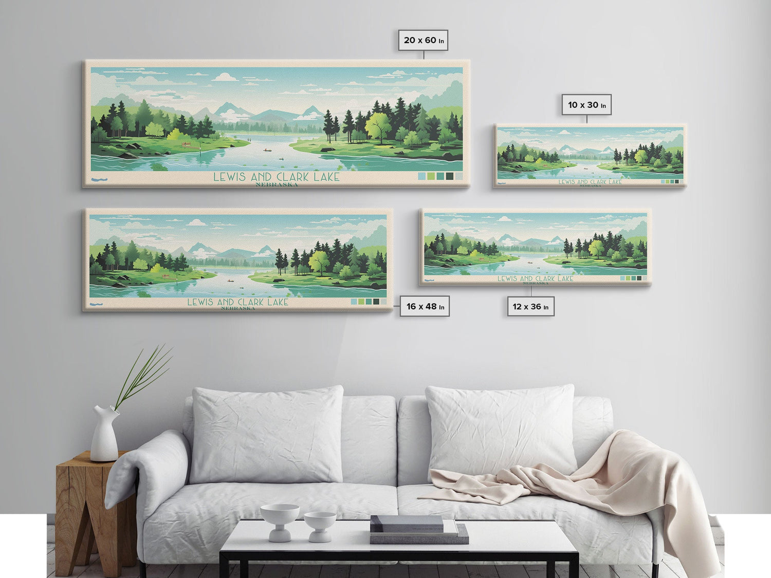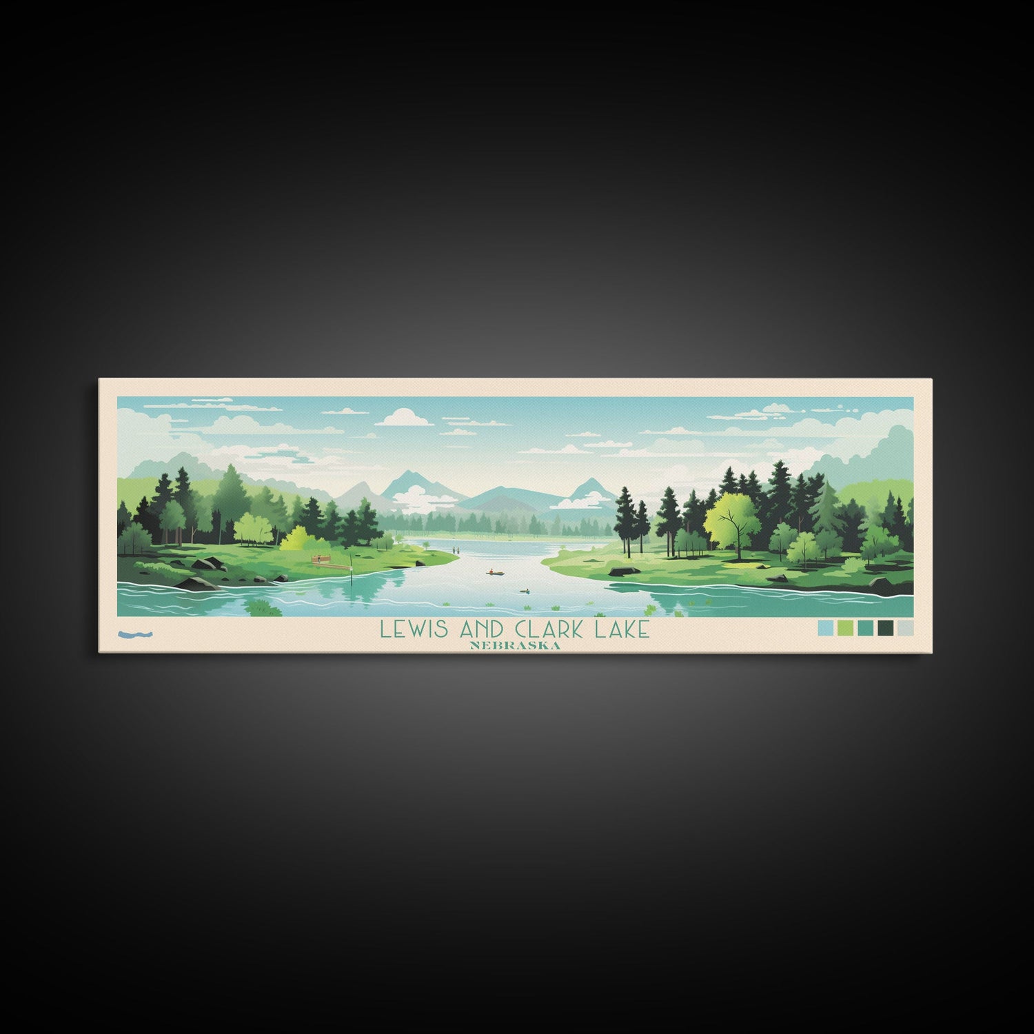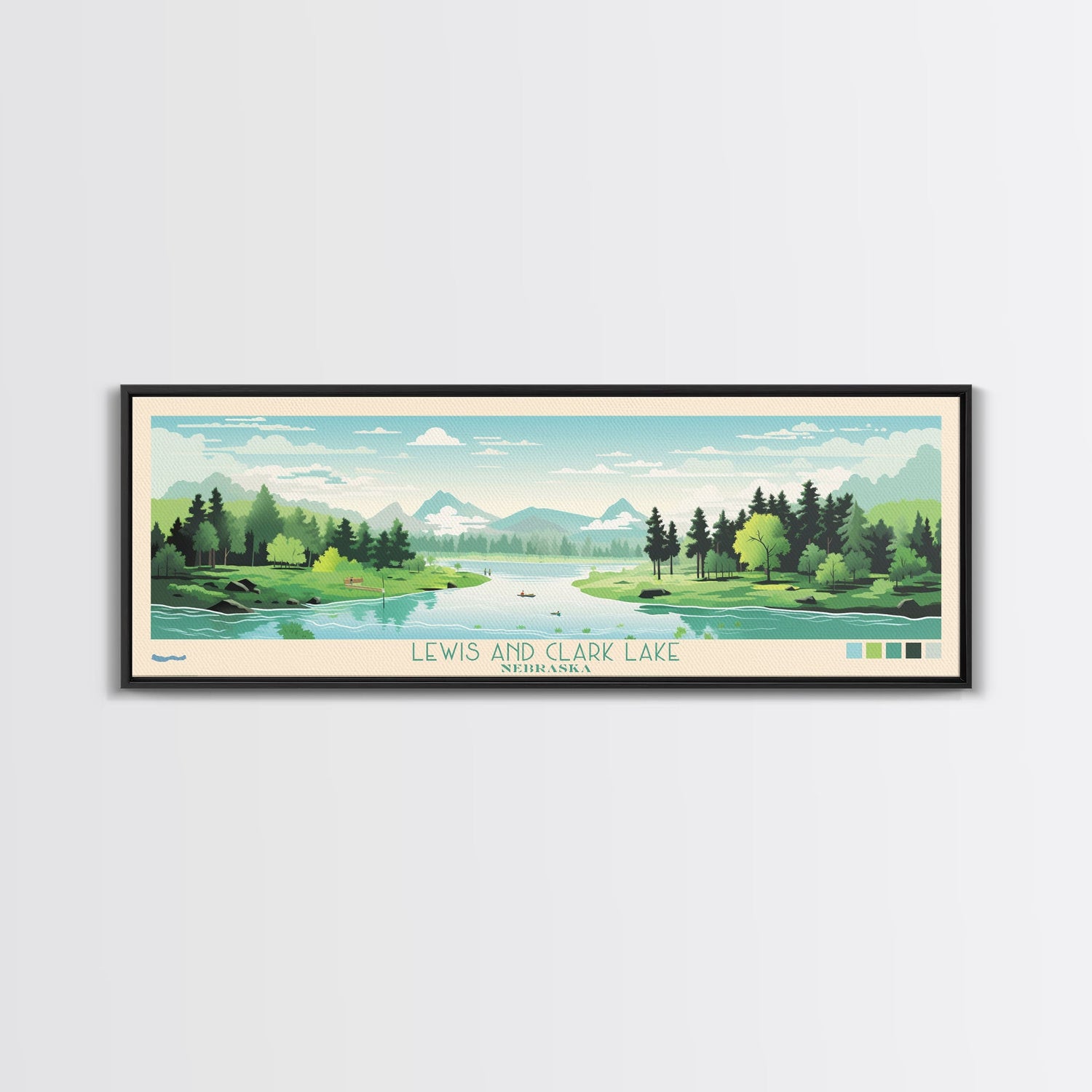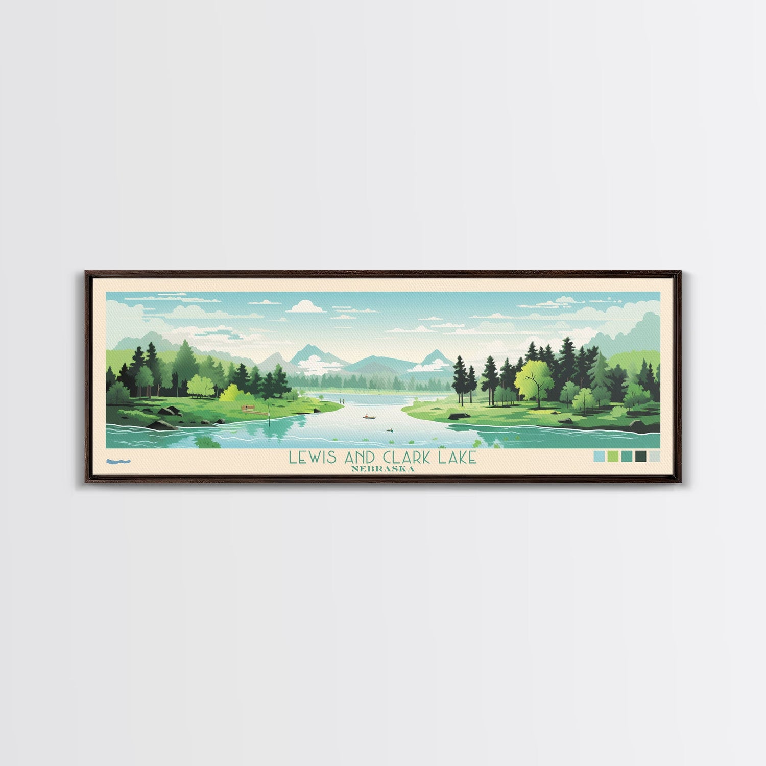 Lewis and Clark Lake, Nebraska Panoramic Wall Art Framed Canvas Print, Midcentury Modern, Pop Art, Home Decor, Travel Poster, Bedroom Art