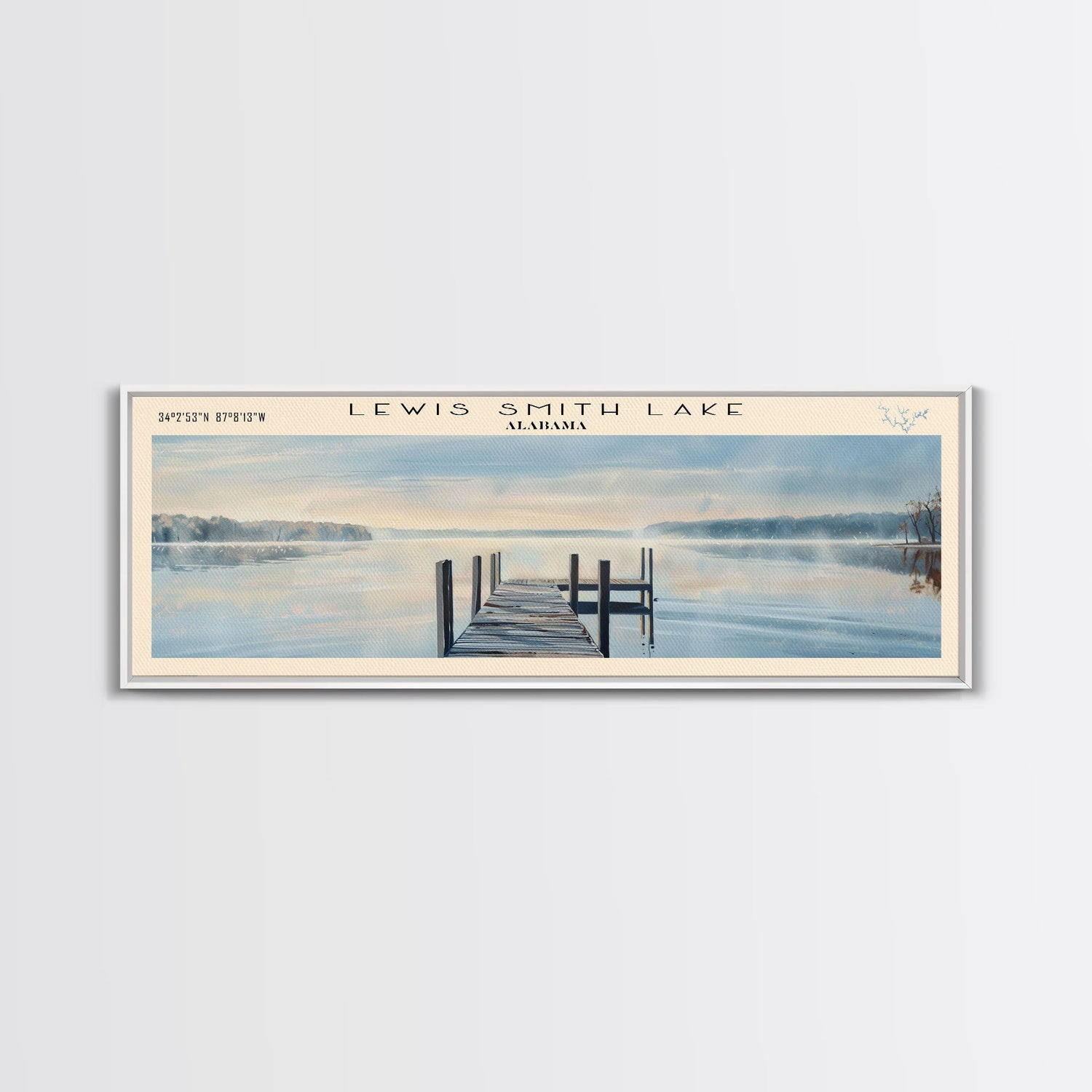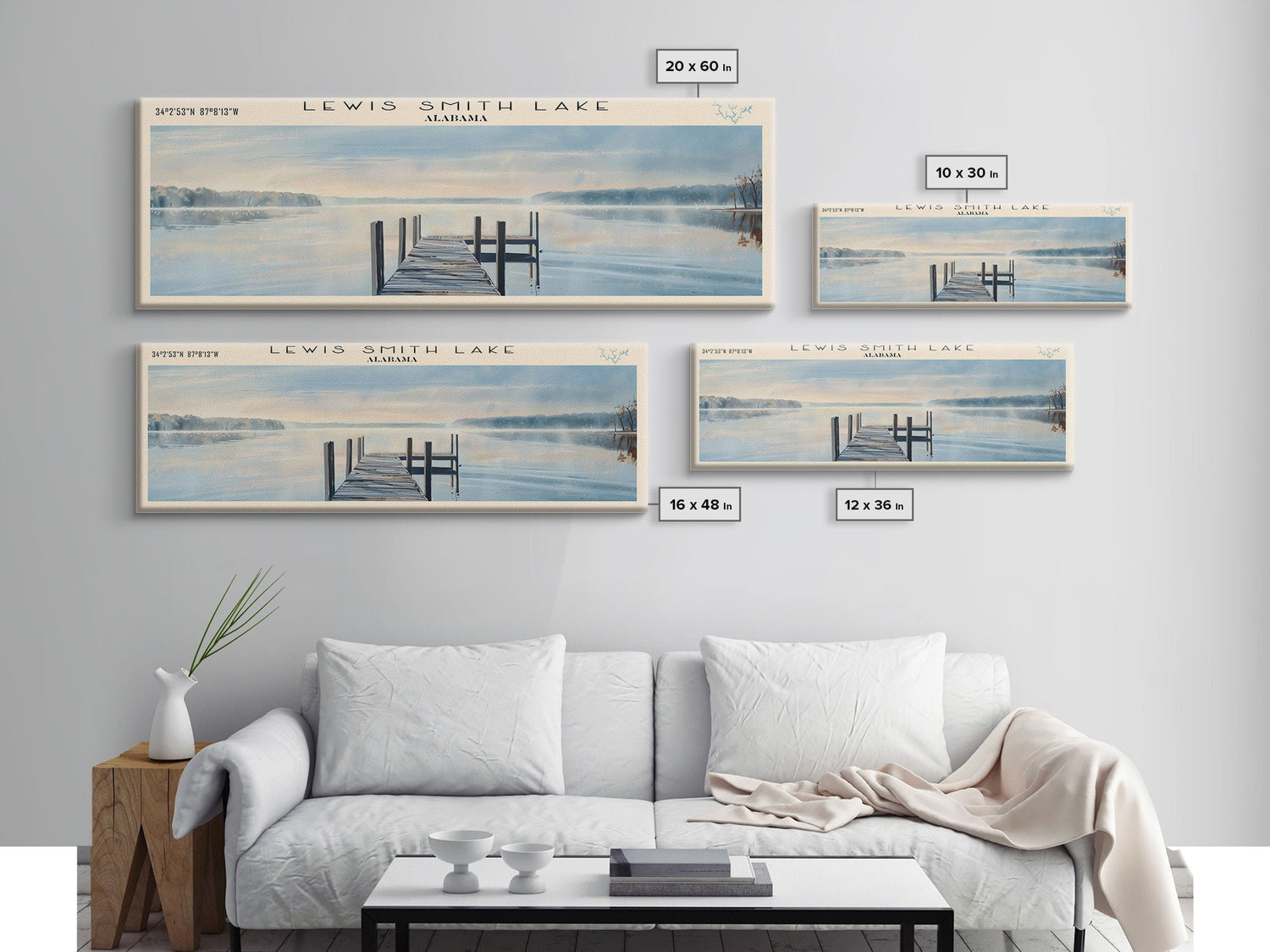 Lewis Smith Lake Alabama Framed Canvas Print, Lake House Decor, Panoramic Wall Art, Travel Poster, Landscape Painting, Modern Art