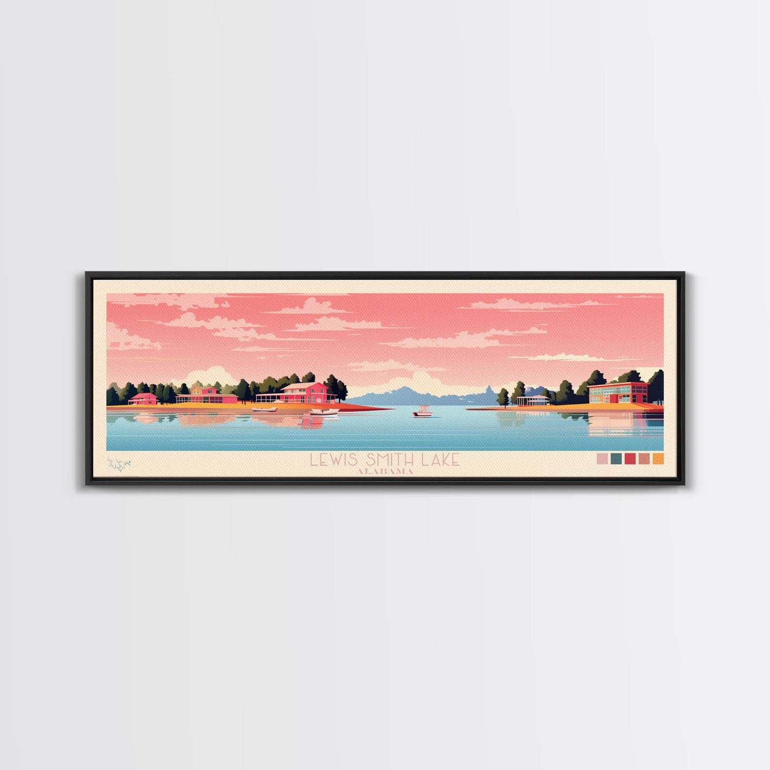 Lewis Smith Lake, Alabama Panoramic Wall Art Framed Canvas Print, Midcentury Modern, Pop Art, Home Decor, Travel Poster, Living Room Art