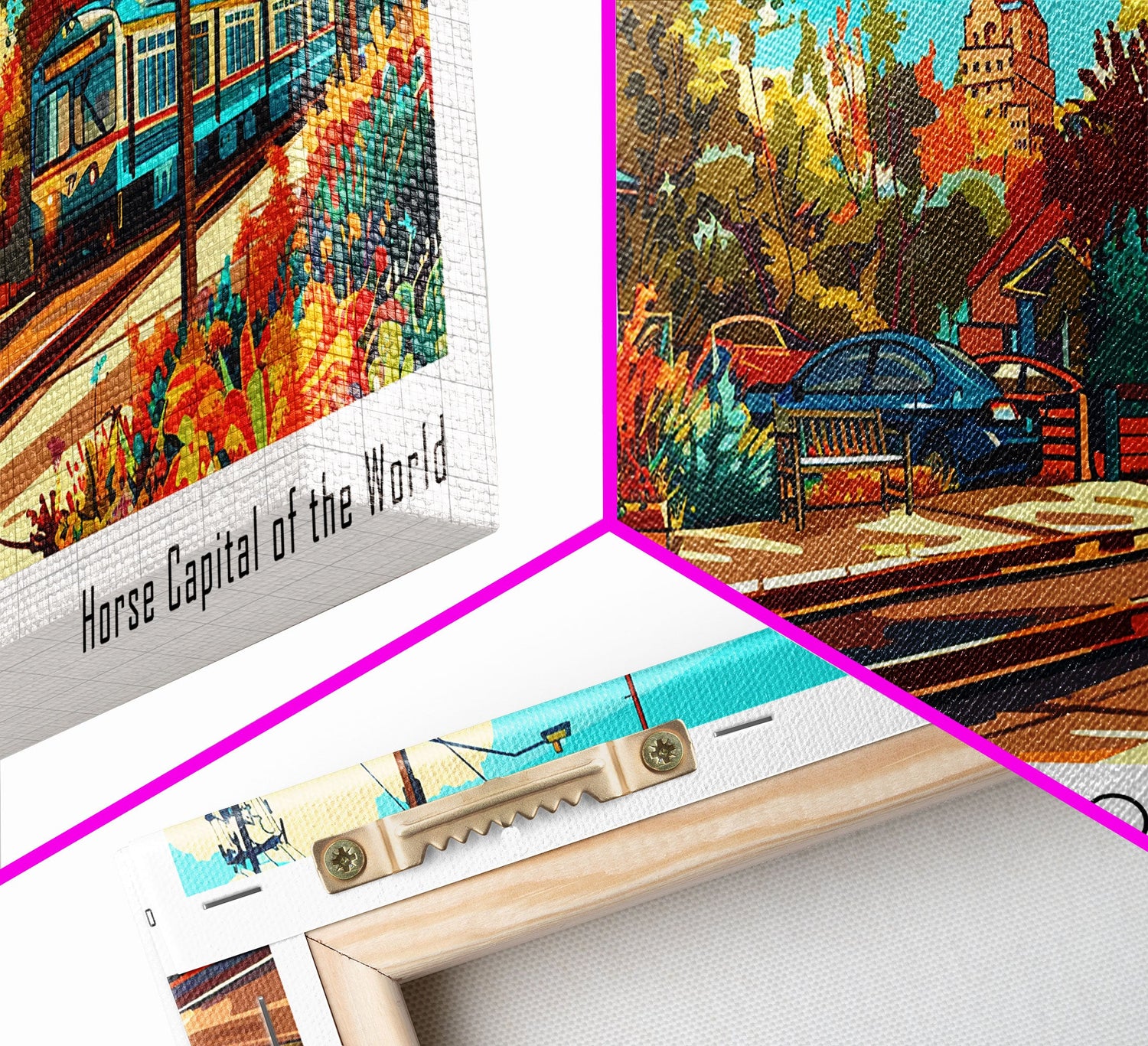 Lexington Kentucky Panoramic Framed Canvas Print, Mid Century Modern Pop Art, Retro Wall Art Decor, Travel Poster Painting