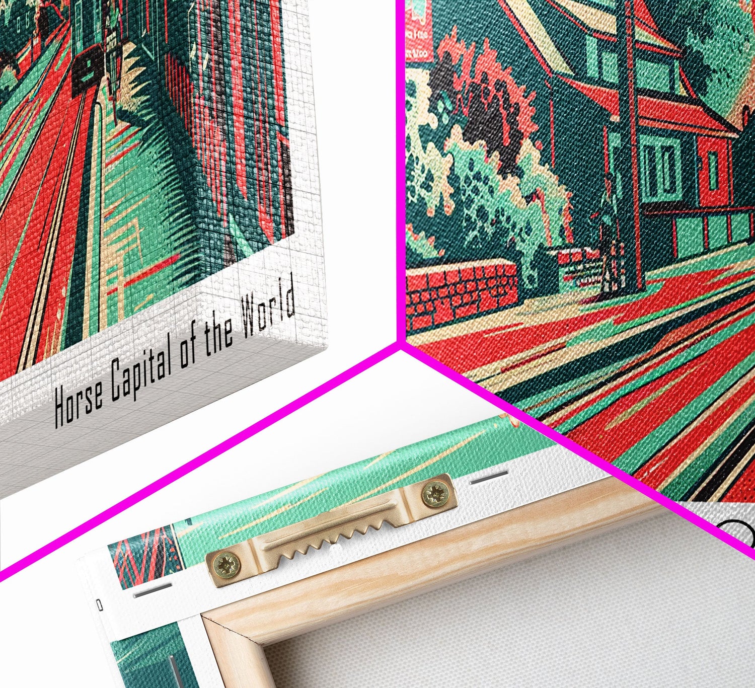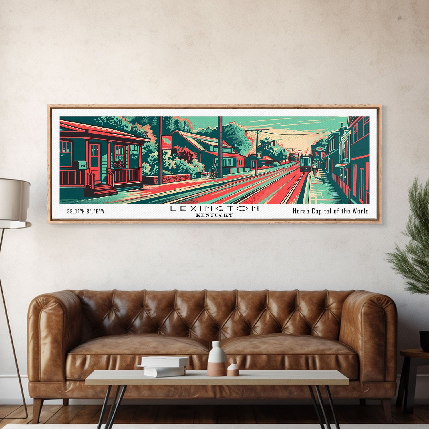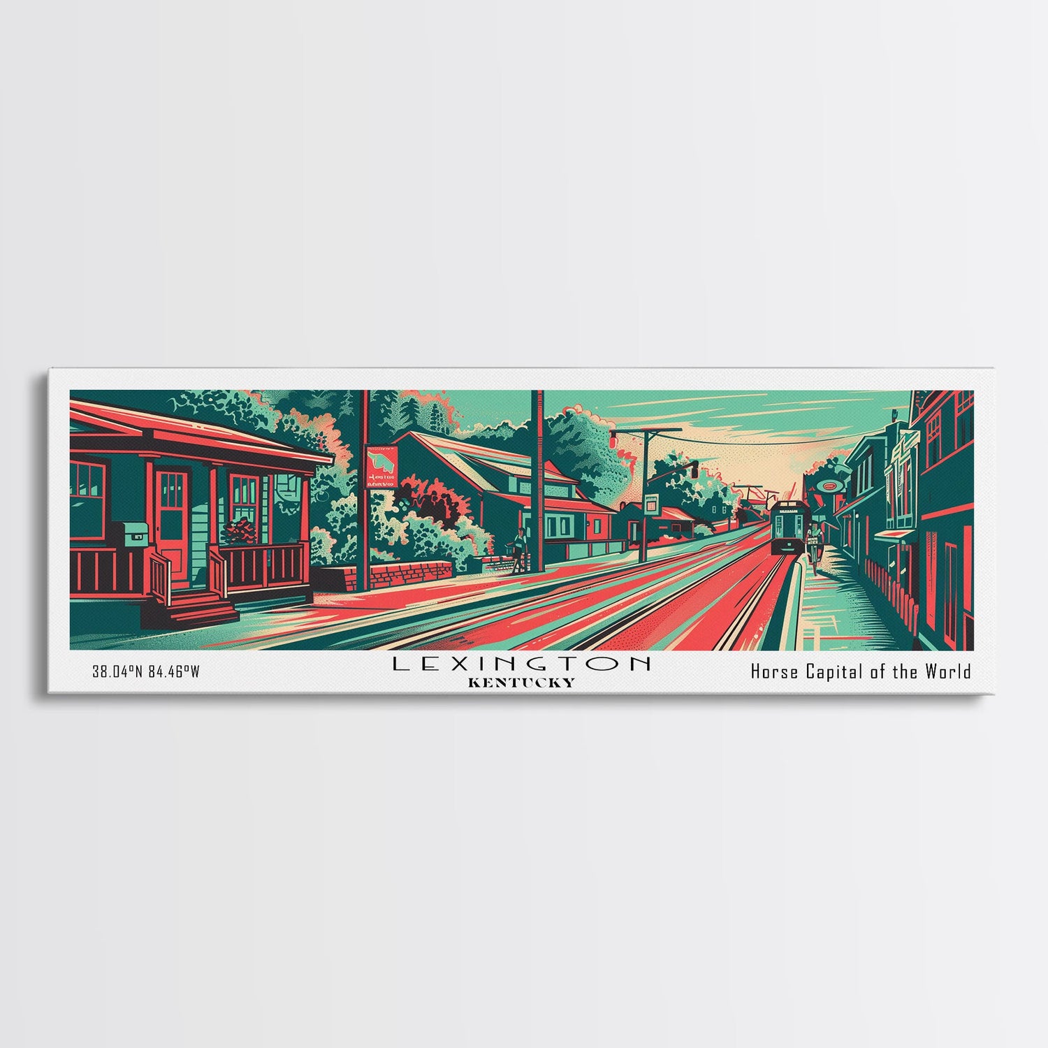 Lexington Kentucky Panoramic Painting Framed Canvas Print, Travel Poster, Mid Century Modern Art, Pop Art Style, Wall Decor, Office Art - 10x30 Inches / No Frame - Stretched Canvas Only is backordered and will ship as soon as it is back in stock.