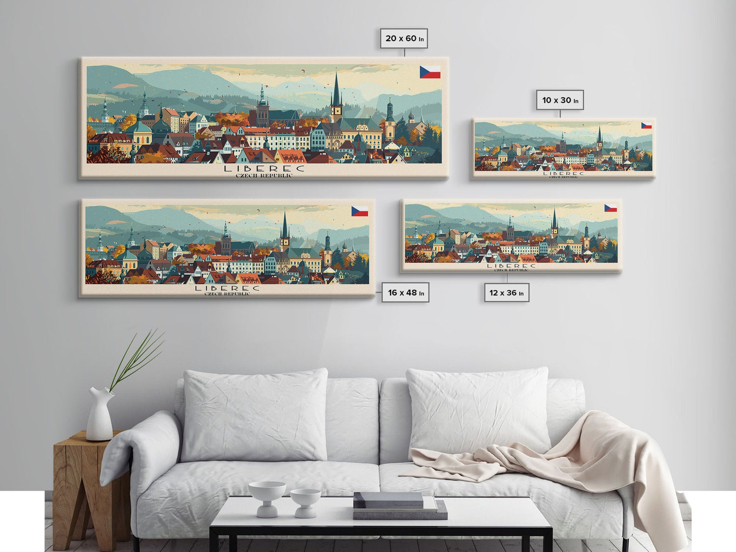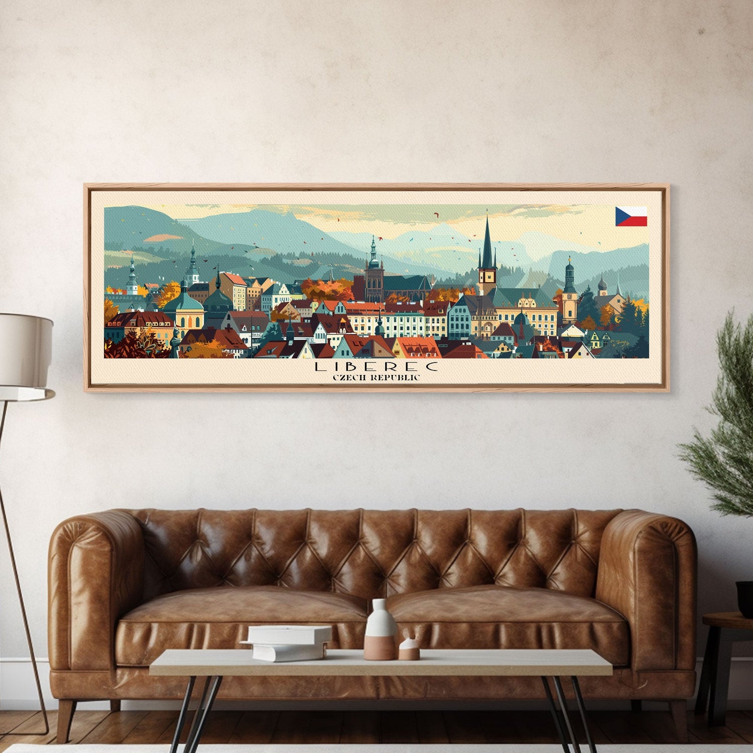 Liberec Czech Republic Travel Art, City Art, Framed Canvas Print or Metal Wall Art, Europe Travel Poster, Panoramic Wall Art, Extra Wide Wall Art