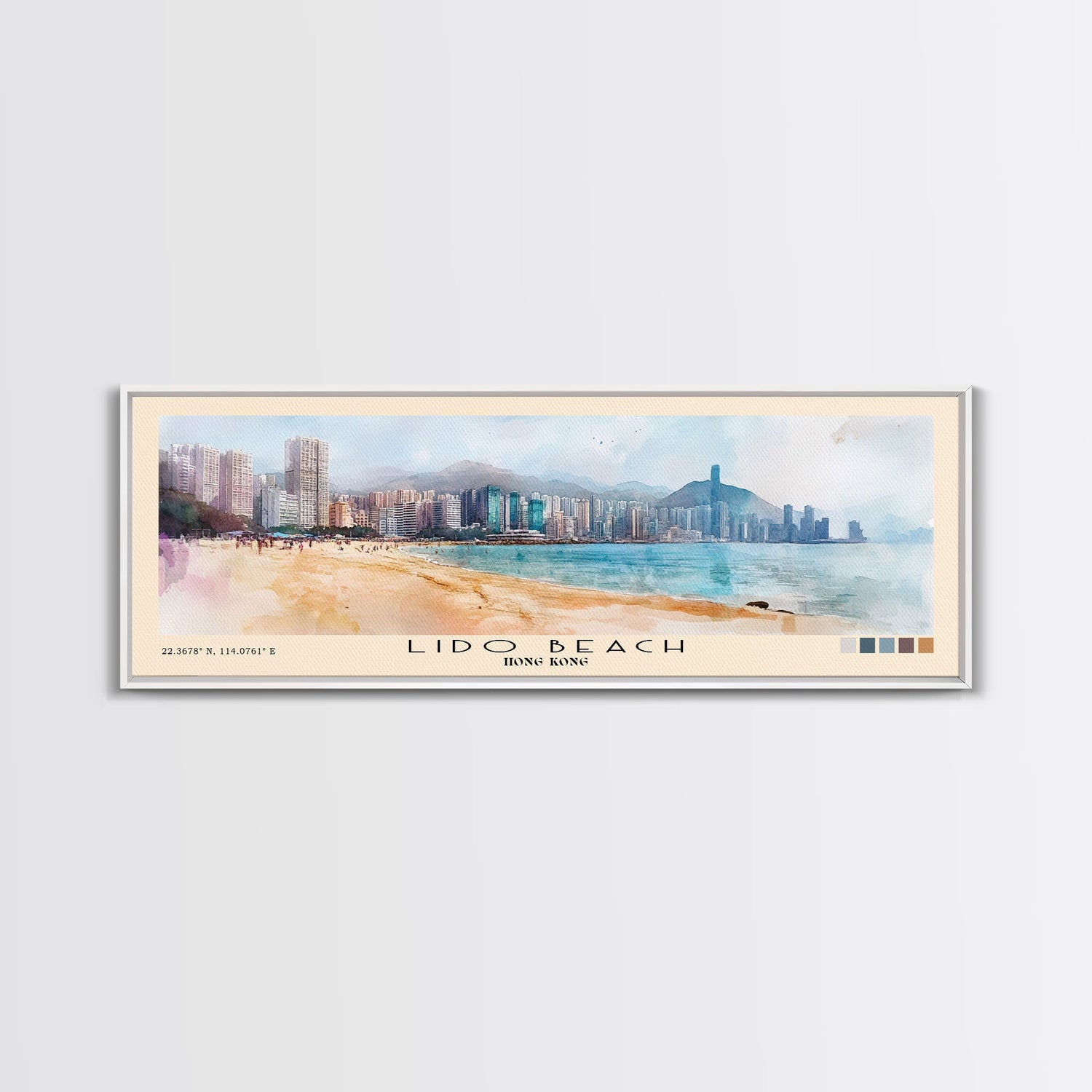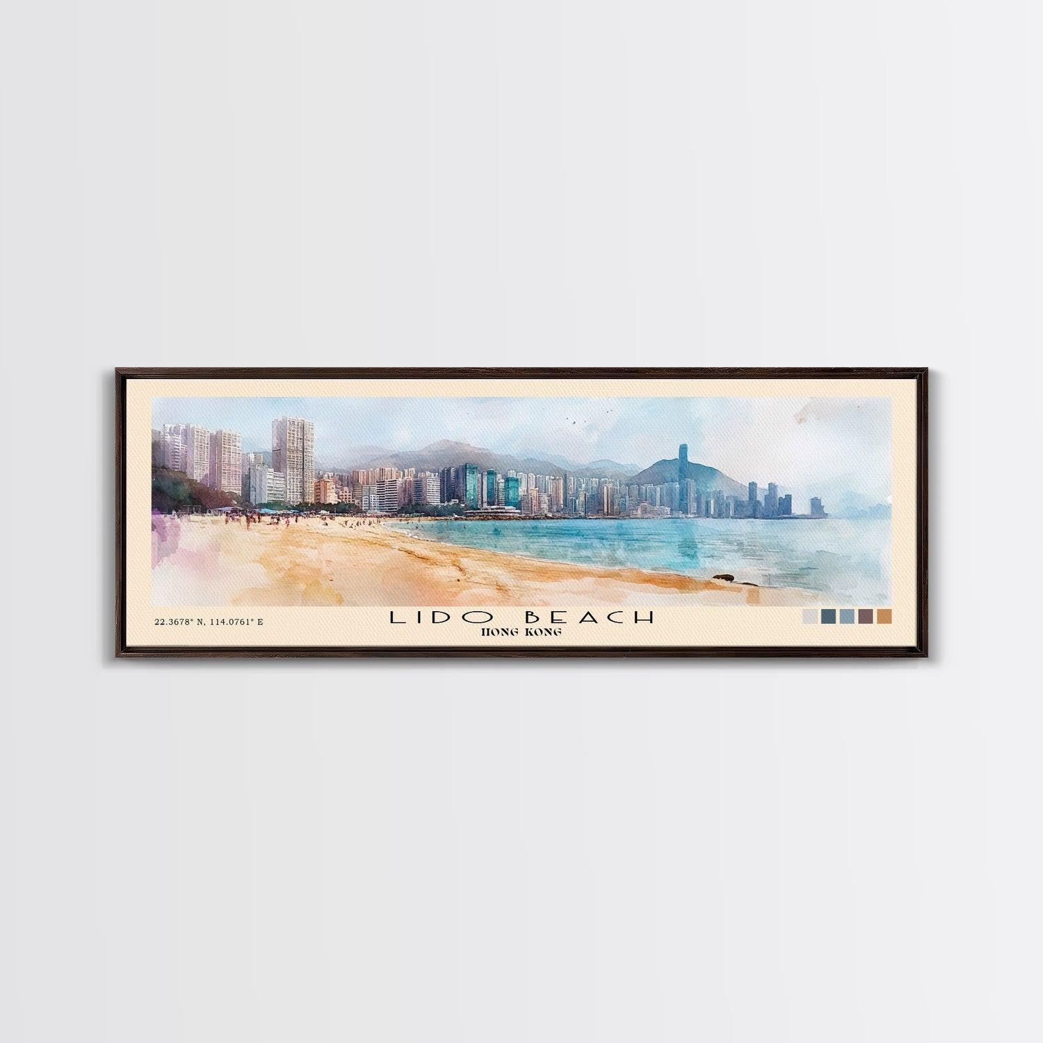Lido Beach, Hong Kong Watercolor Print, Vacation Gift, Hong Kong Wall Art, Beach Painting, Beach Decor, Large Wall Art, Wood Frame Art - 10x30 Inches / No Frame - Stretched Canvas Only is backordered and will ship as soon as it is back in stock.