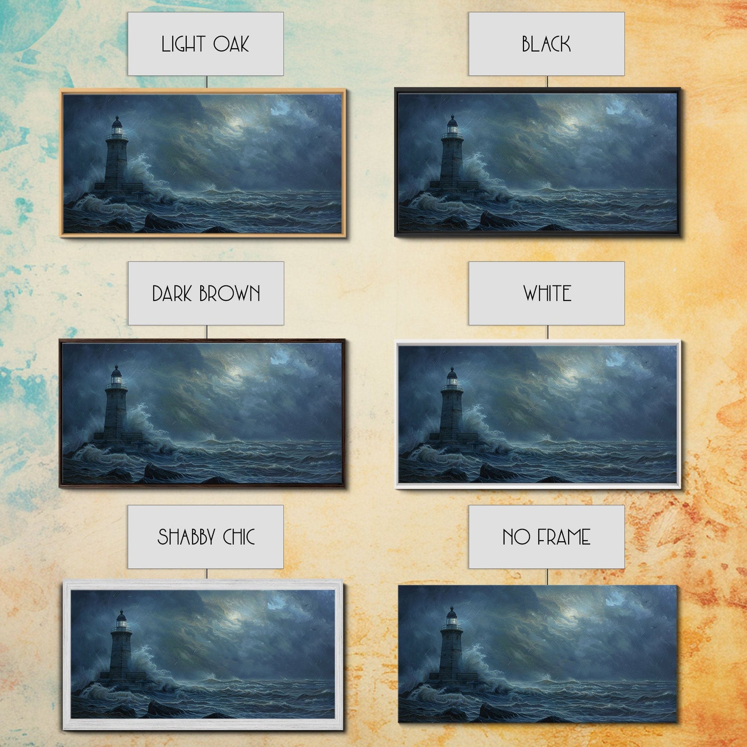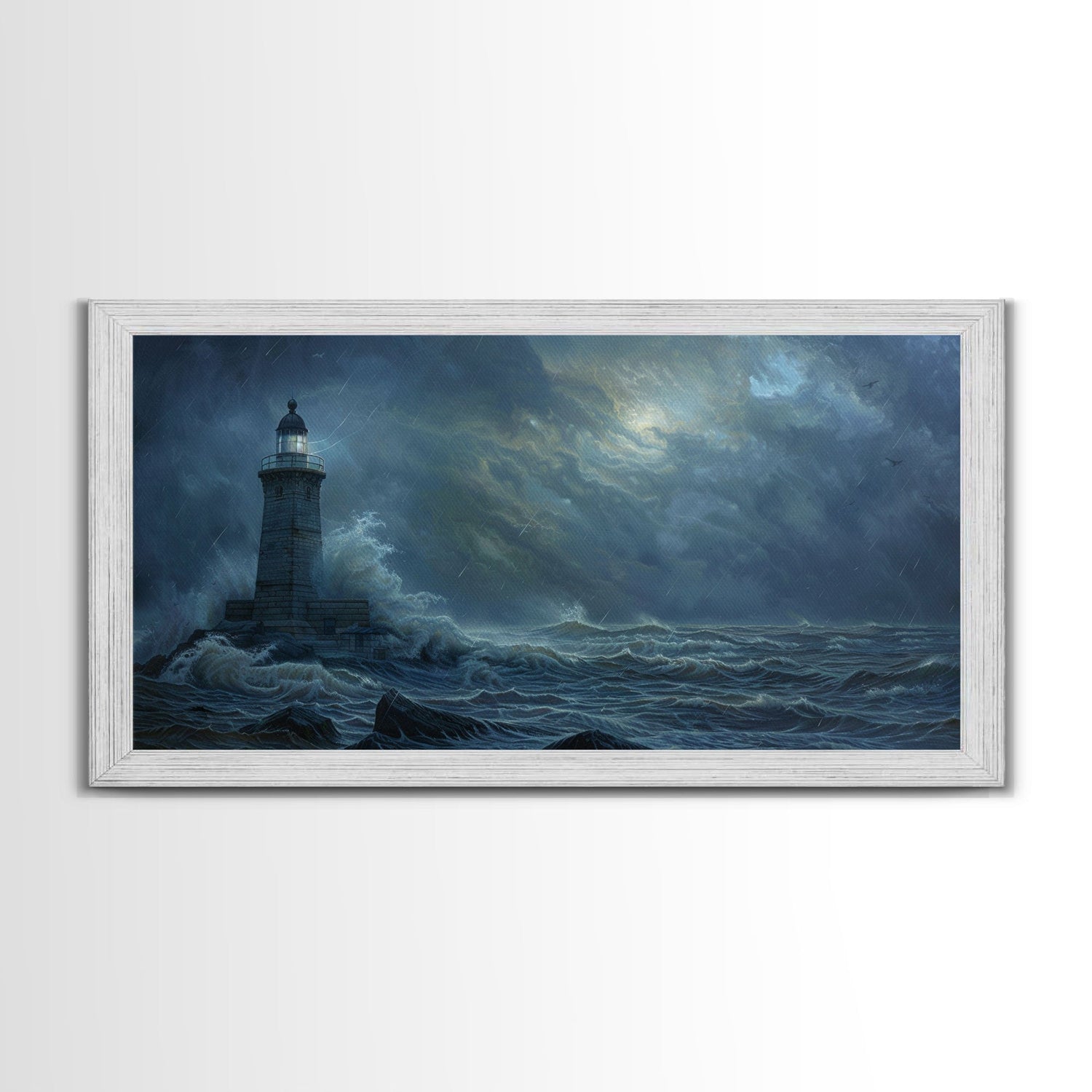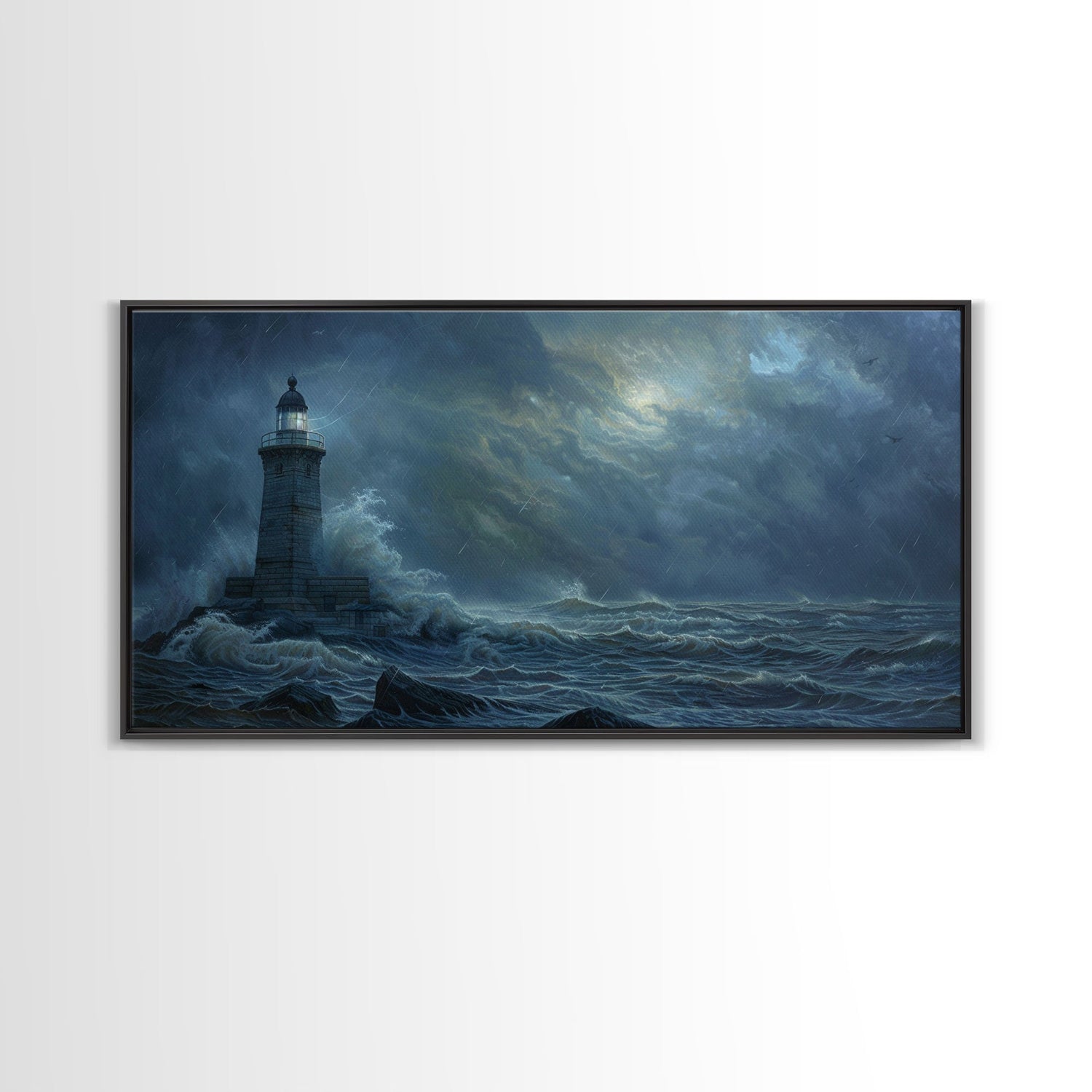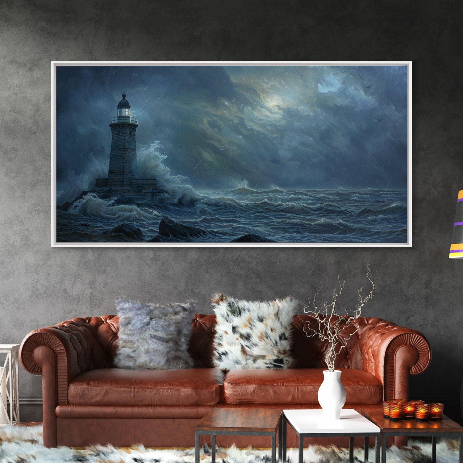 Lighthouse and the Storm, Framed Canvas Print, Unique Halloween Wall Art, Nautical Decor
