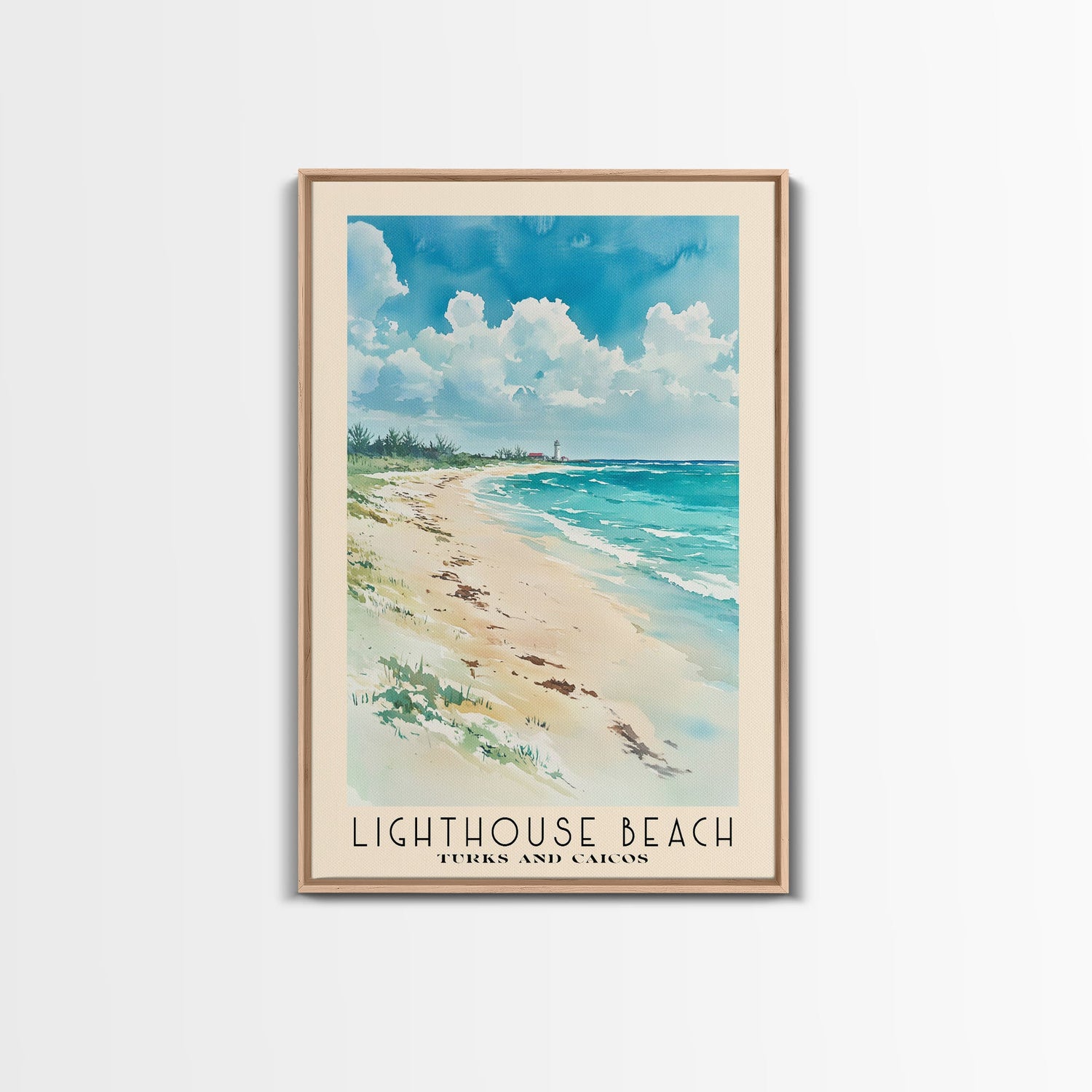 Lighthouse Beach, Turks and Caicos Watercolor Beach Print, Vacation Gift, Turks and Caicos Wall Art, Framed Canvas Print, Framed Beach Painting