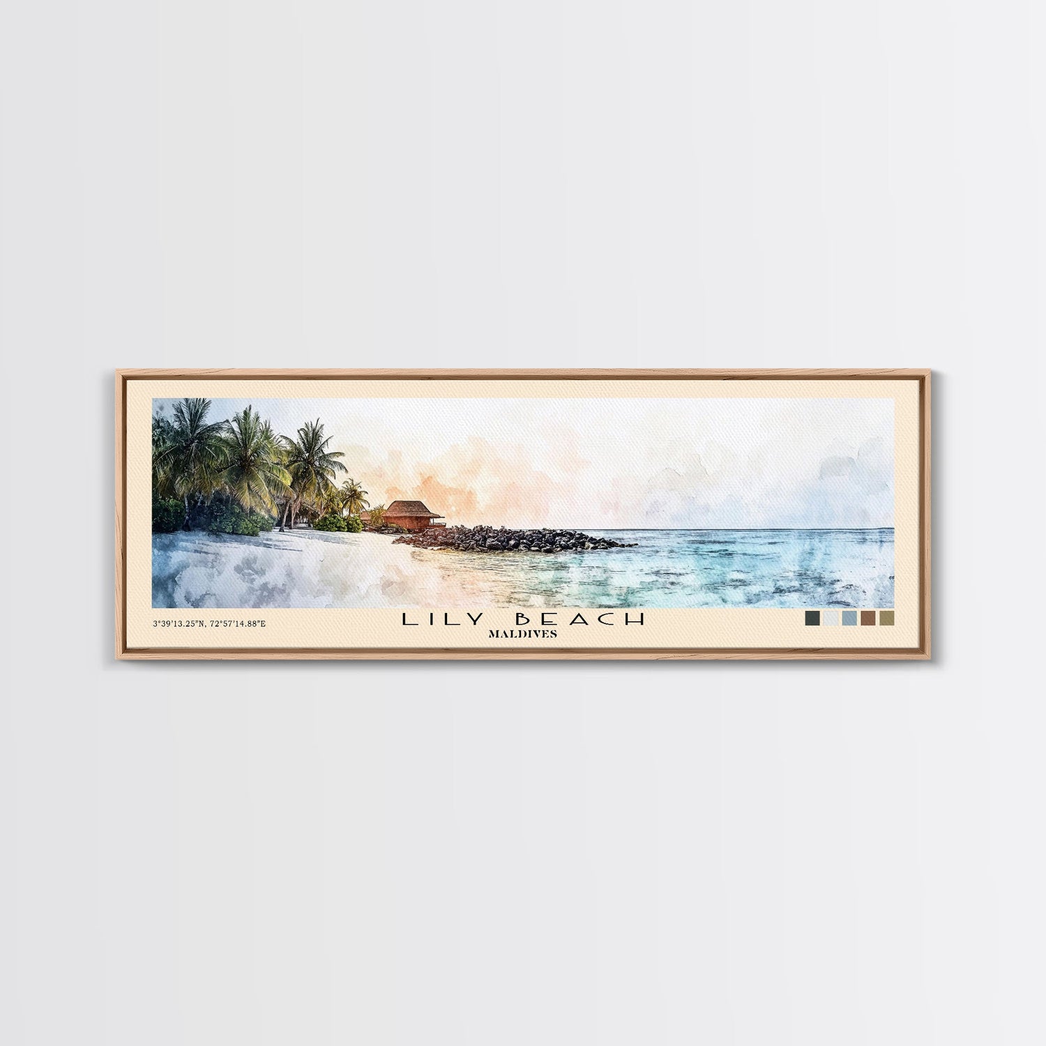 Lily Beach, Maldives Watercolor Beach Print, Vacation Gift, Maldives Wall Art, Beach Painting, Beach Decor, Beach Painting - 10x30 Inches / Gallery Wrap Canvas - Ready To Hang is backordered and will ship as soon as it is back in stock.