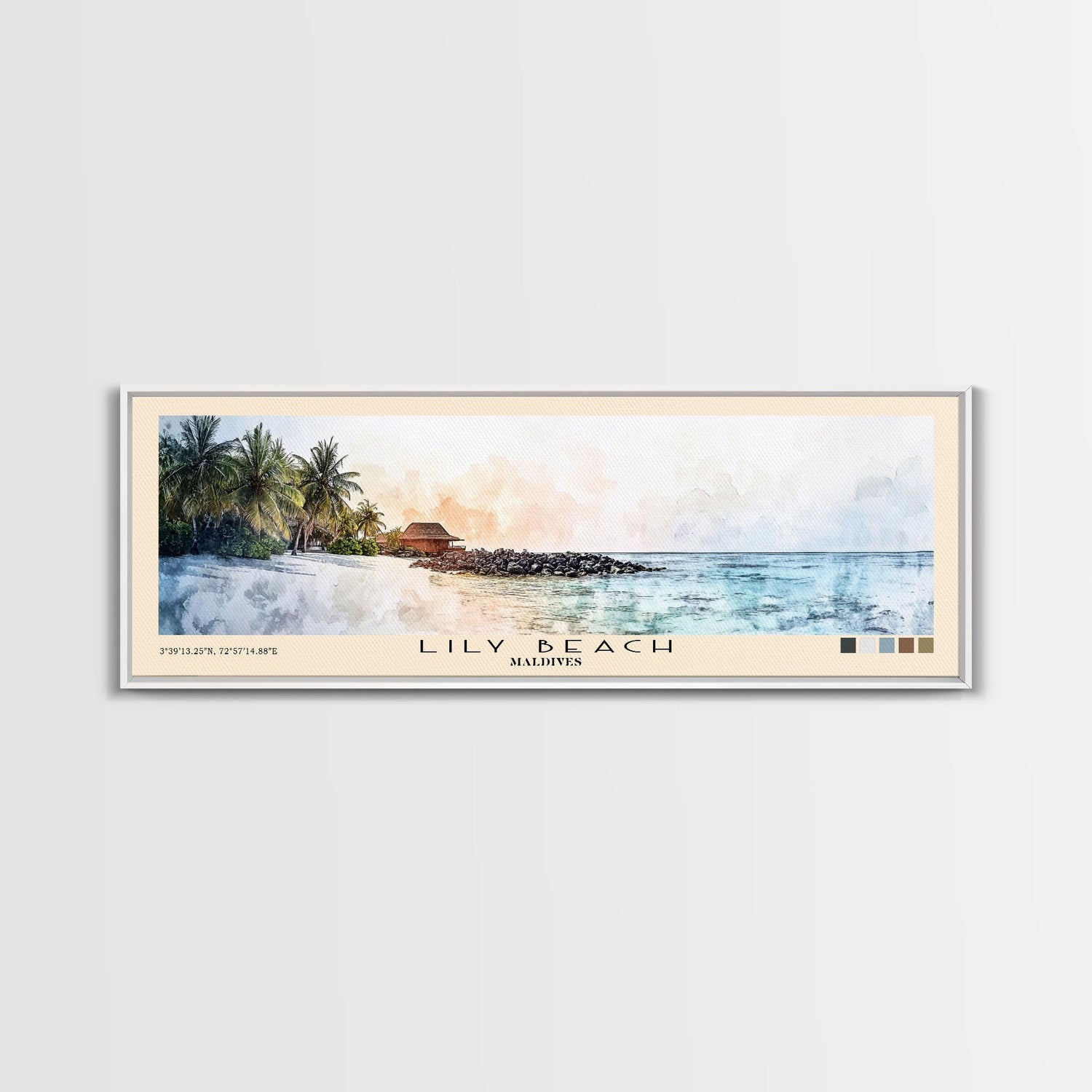 Lily Beach, Maldives Watercolor Beach Print, Vacation Gift, Maldives Wall Art, Beach Painting, Beach Decor, Beach Painting - 10x30 Inches / No Frame - Stretched Canvas Only is backordered and will ship as soon as it is back in stock.