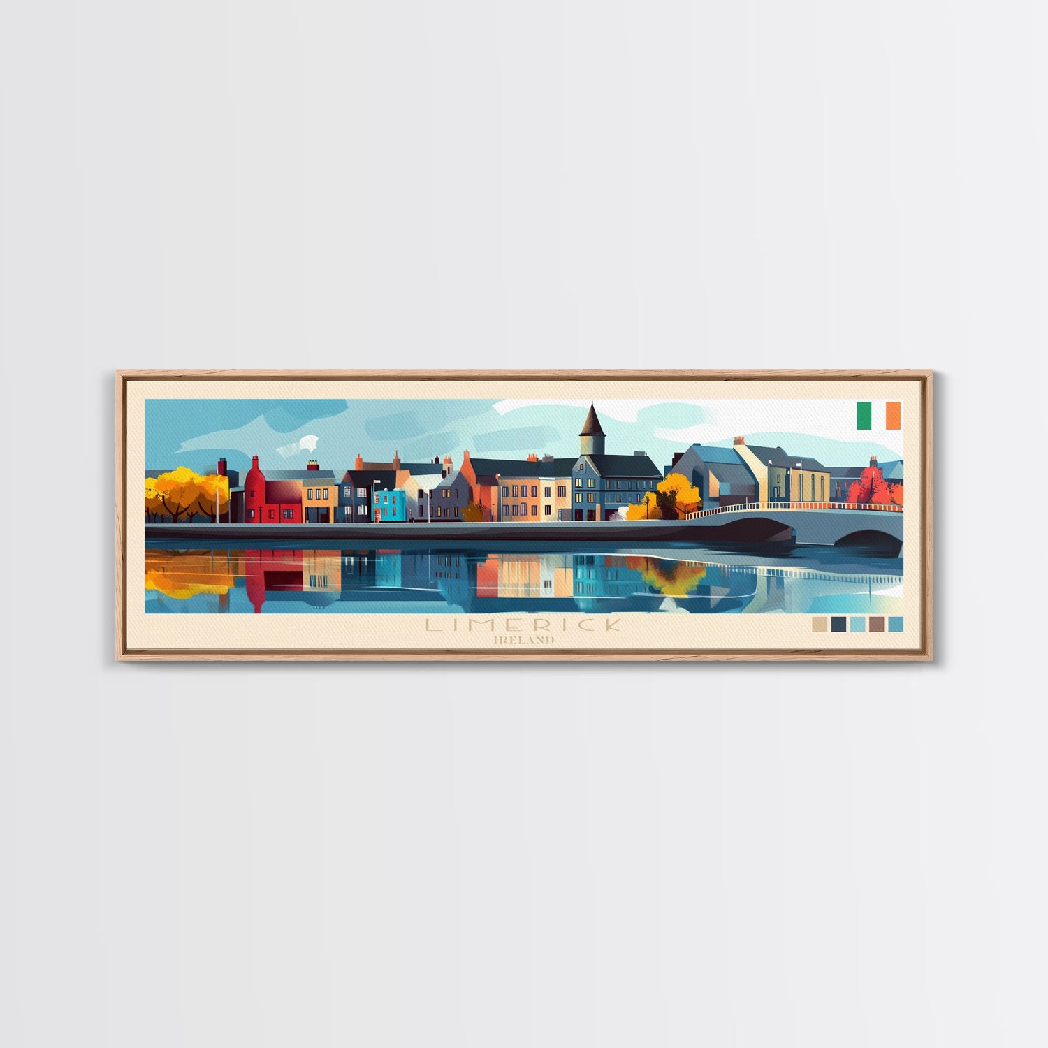 Limerick, Ireland Panoramic Travel Poster Canvas Print, Limerick, Ireland Painting, Ireland Art, Limerick Travel Art, Guest Room Painting