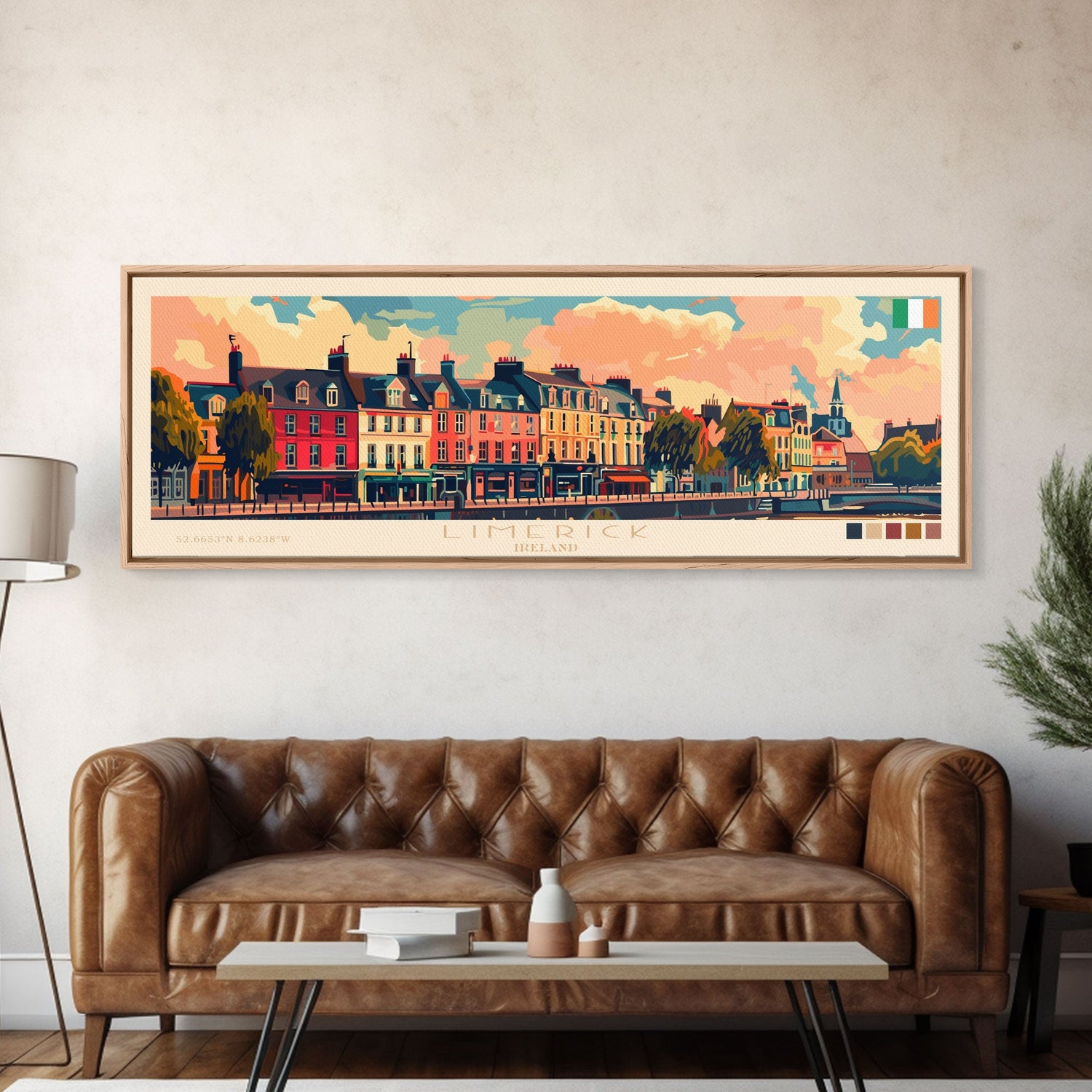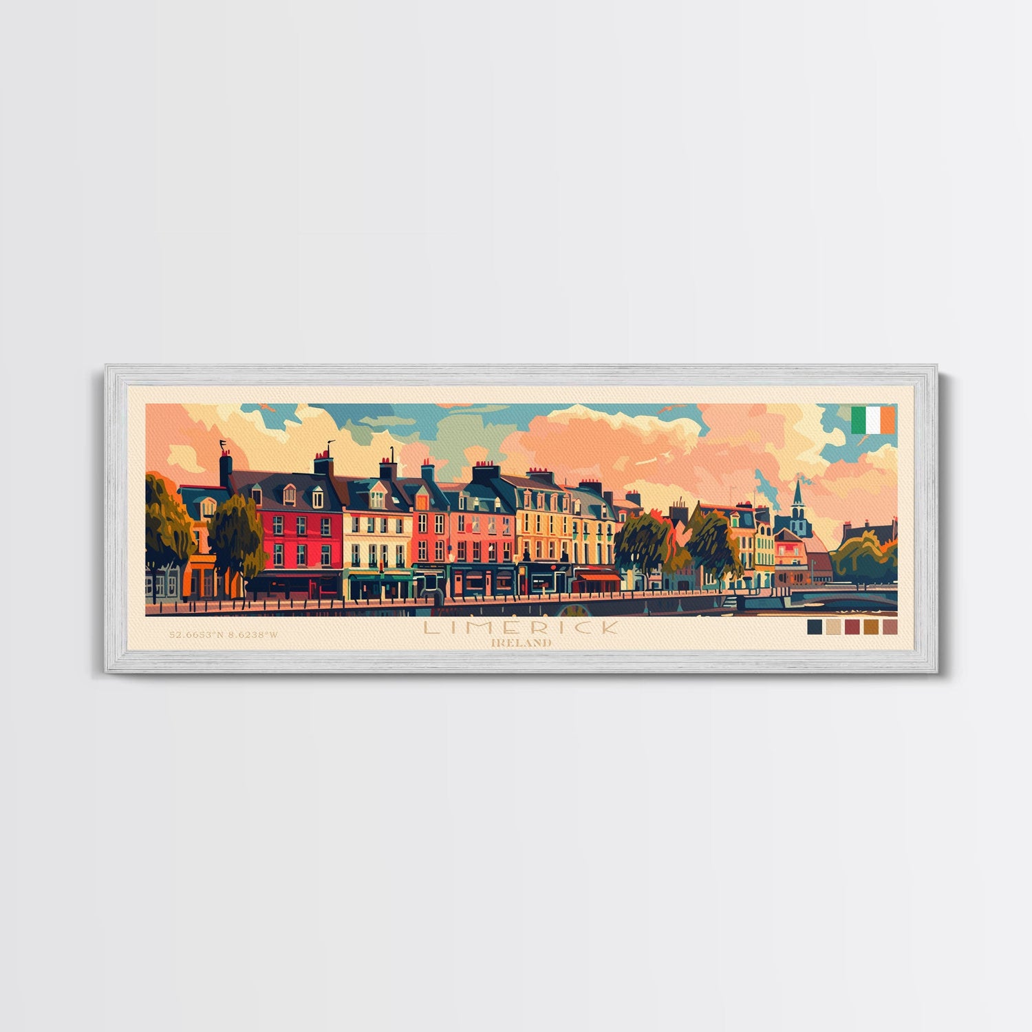 Limerick Ireland Travel Print Wall Art, Panoramic City Art, Travel Art, Wall Decor, Vacation Gift, Framed Canvas Print Or Metal Art