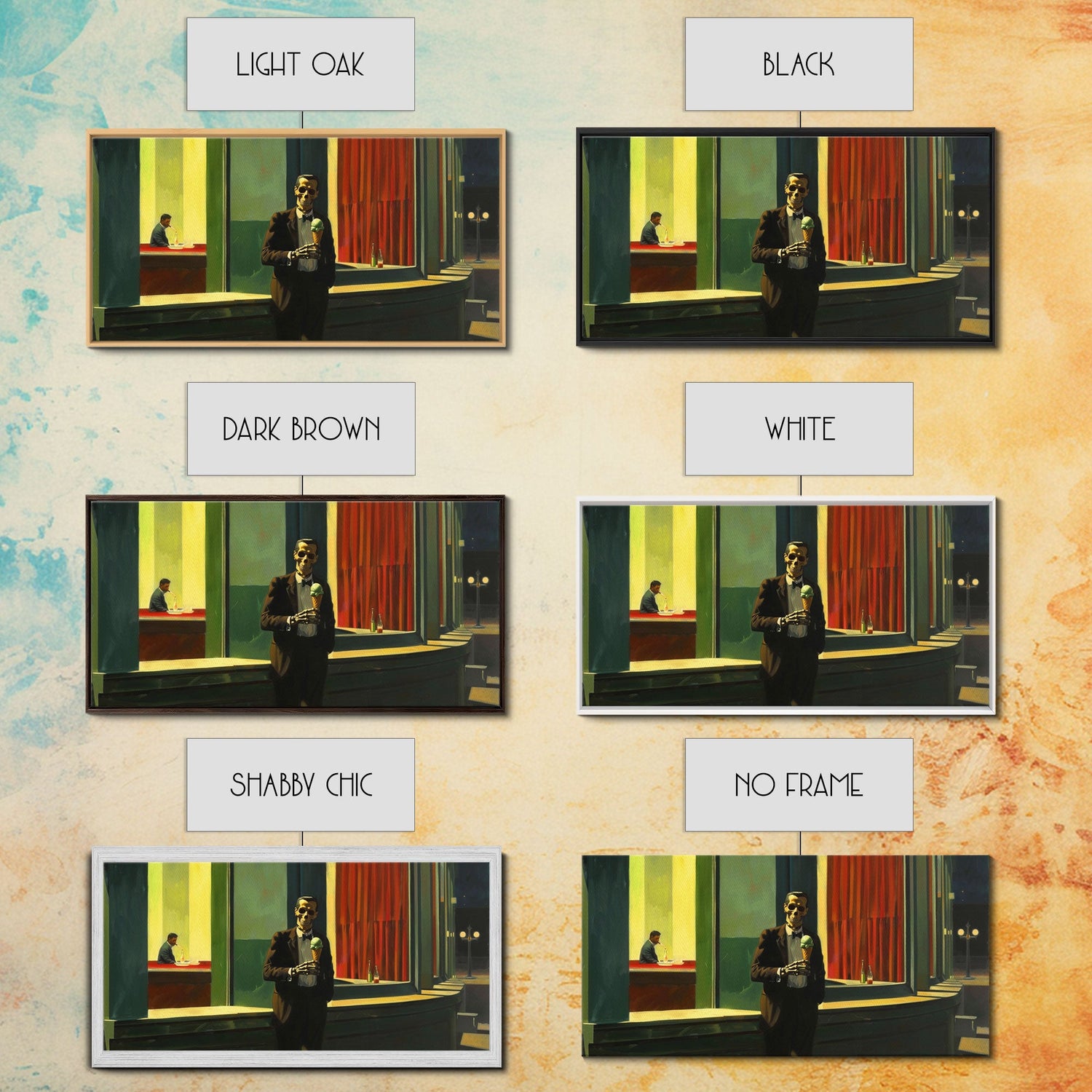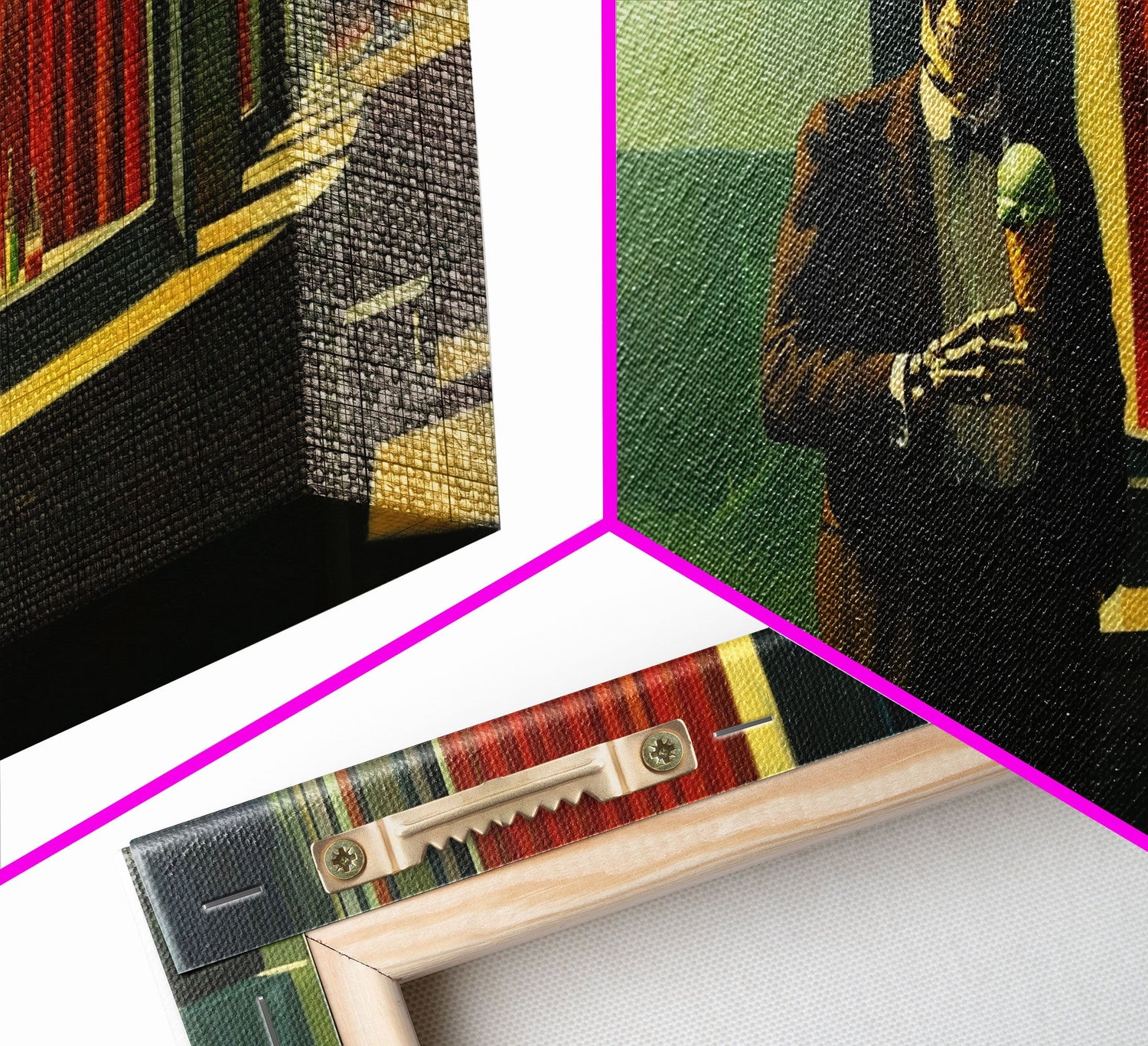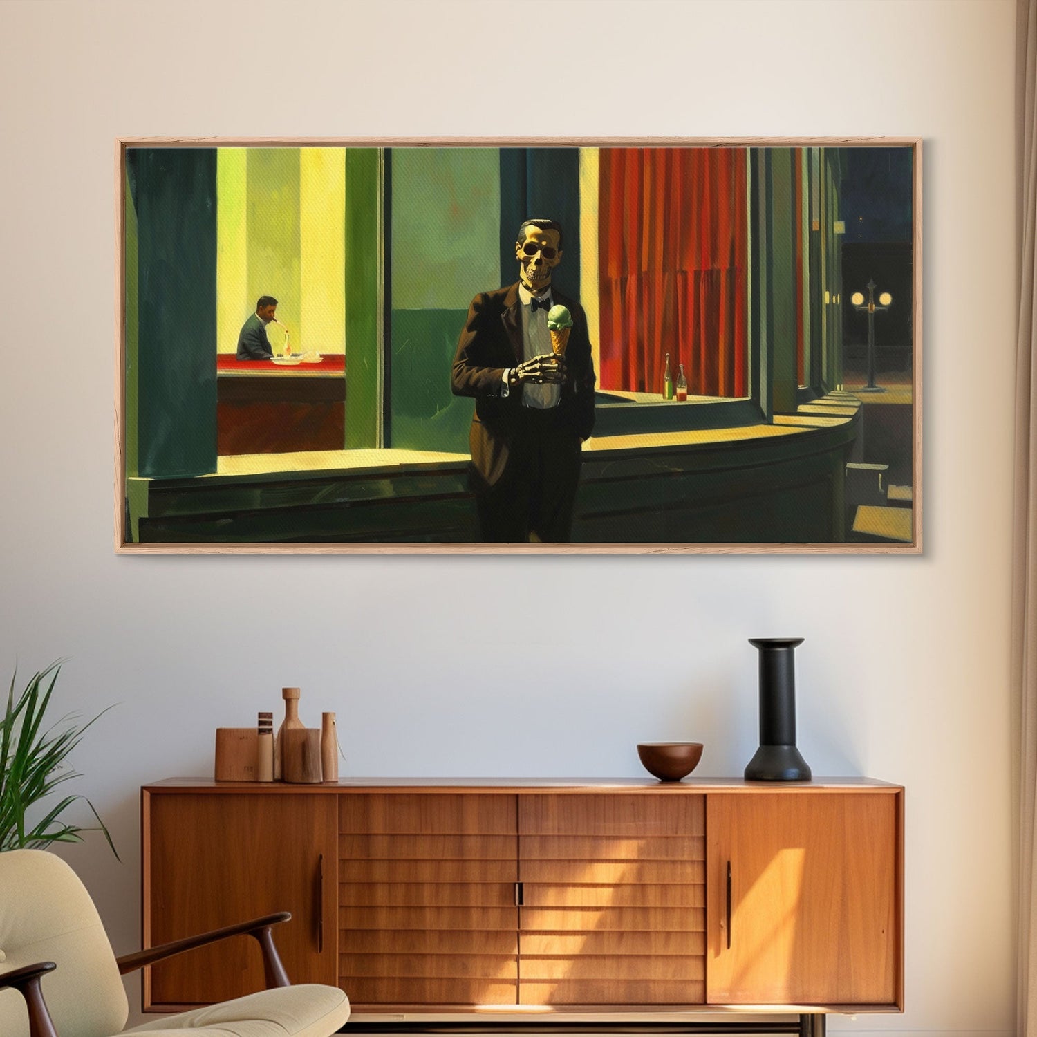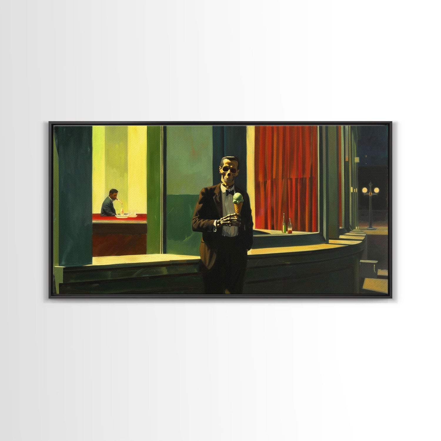 Liminal Halloween Art, Skeleton Having an Ice Cream Cone, Framed Canvas Print, Halloween Decor