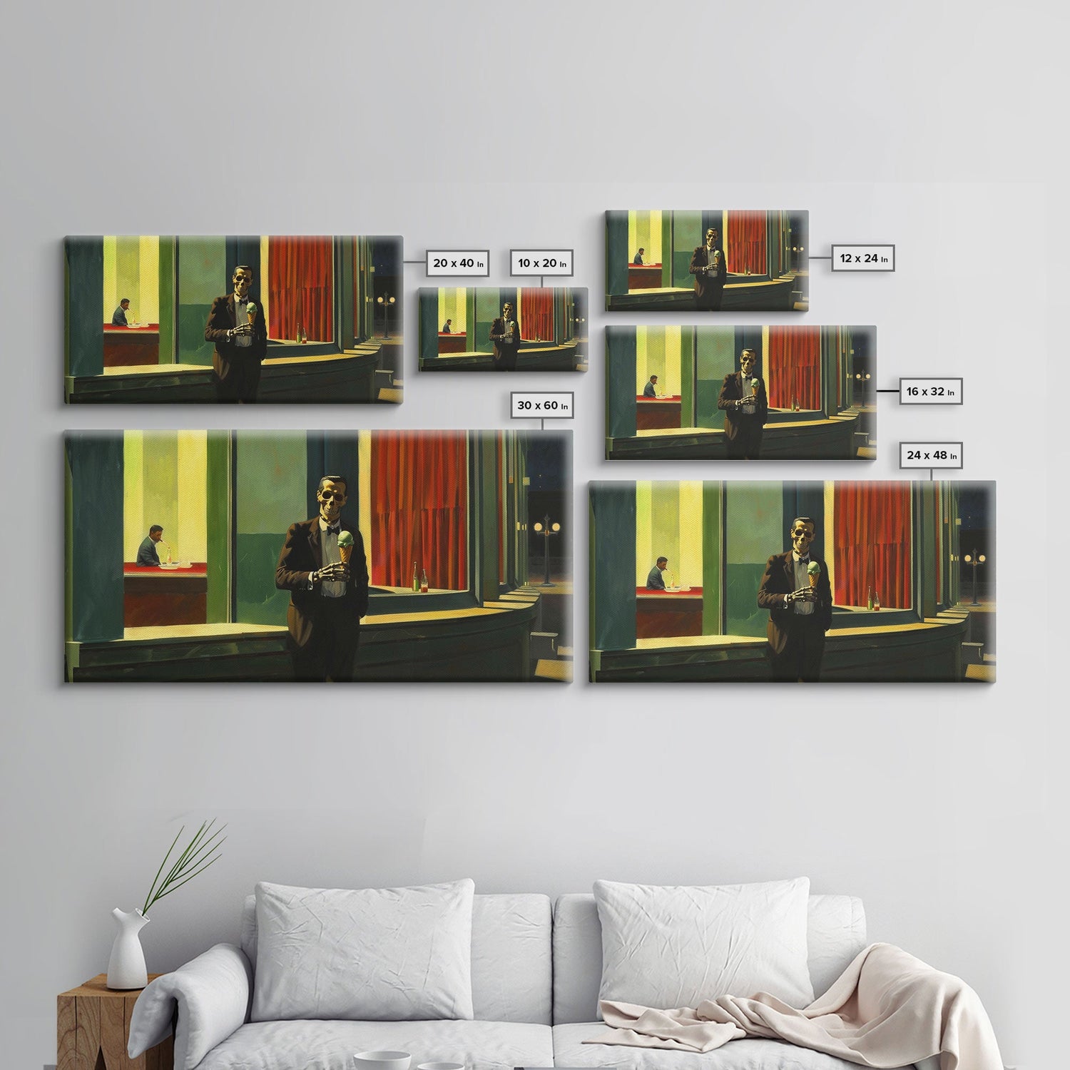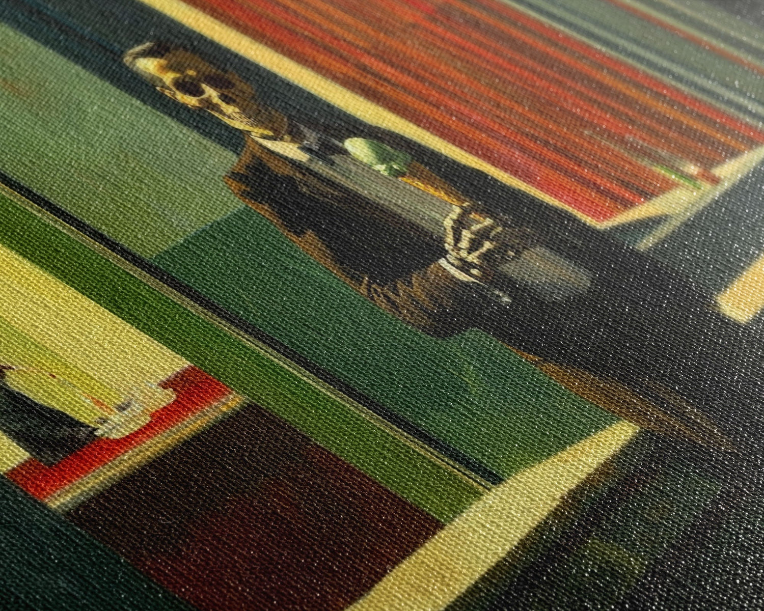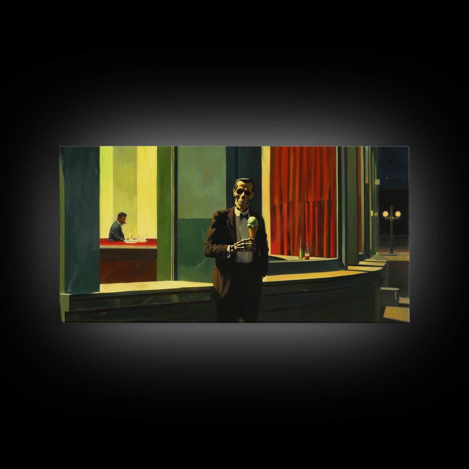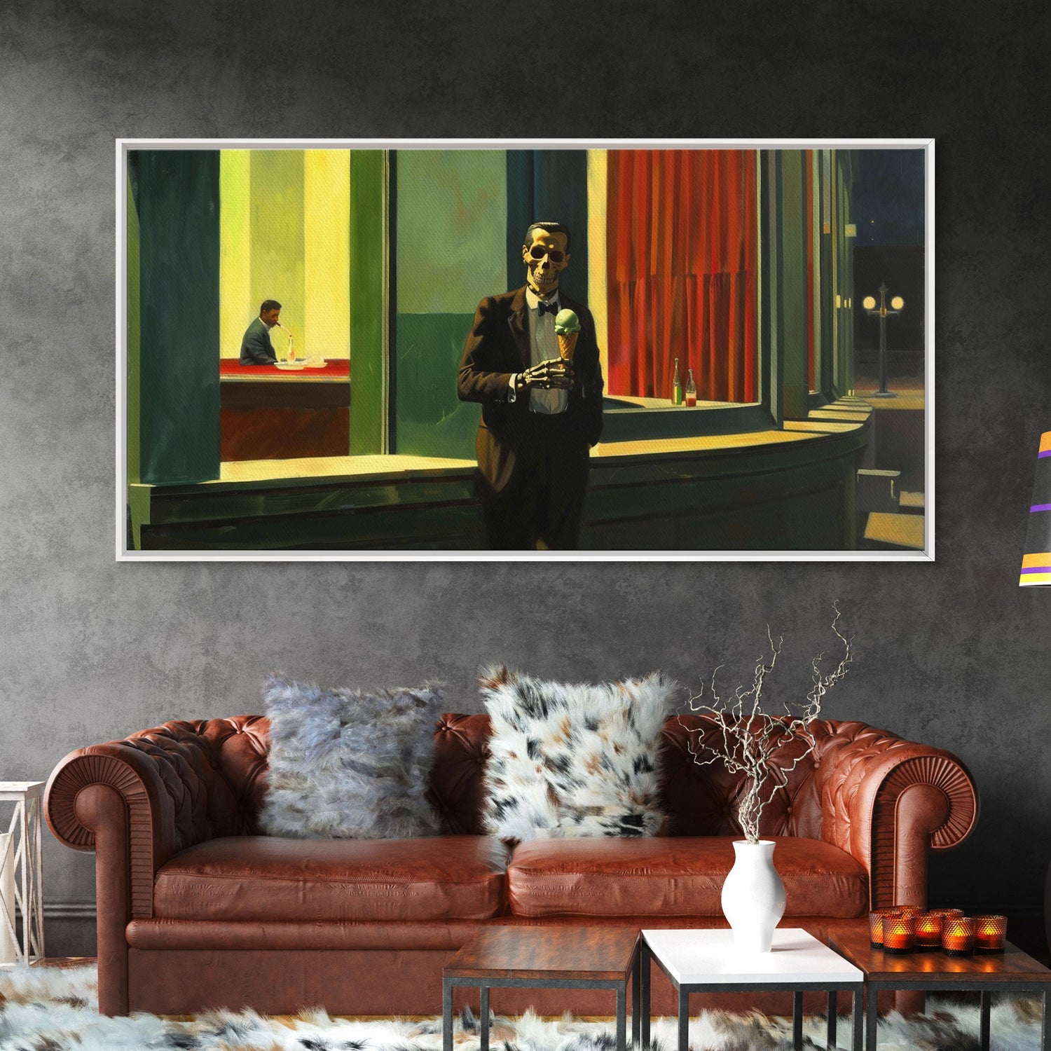 Liminal Halloween Art, Skeleton Having an Ice Cream Cone, Framed Canvas Print, Halloween Decor - 10x20 Inches / No Frame - Stretched Canvas Only is backordered and will ship as soon as it is back in stock.