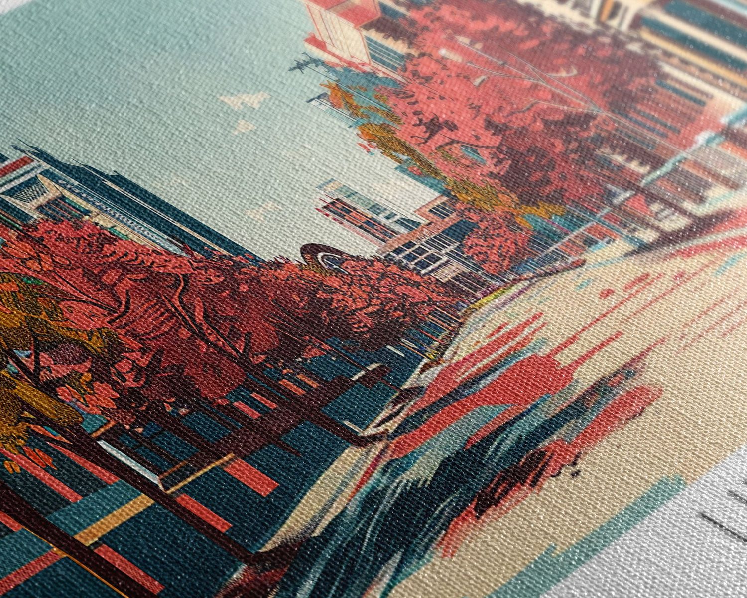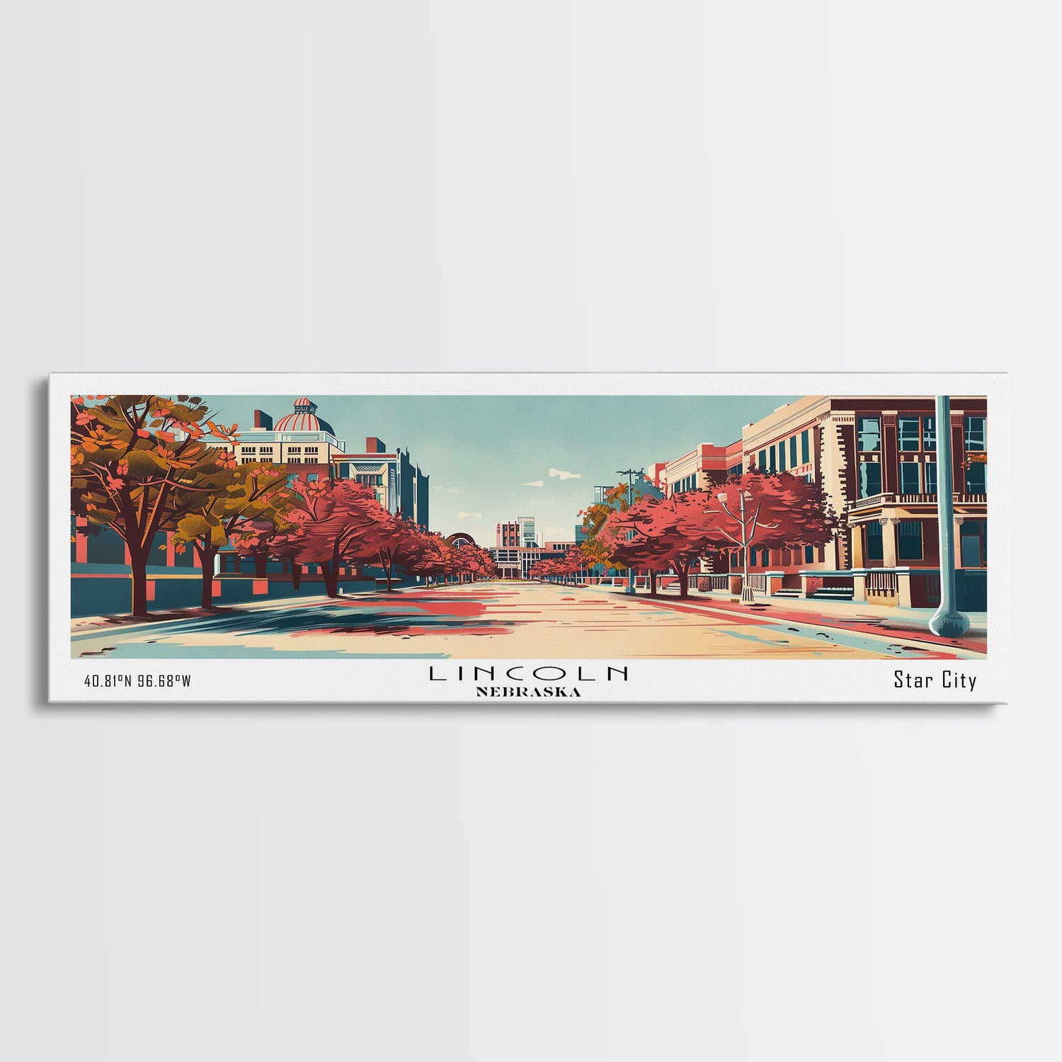 Lincoln Nebraska Panoramic Wall Art, Mid Century Modern Framed Canvas Print, Retro Pop Art Travel Poster, Office Decor, Gift Idea