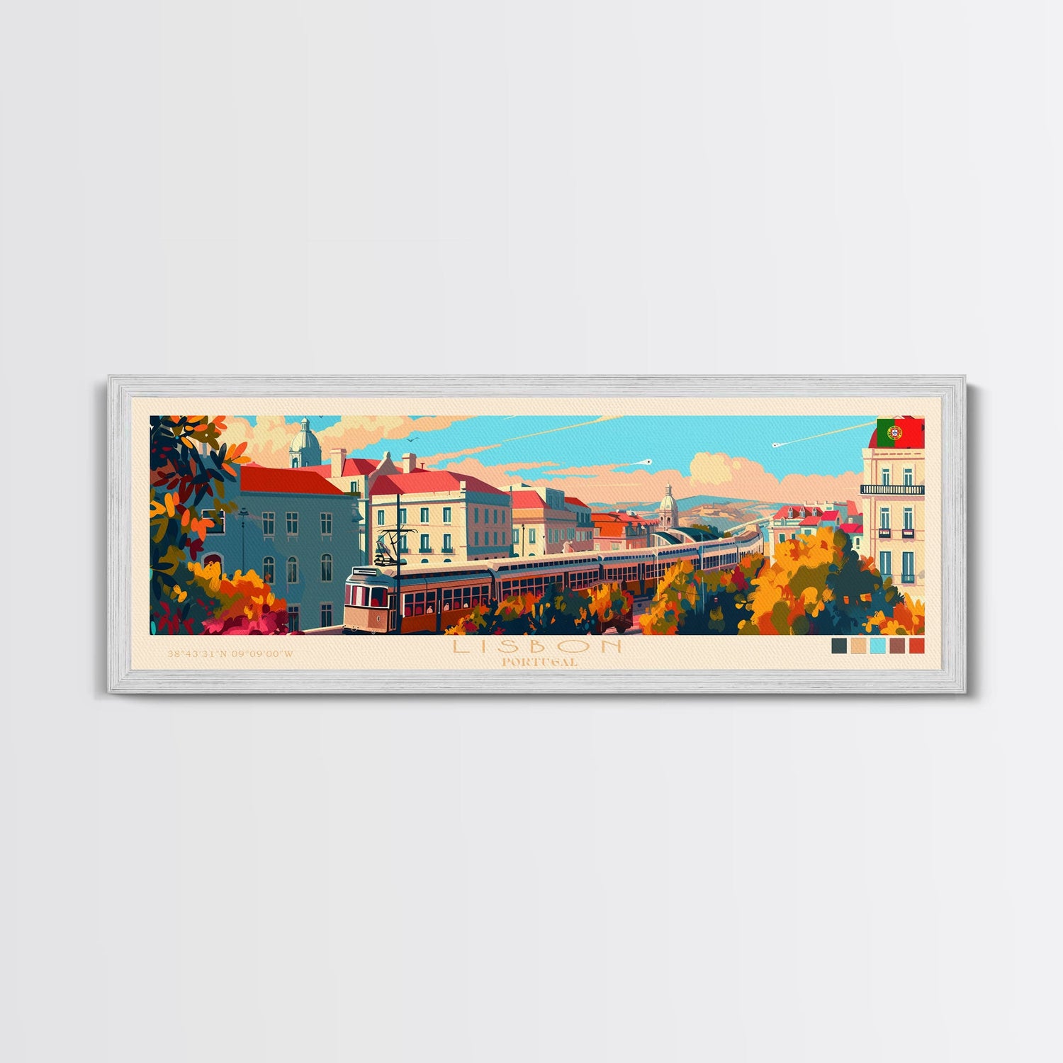 Lisbon Portugal Travel Print Wall Art, Panoramic City Art, Travel Art, Wall Decor, Vacation Gift, Framed Canvas Print Or Metal Art