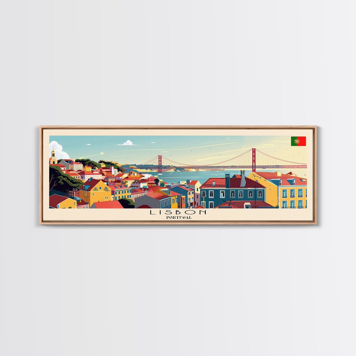 Lisbon Portugal Travel Print Wall Art, Panoramic City Art, Travel Art, Wall Decor, Vacation Gift, Framed Canvas Print Or Metal Art