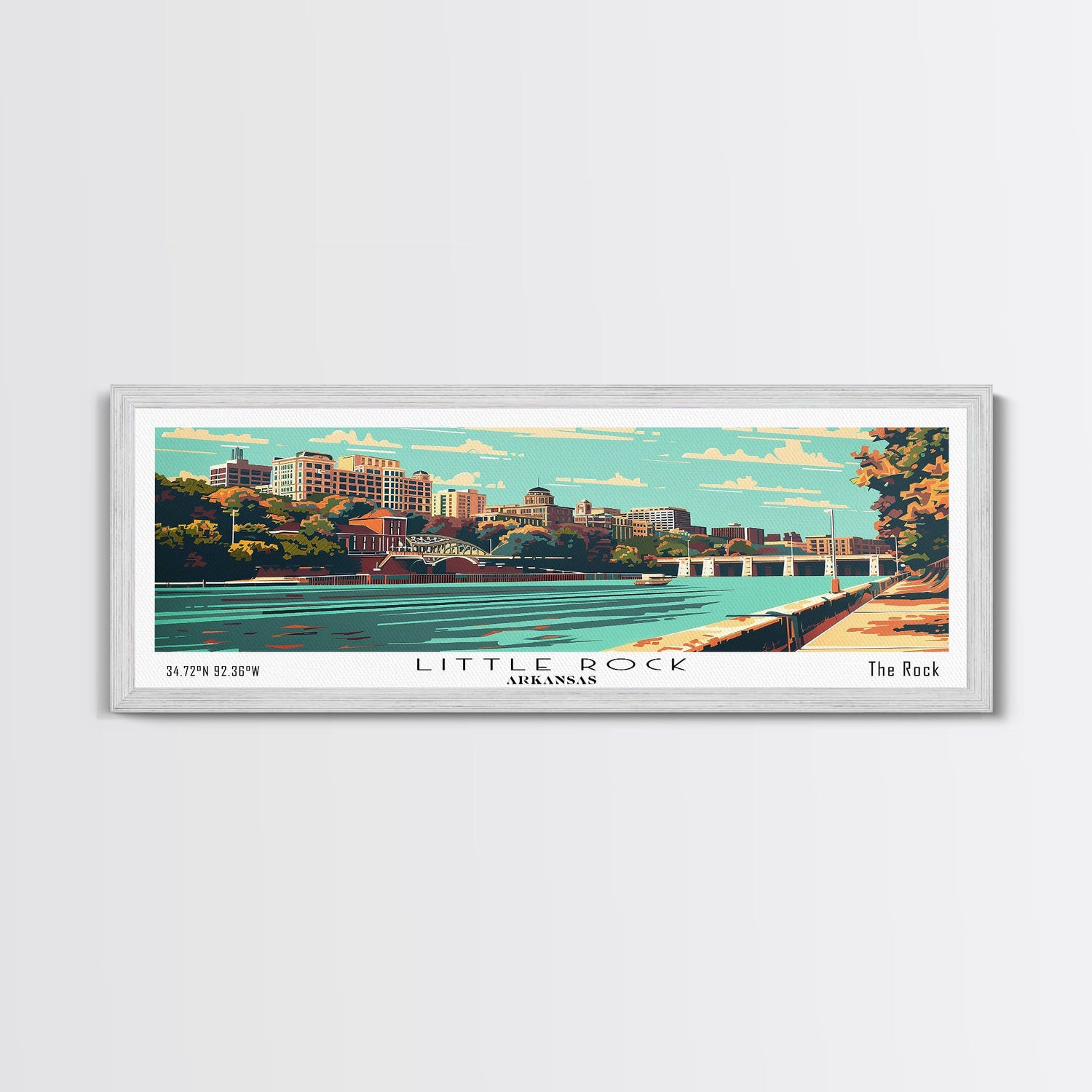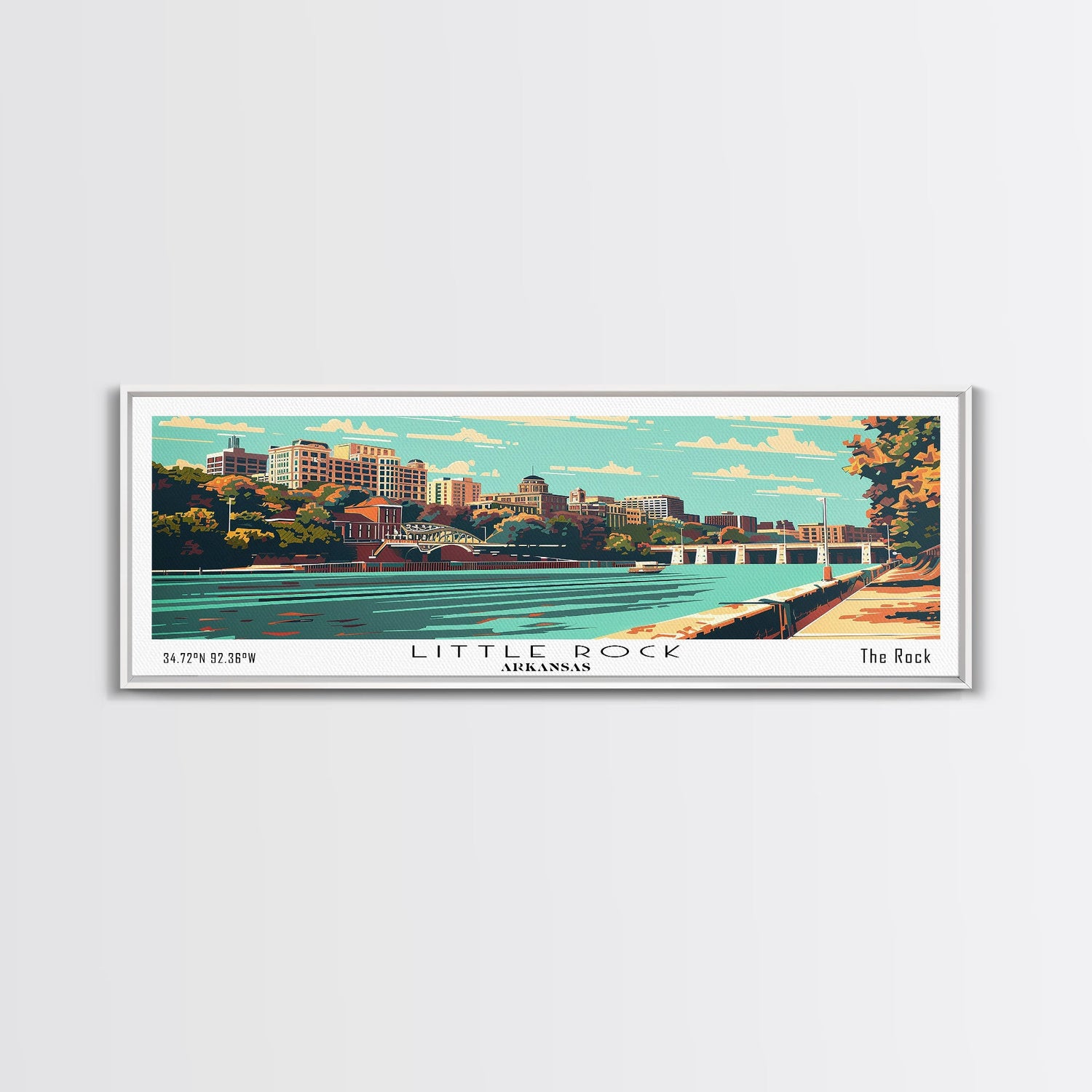 Little Rock Arkansas Panoramic View, Mid Century Modern Framed Canvas Print, Retro Pop Art Travel Poster, Office Decor, Cityscape Art
