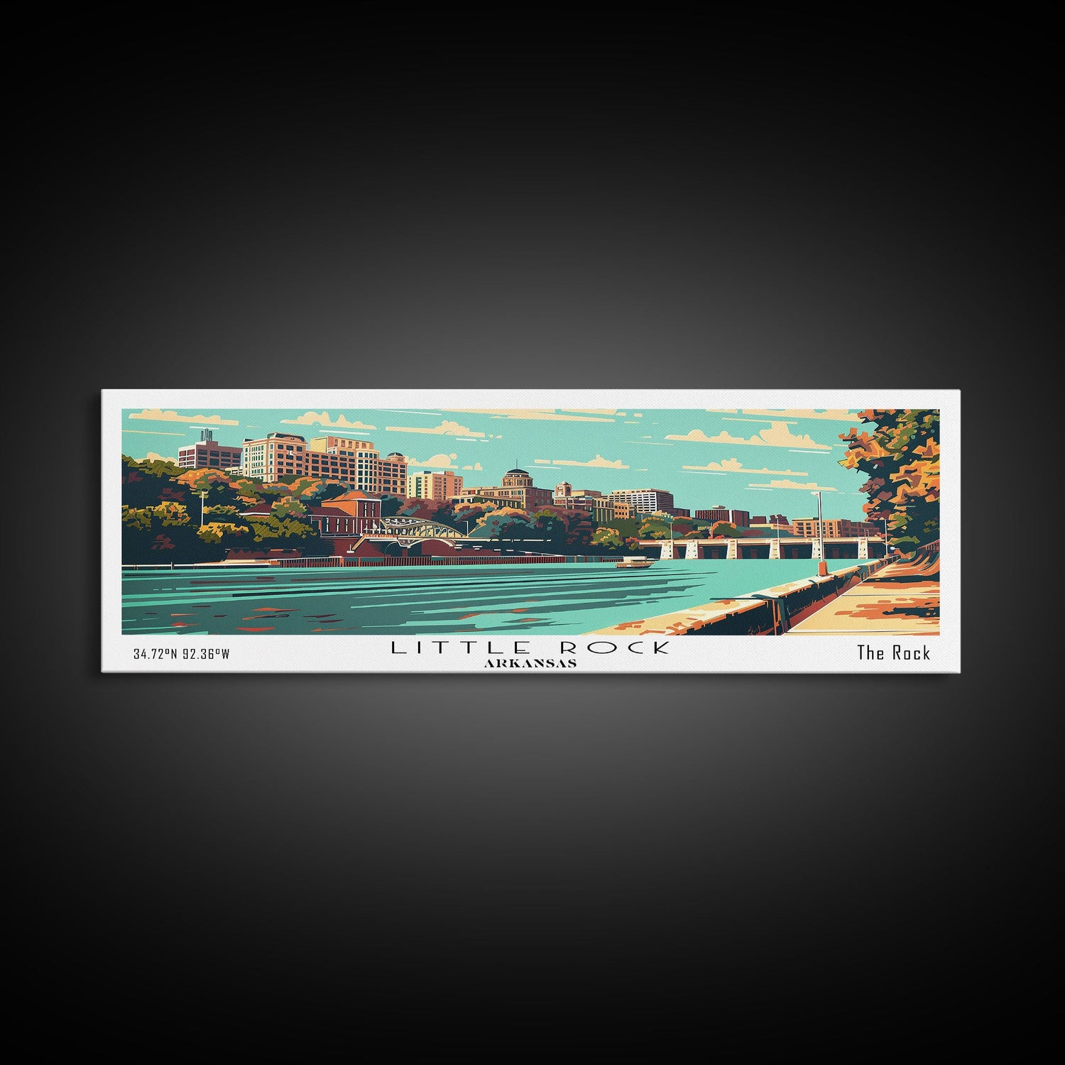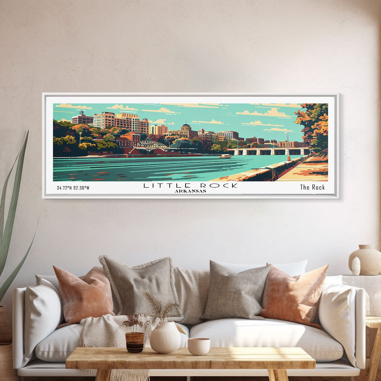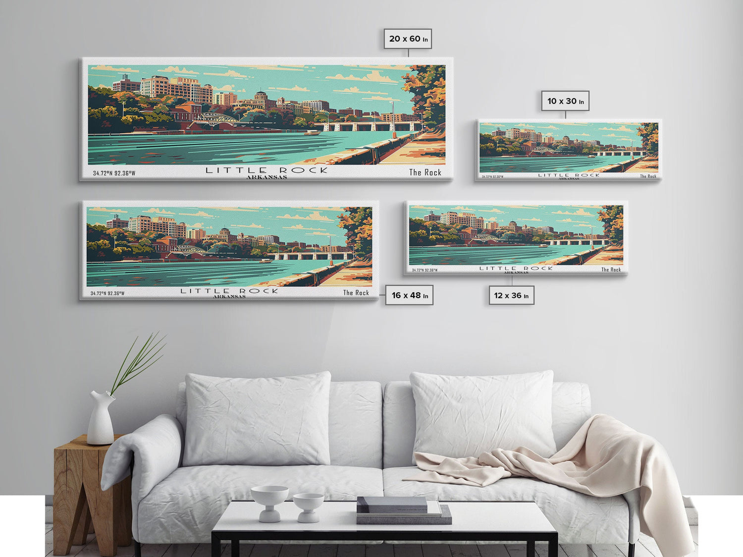 Little Rock Arkansas Panoramic View, Mid Century Modern Framed Canvas Print, Retro Pop Art Travel Poster, Office Decor, Cityscape Art - 10x30 Inches / No Frame - Stretched Canvas Only is backordered and will ship as soon as it is back in stock.
