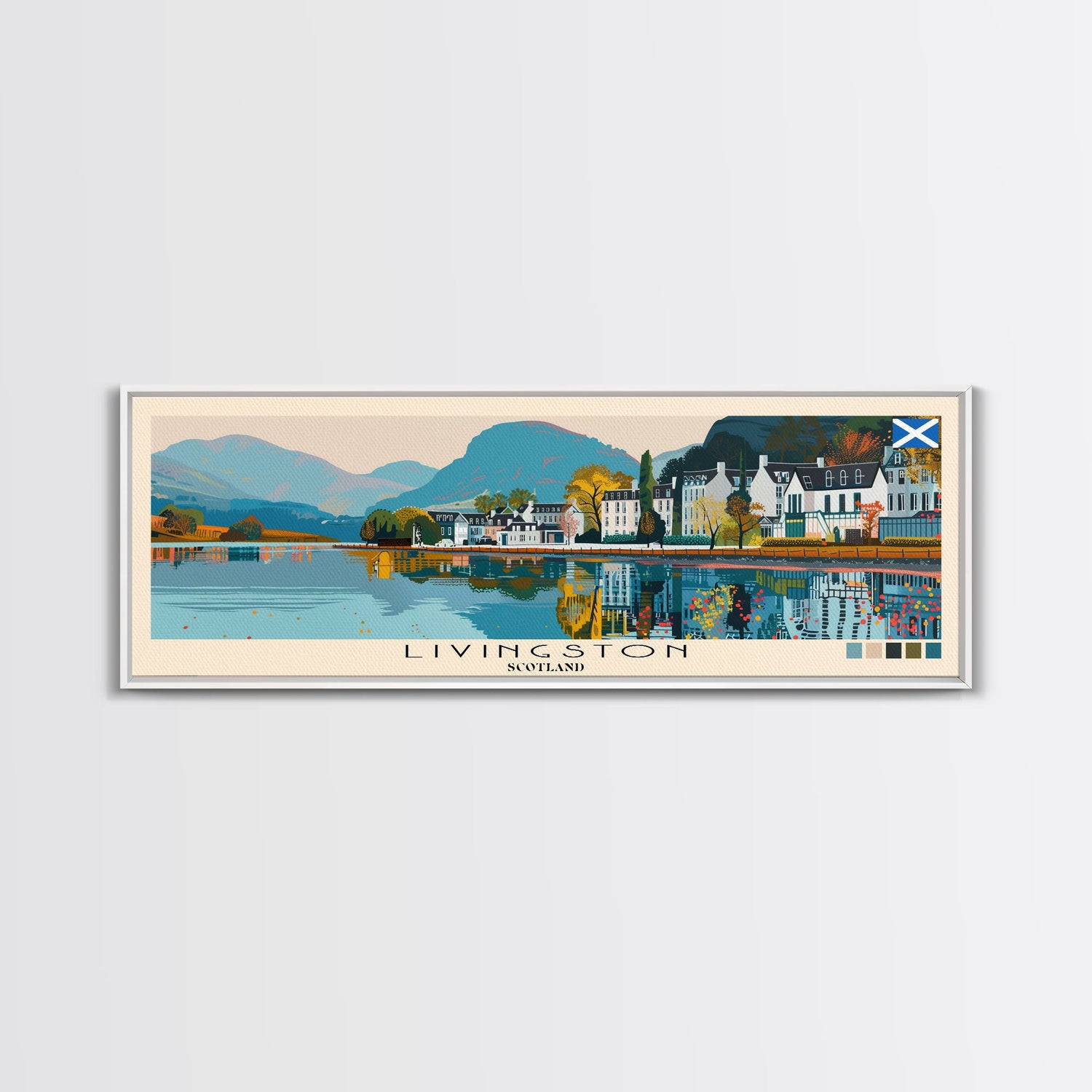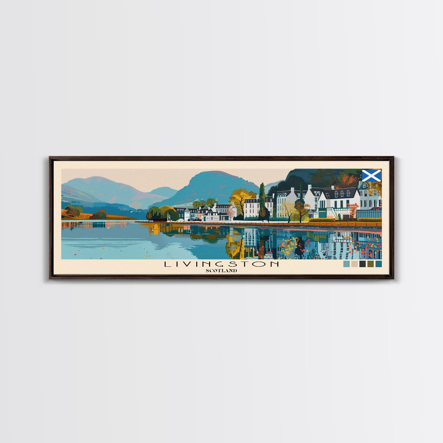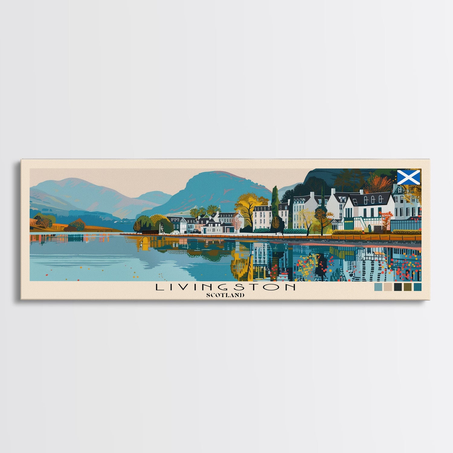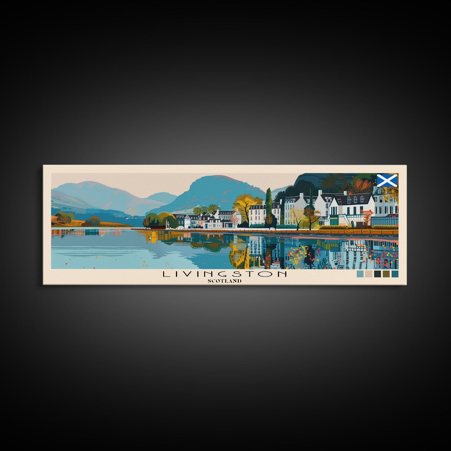Livingston, Scotland Panoramic Canvas Print, Livingston, Scotland Painting, Scotland Art, Livingston Travel Poster, Travel Art, Vacation Gift