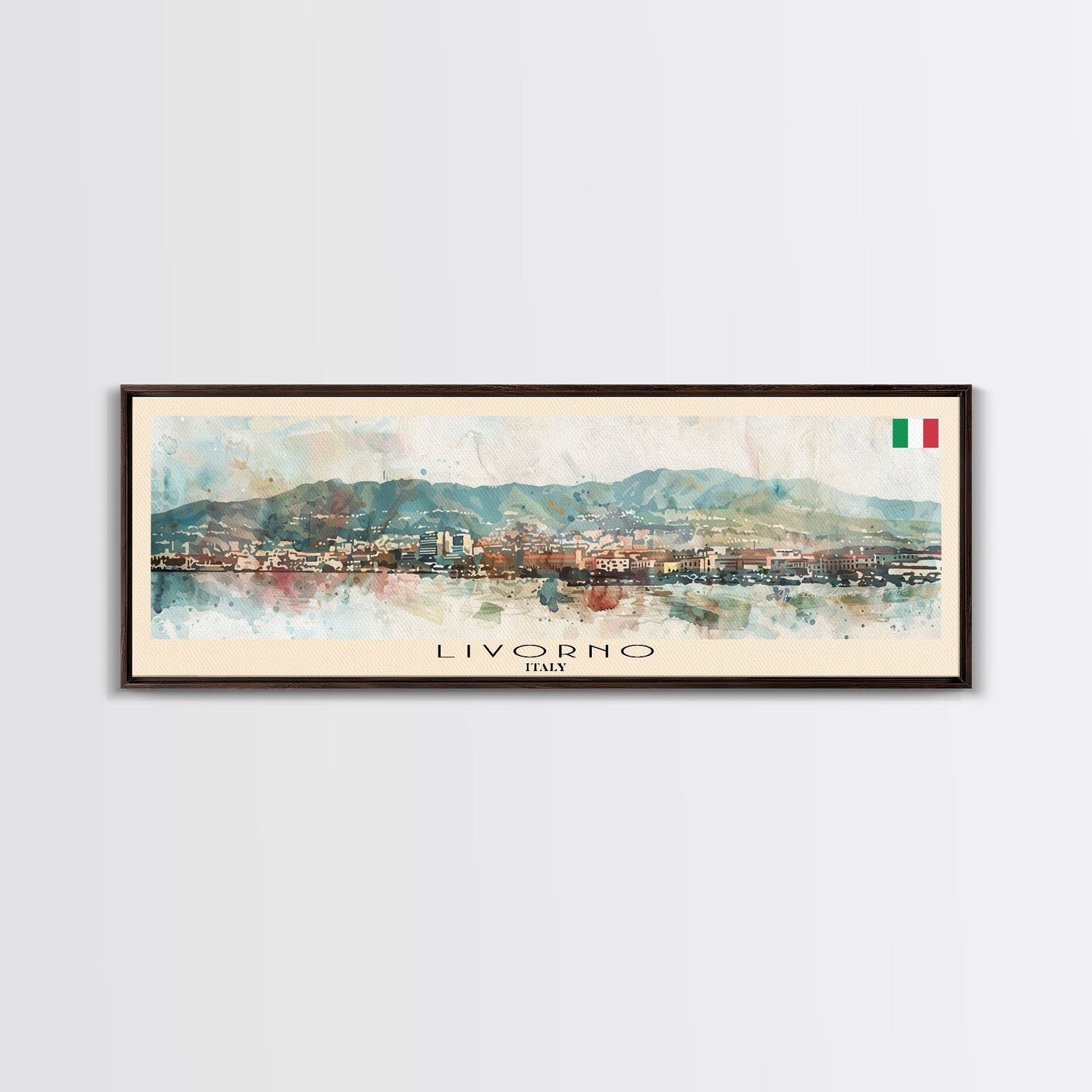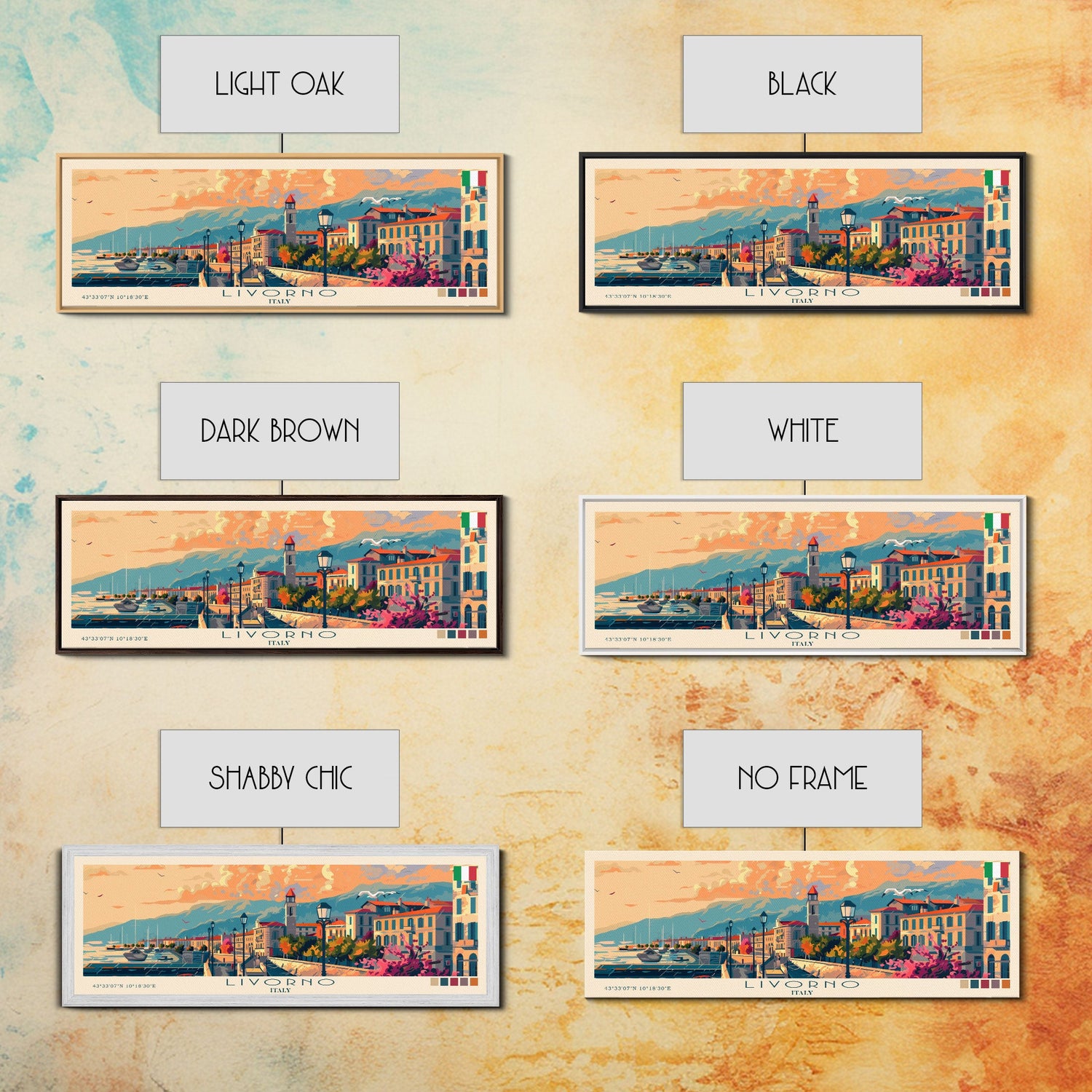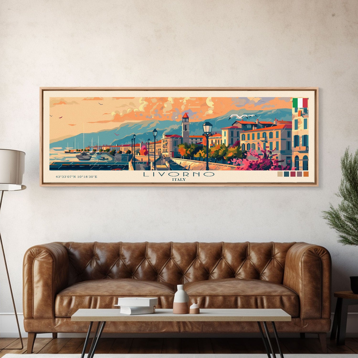 Livorno Italy Panoramic Travel Poster, Framed Canvas Print or Metal Wall Art, Travel Art, Home Decor, Panoramic Painting, Midcentury Art