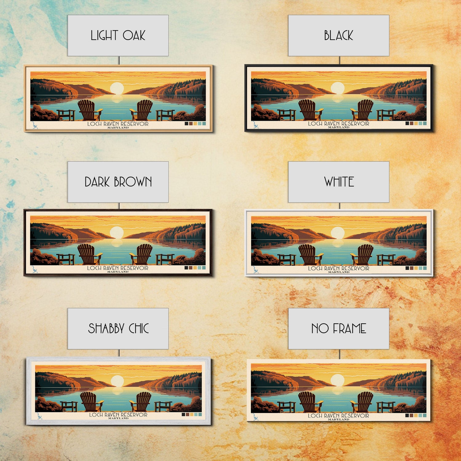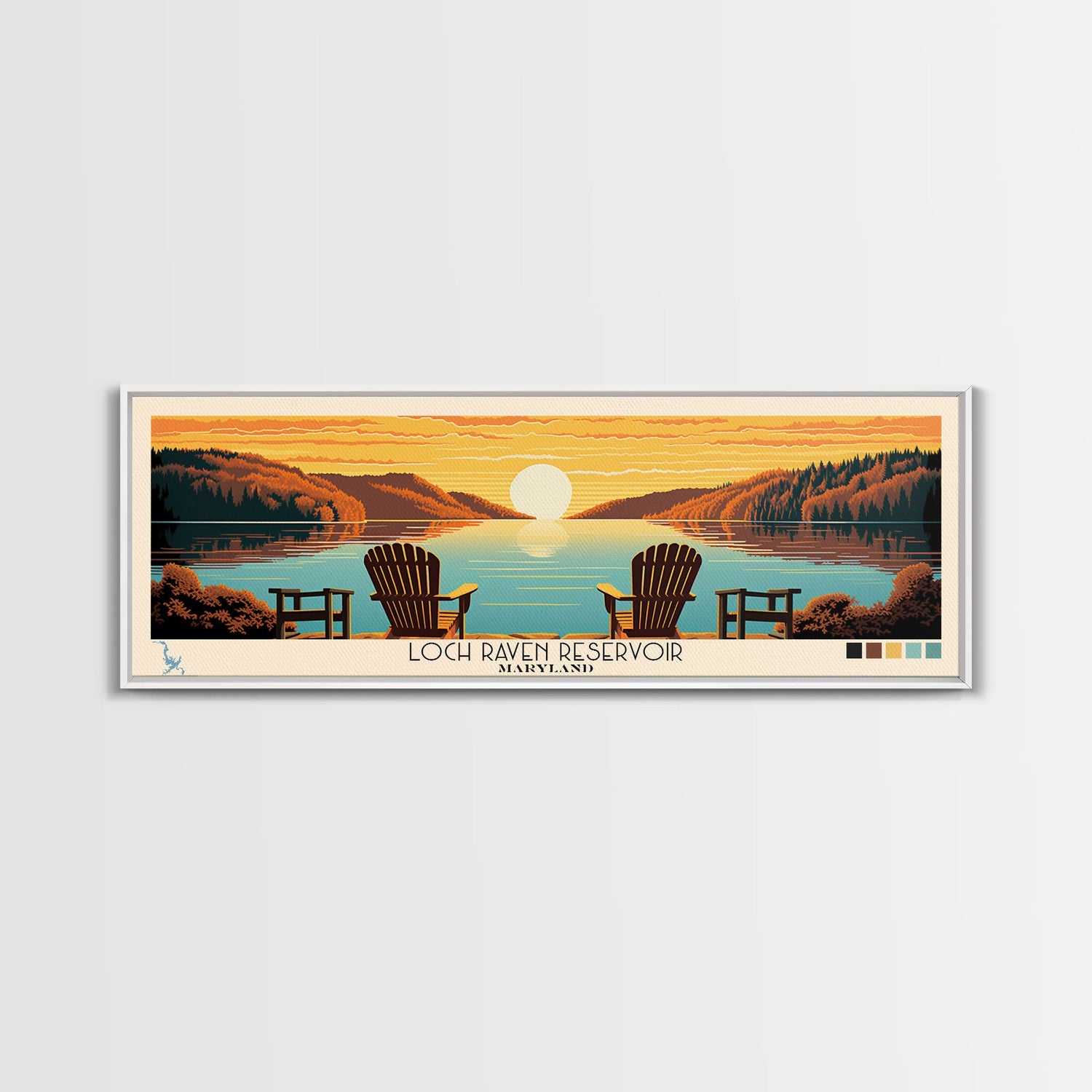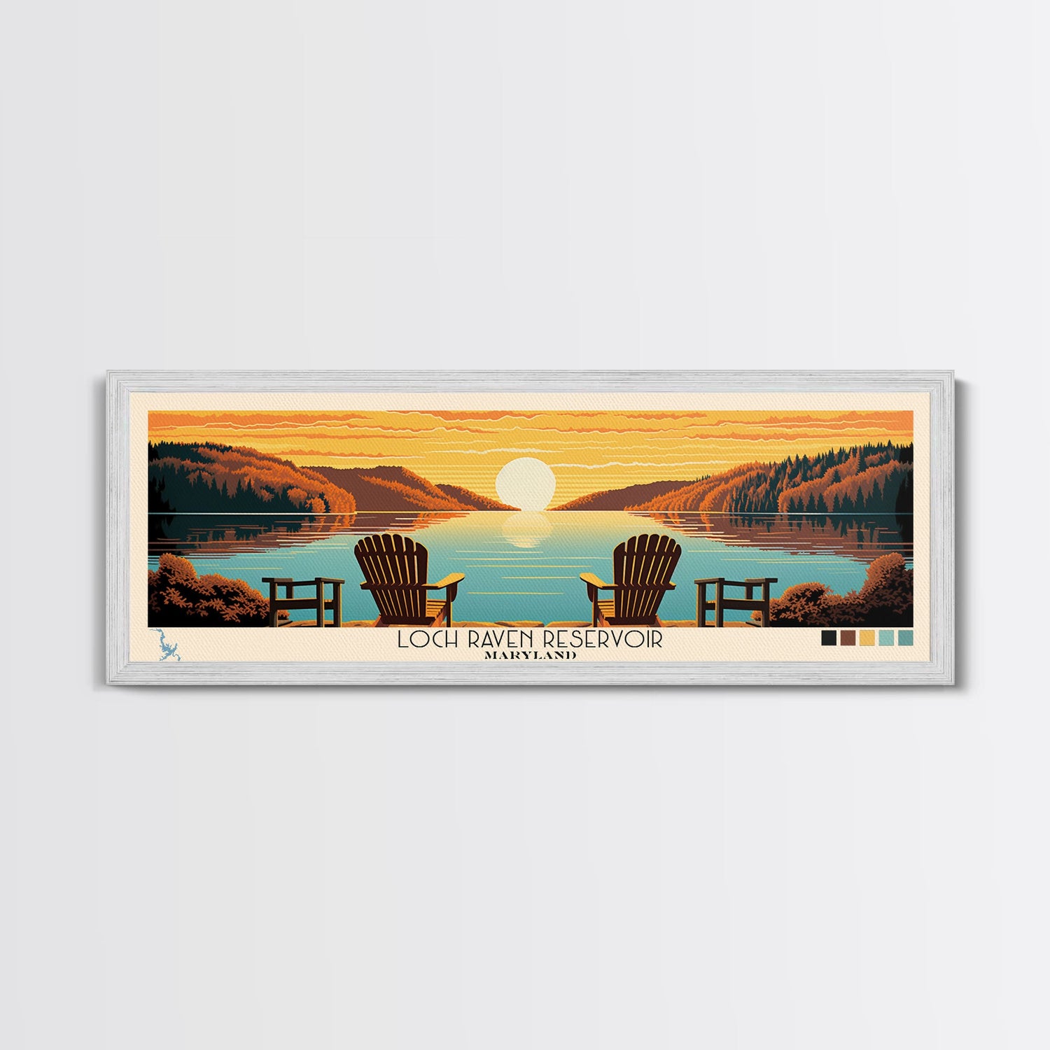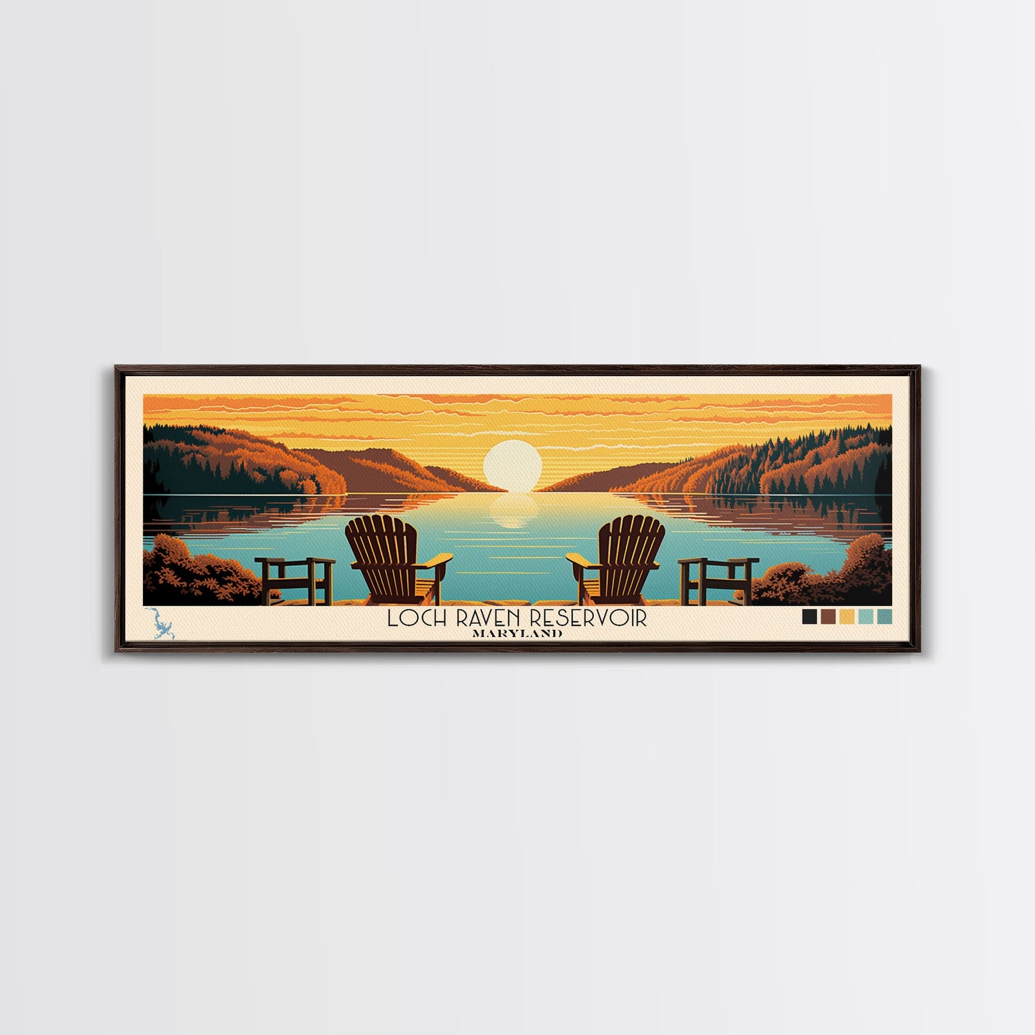 Loch Raven Reservoir, Maryland Panoramic Wall Art Framed Canvas Print, Midcentury Modern, Pop Art, Home Decor, Travel Poster, Living Room Art