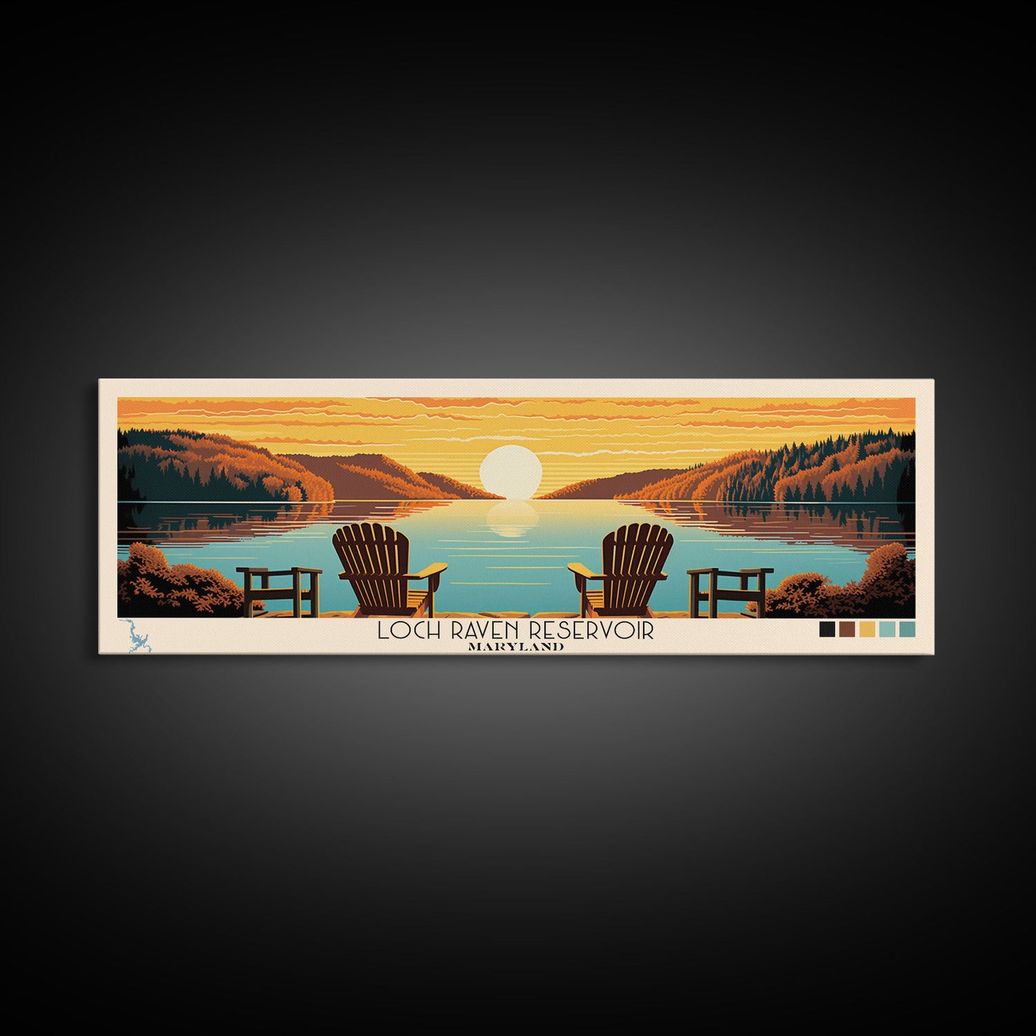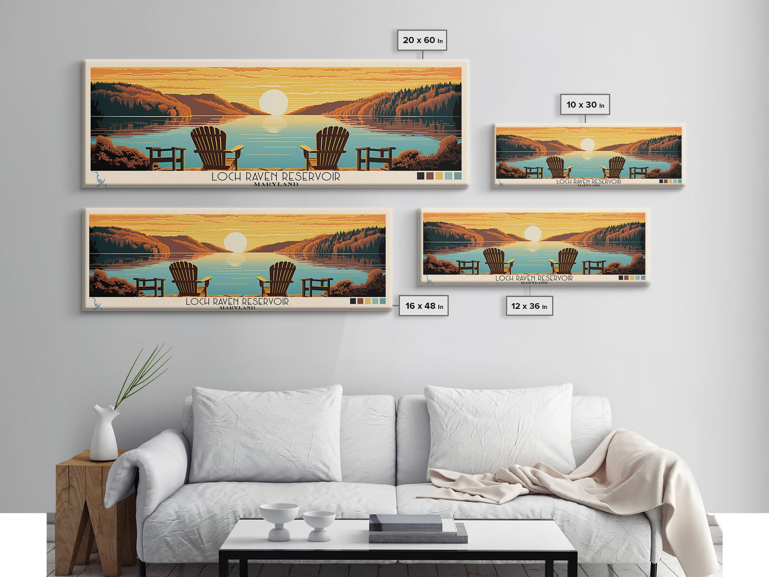 Loch Raven Reservoir, Maryland Panoramic Wall Art Framed Canvas Print, Midcentury Modern, Pop Art, Home Decor, Travel Poster, Living Room Art - 10x30 Inches / No Frame - Stretched Canvas Only is backordered and will ship as soon as it is back in stock.