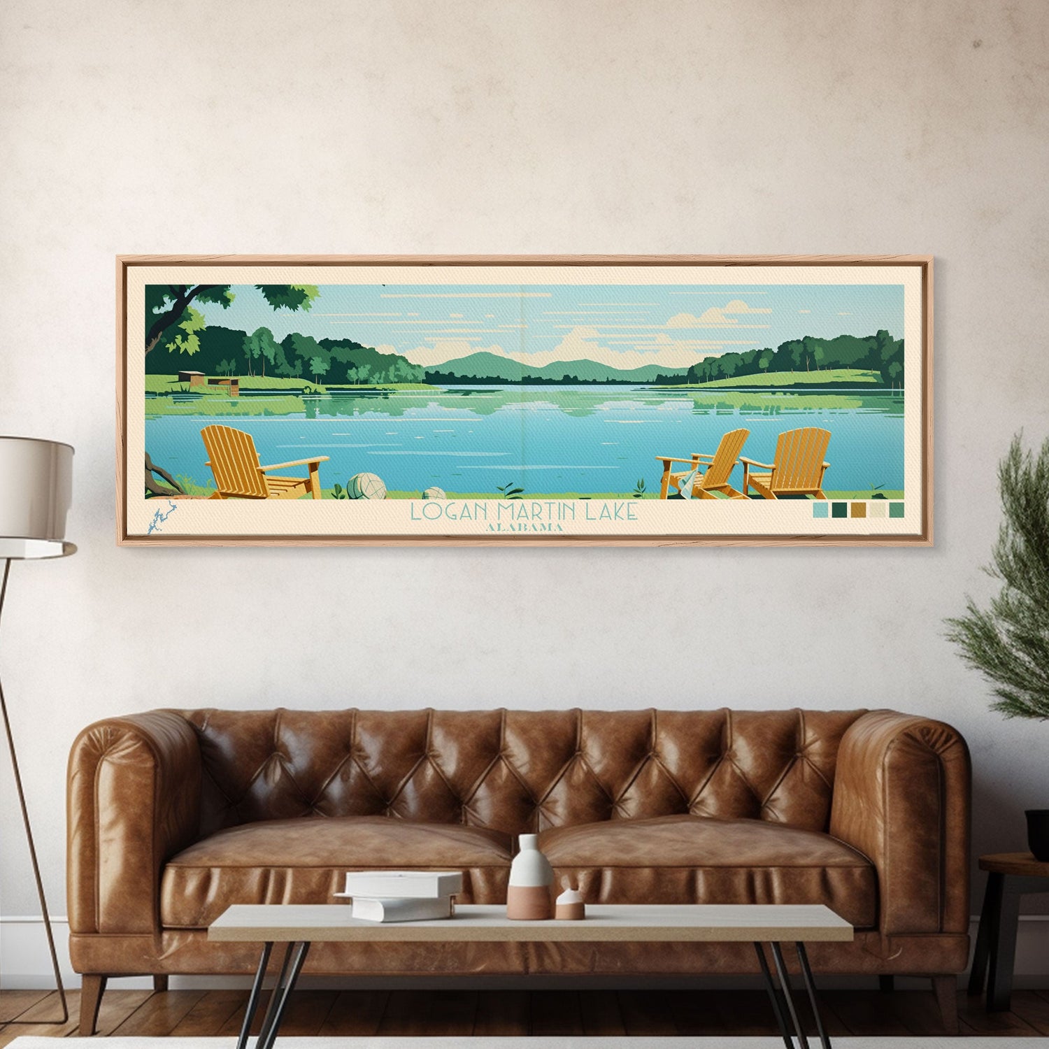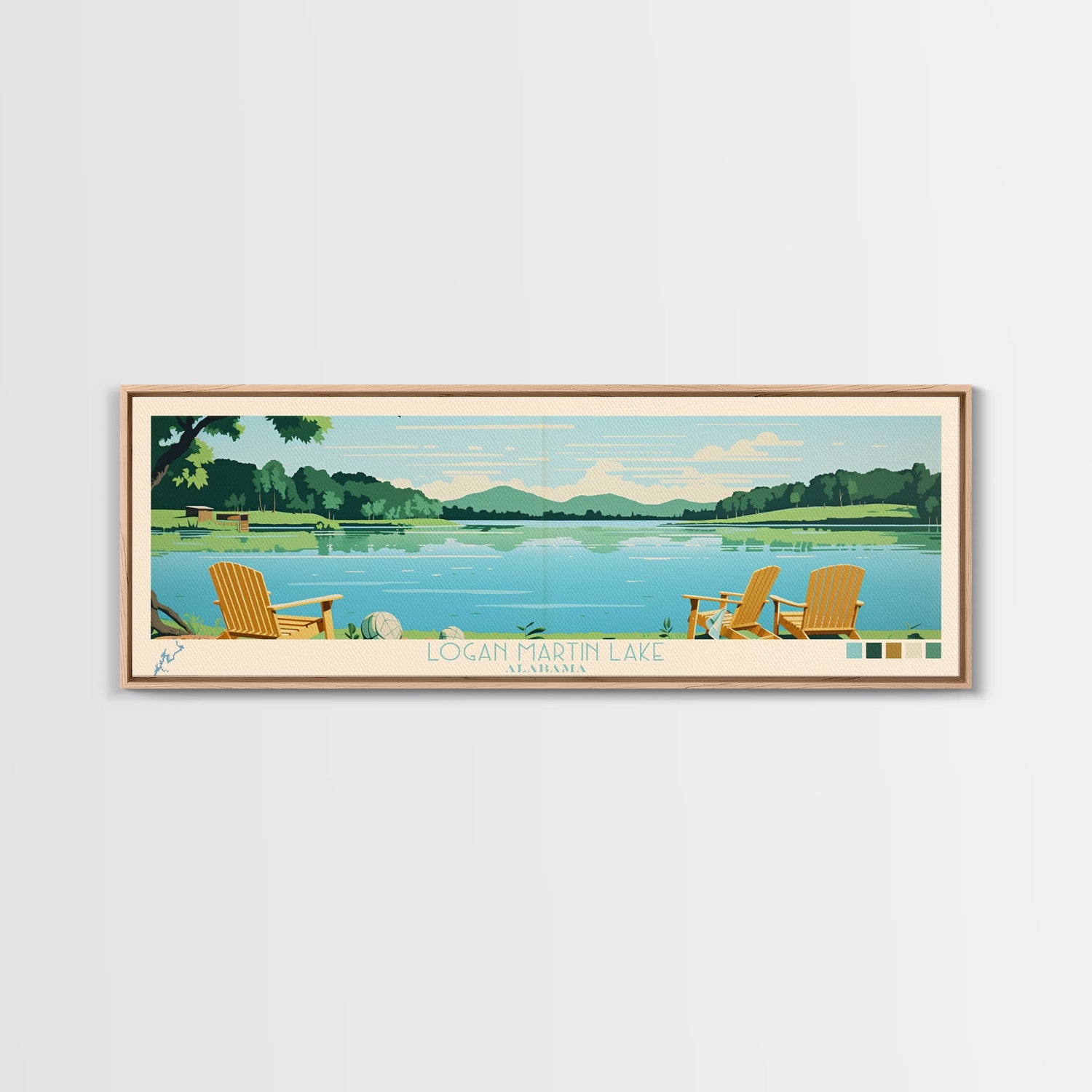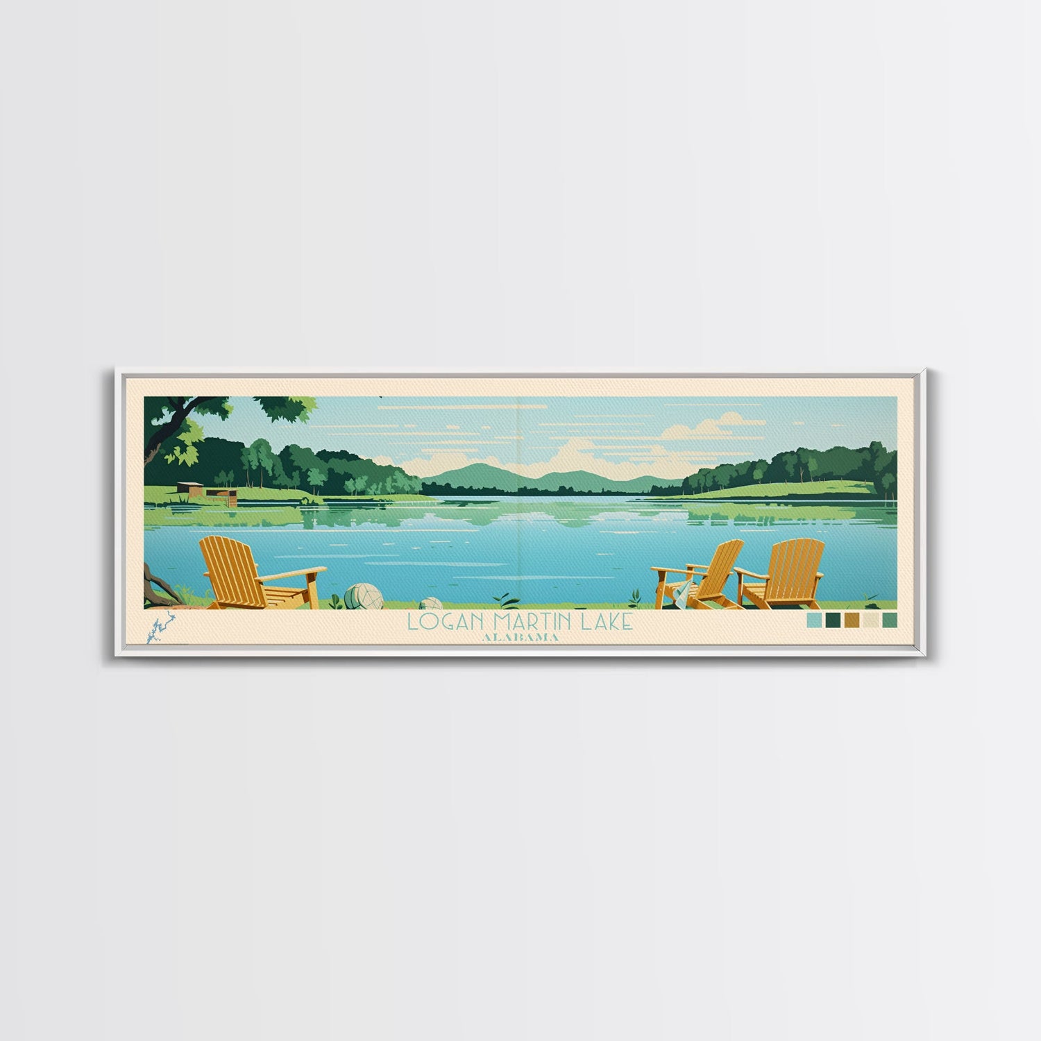 Logan Martin Lake, Alabama Panoramic Wall Art Framed Canvas Print, Midcentury Modern, Pop Art, Home Decor, Travel Poster, Bedroom Art