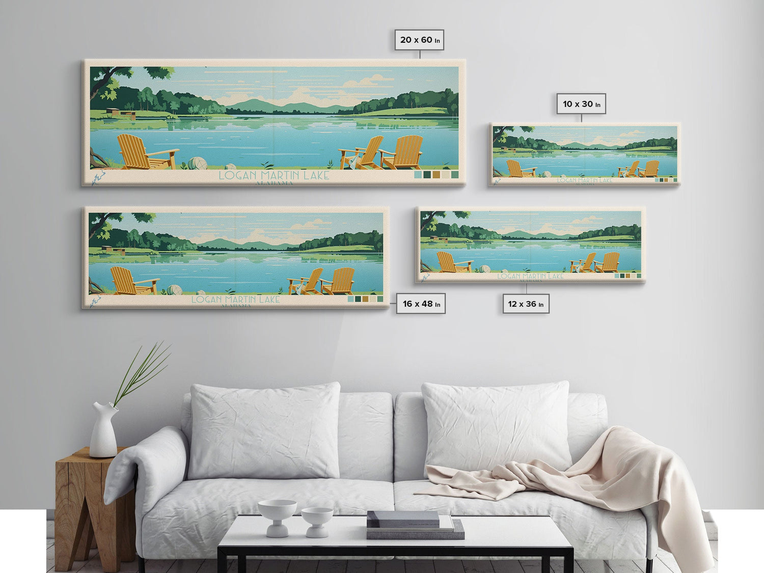 Logan Martin Lake, Alabama Panoramic Wall Art Framed Canvas Print, Midcentury Modern, Pop Art, Home Decor, Travel Poster, Bedroom Art - 10x30 Inches / No Frame - Stretched Canvas Only is backordered and will ship as soon as it is back in stock.