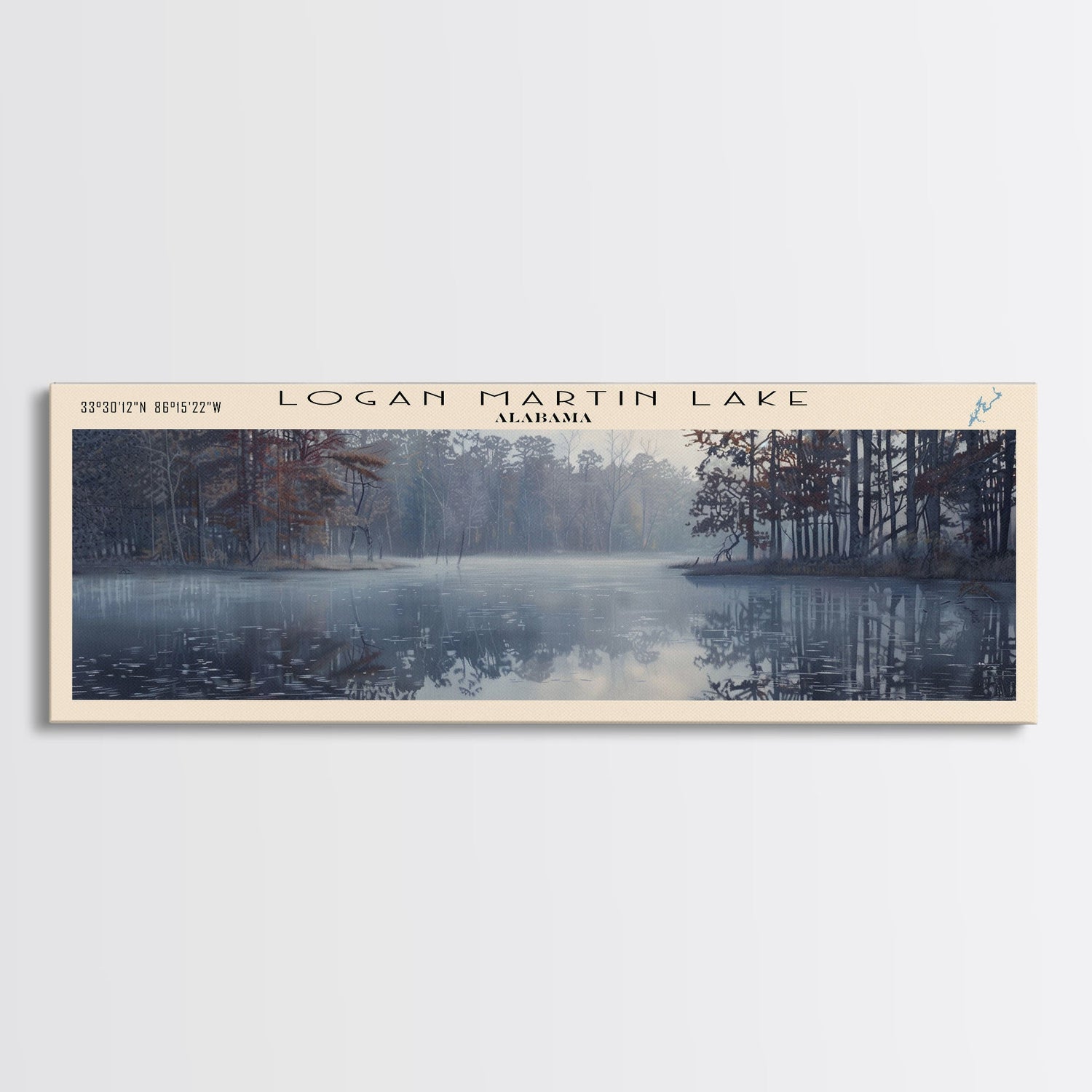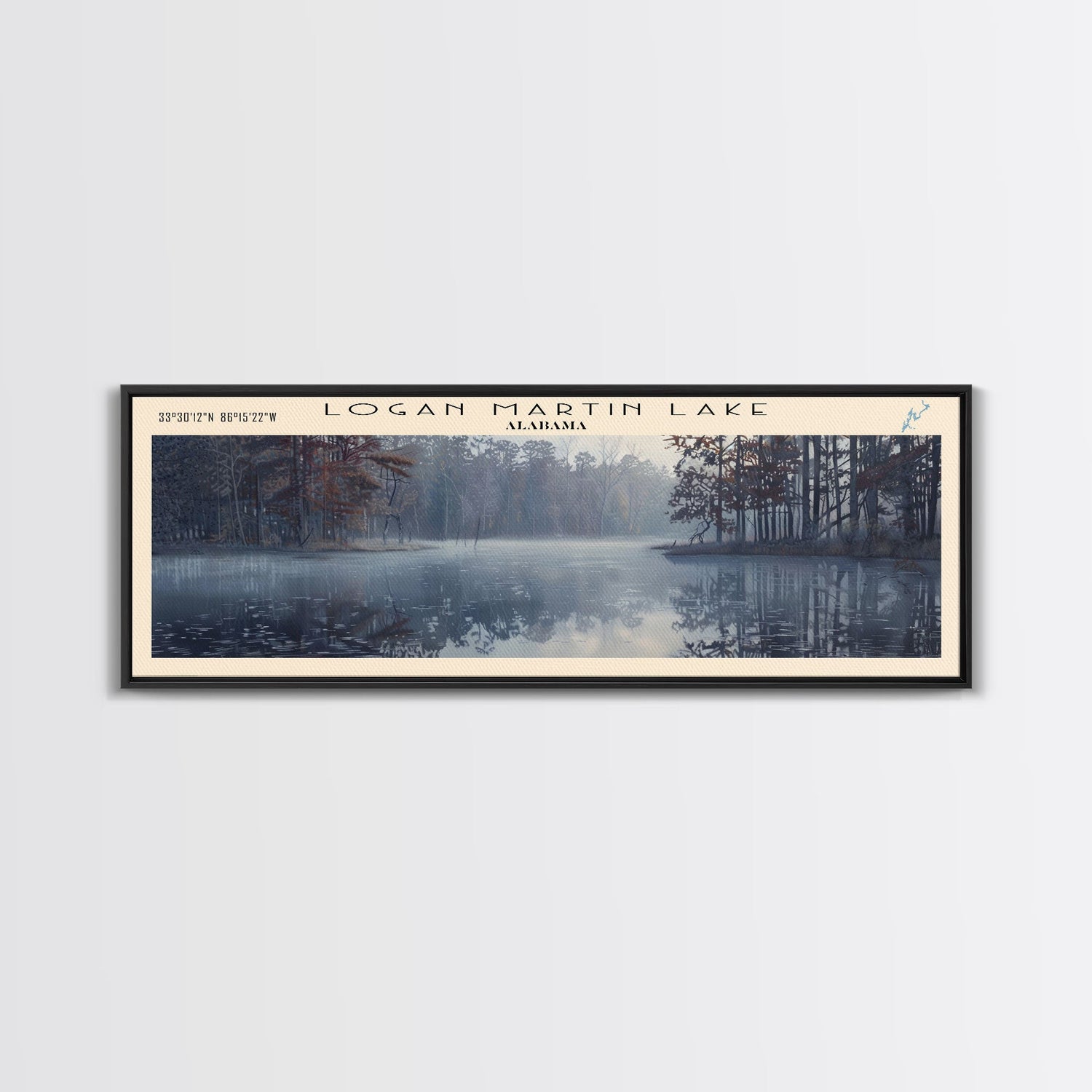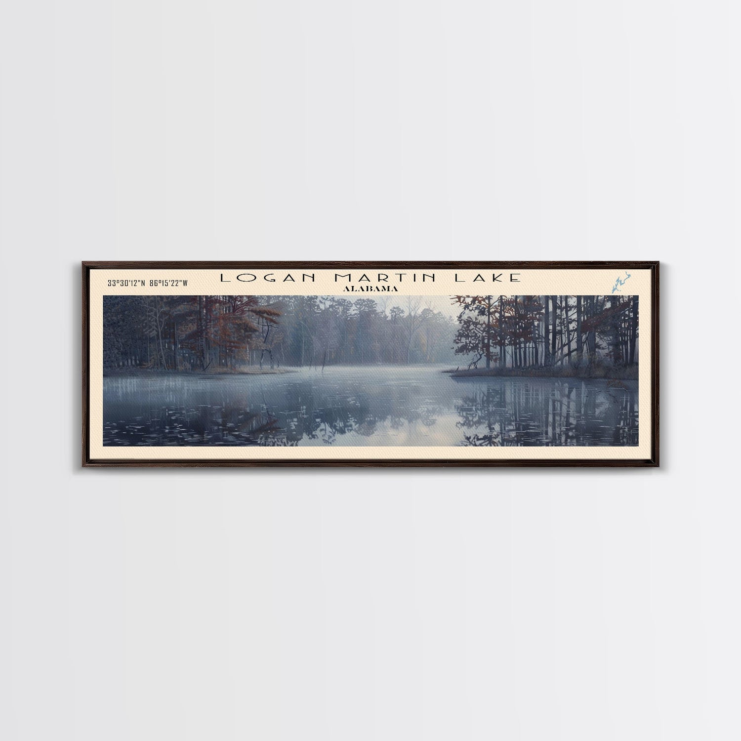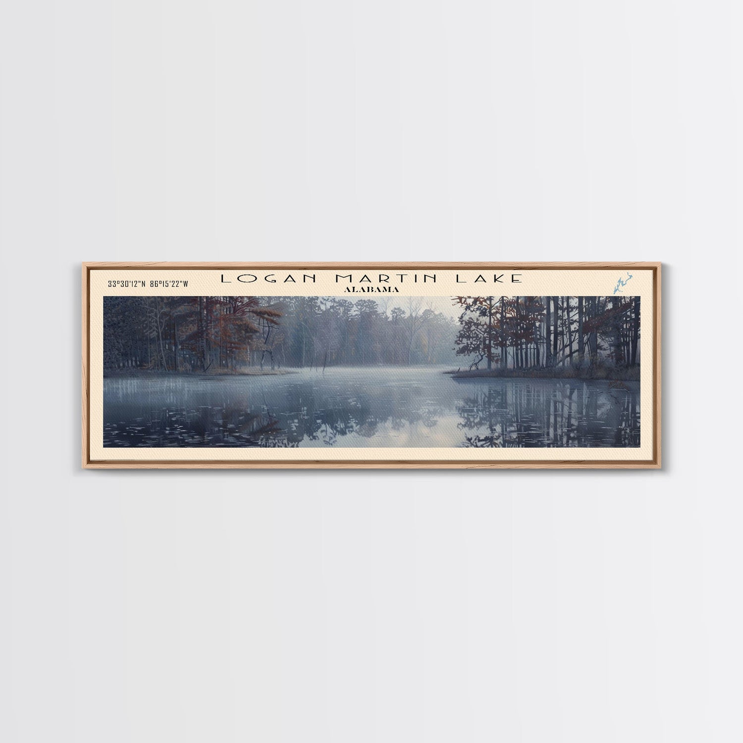 Logan Martin Lake Framed Canvas Print, Lake House Decor, Panoramic Wall Art, Travel Poster, Scenic Landscape Painting, Rustic Art
