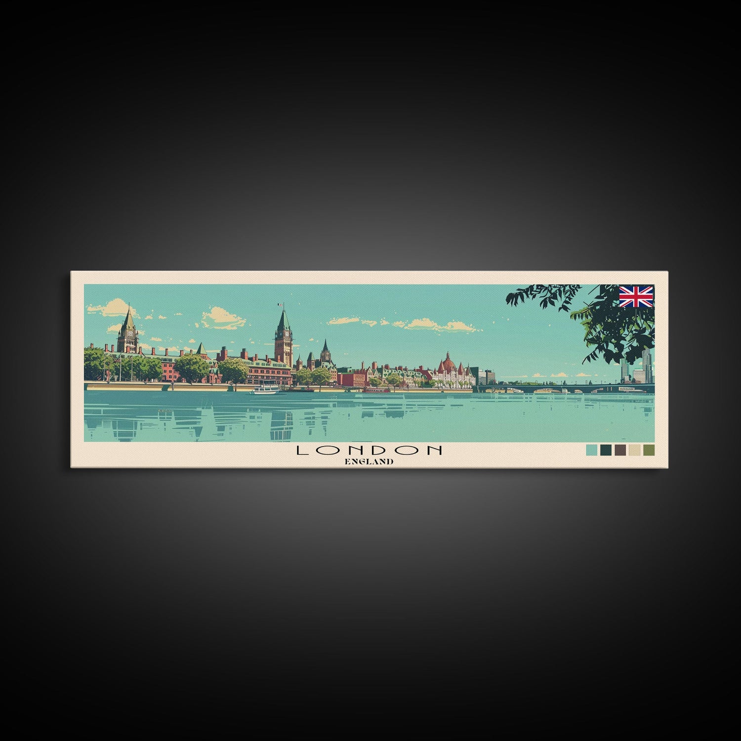 London, England Panoramic Canvas Print, London, England Painting, England Art, London Travel Poster, Travel Art, Guest Room Painting